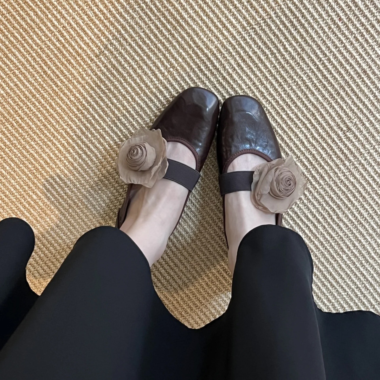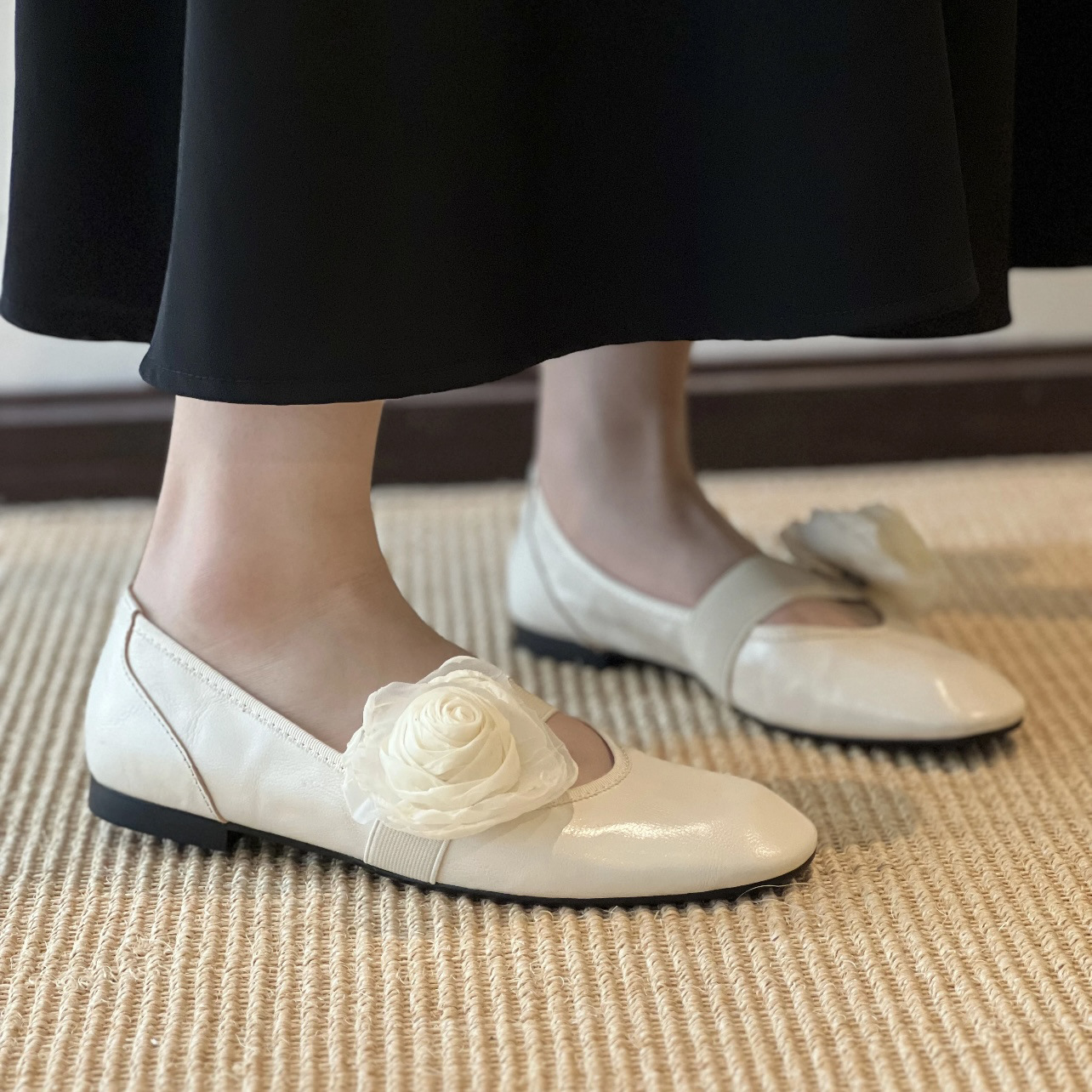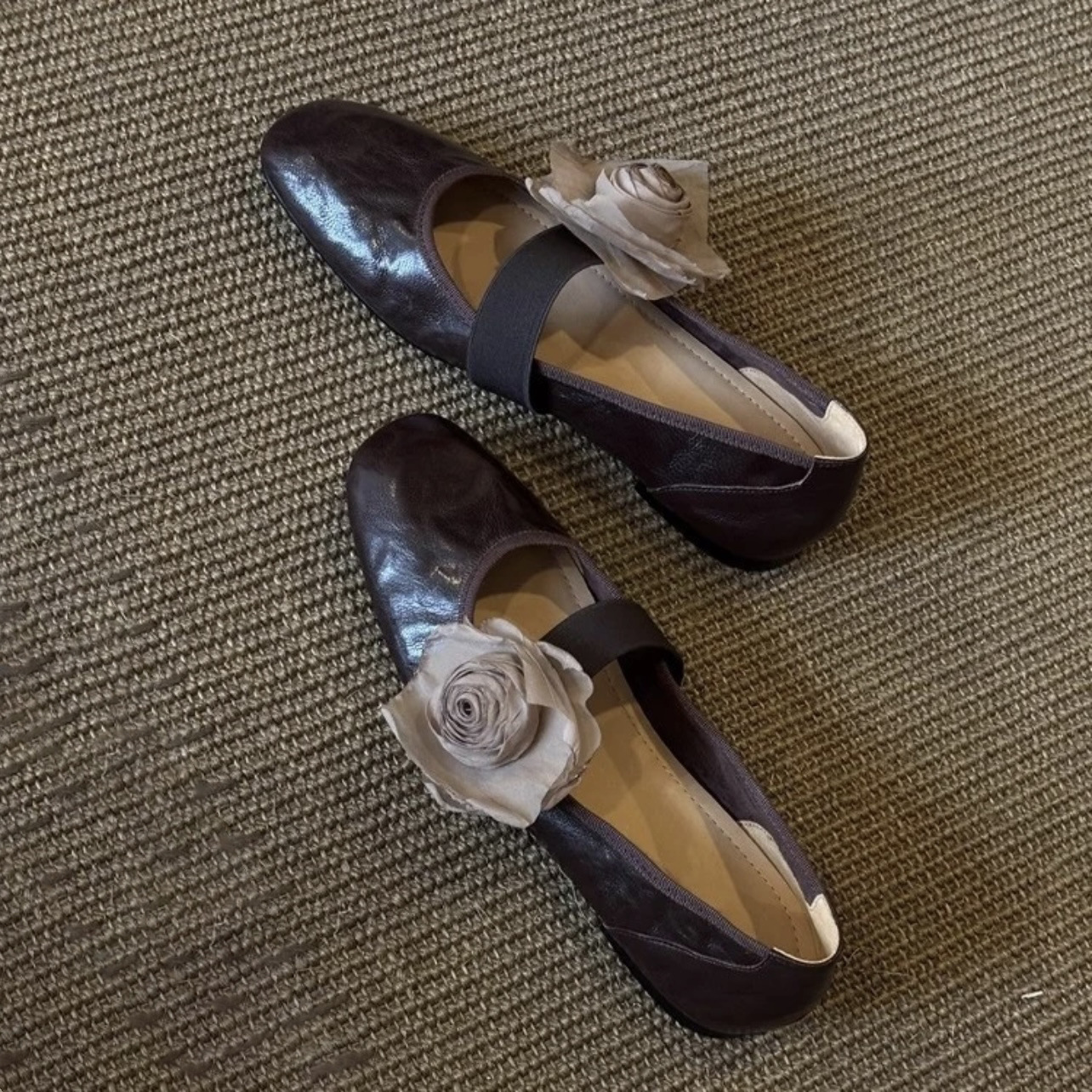 2025 새로운 레트로 스타일 여성용 플랫 발레 슈즈 (분리 가능한 꽃)
