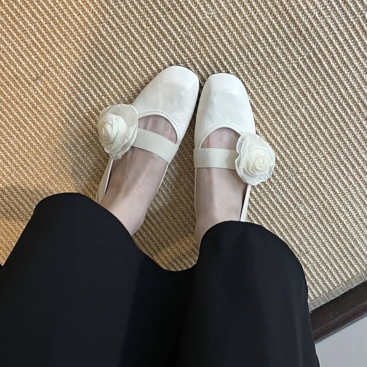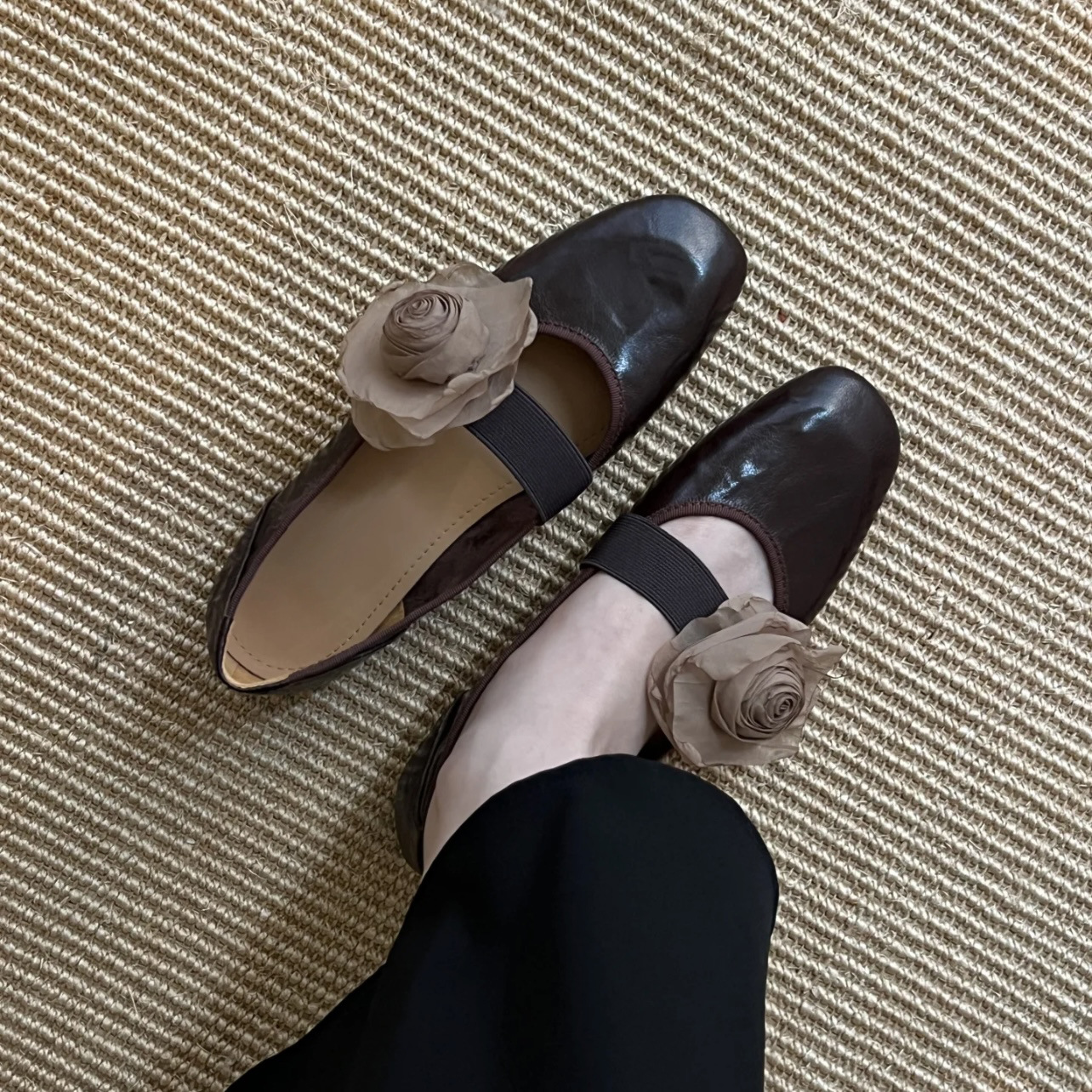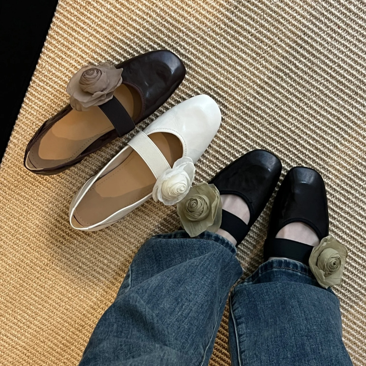 2025 새로운 레트로 스타일 여성용 플랫 발레 슈즈 (분리 가능한 꽃)