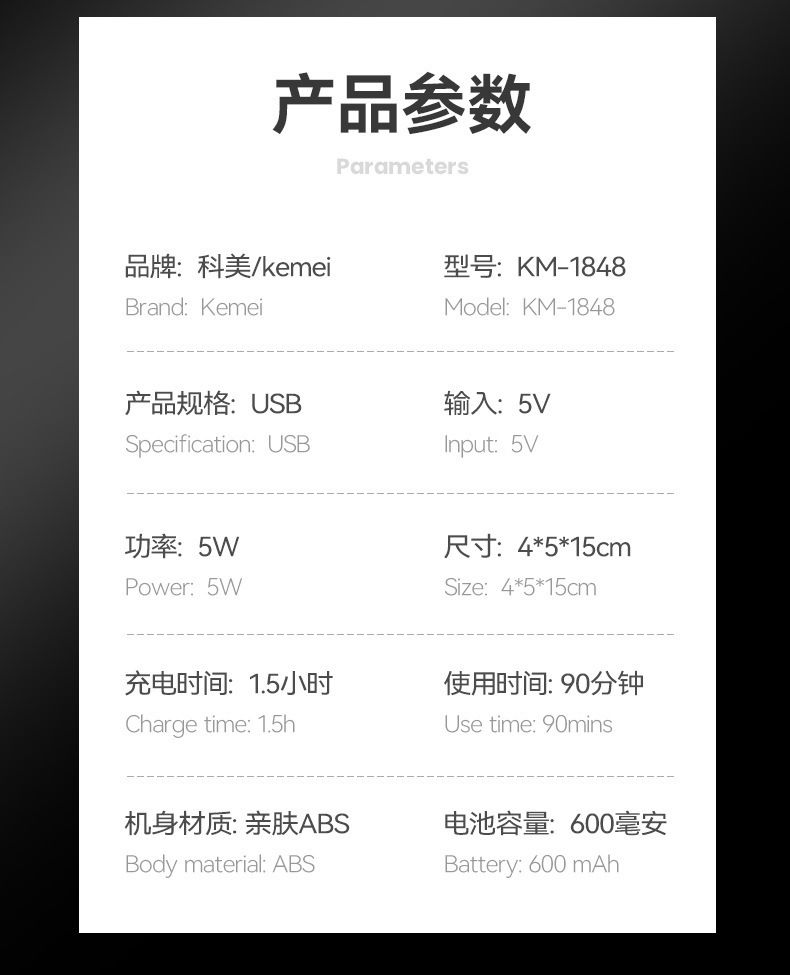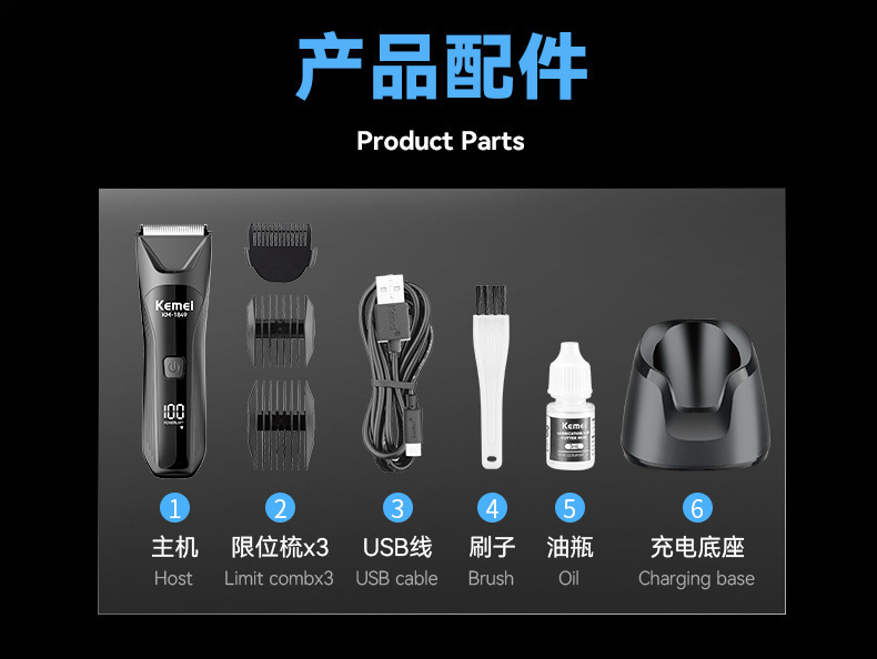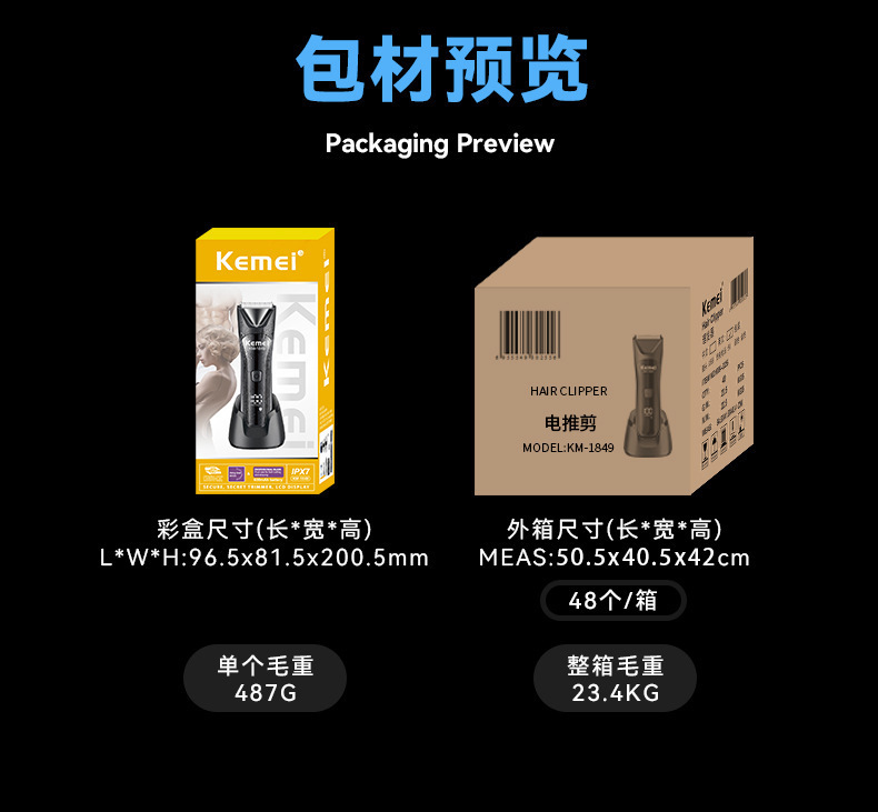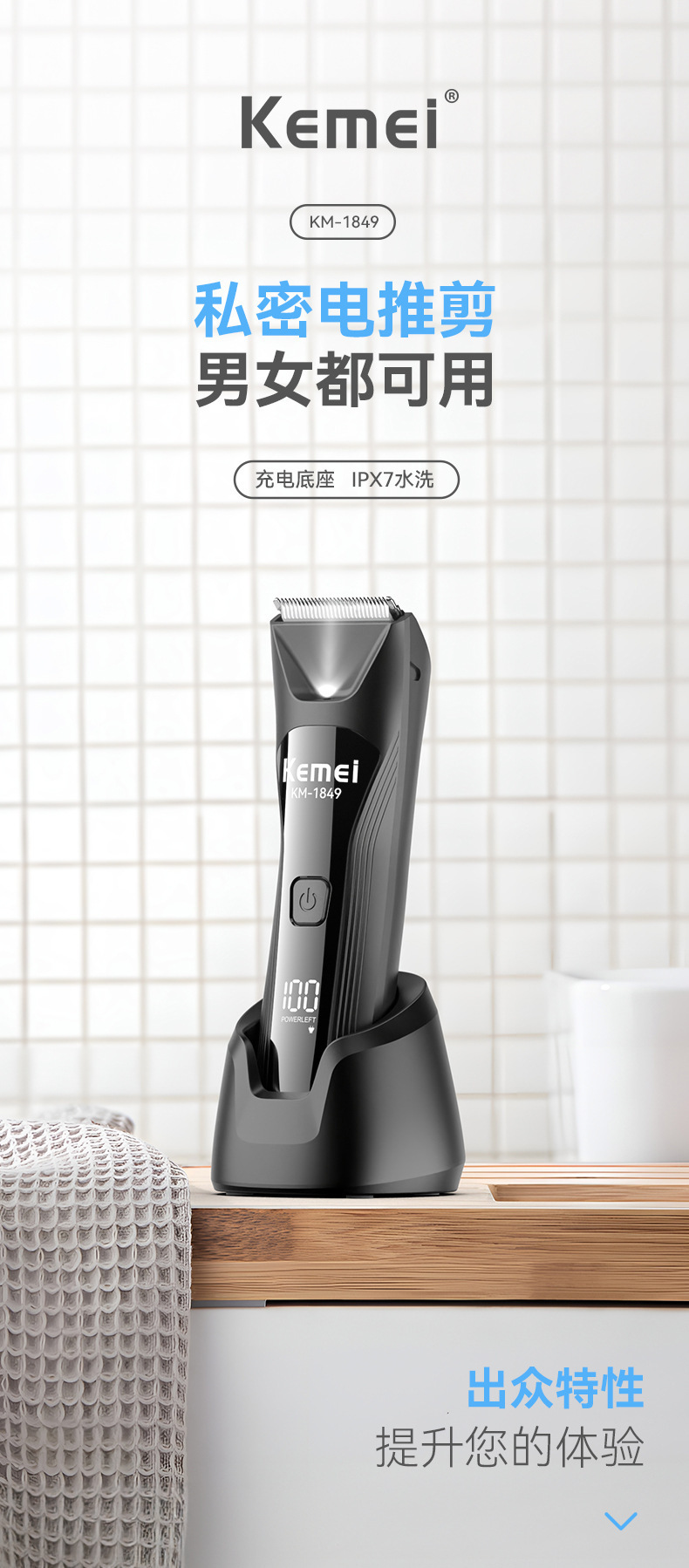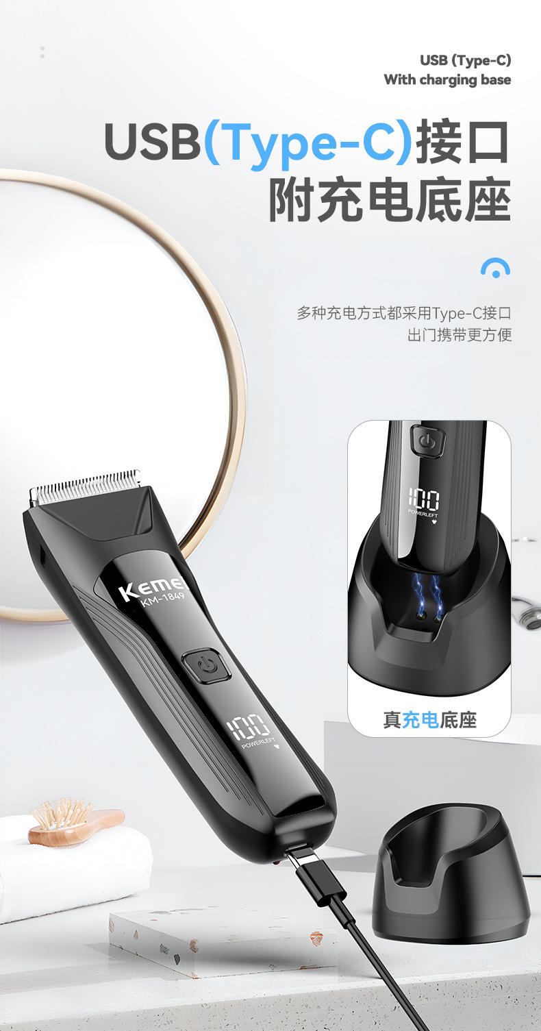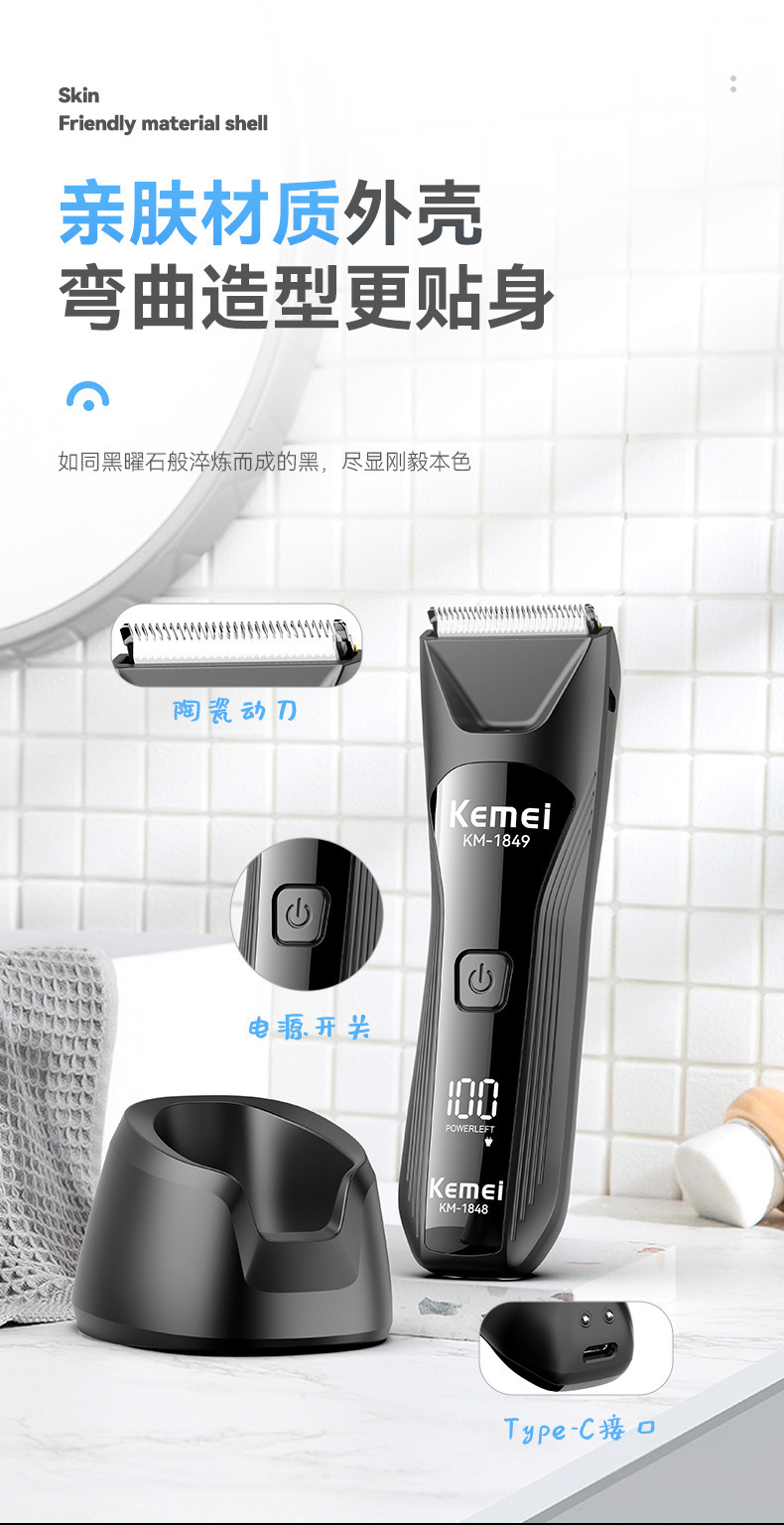 KM-1849科美带底座身体修剪器私处剃毛器数显可水洗私密电推剪男