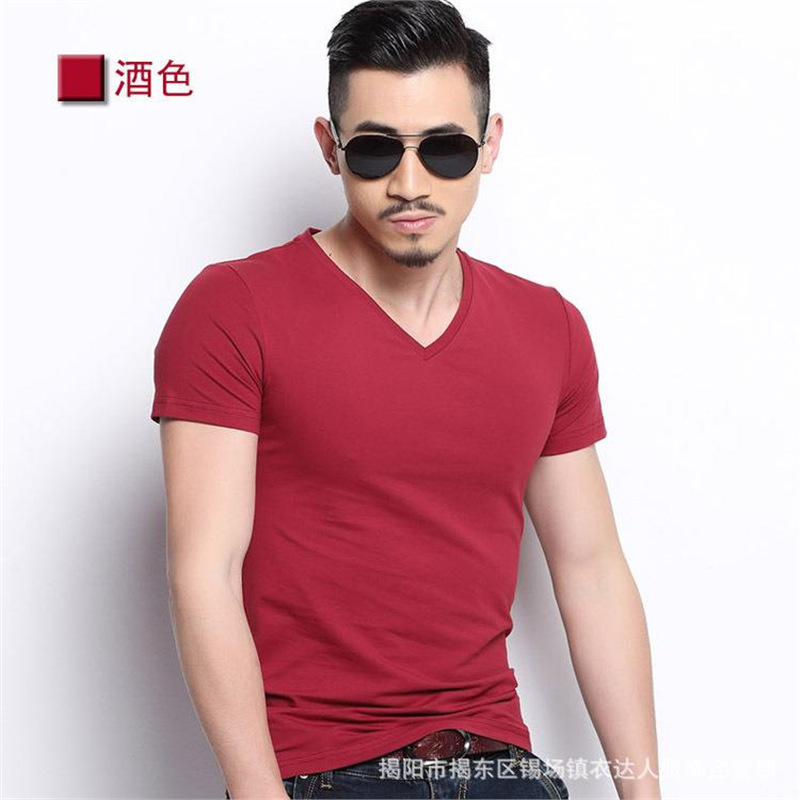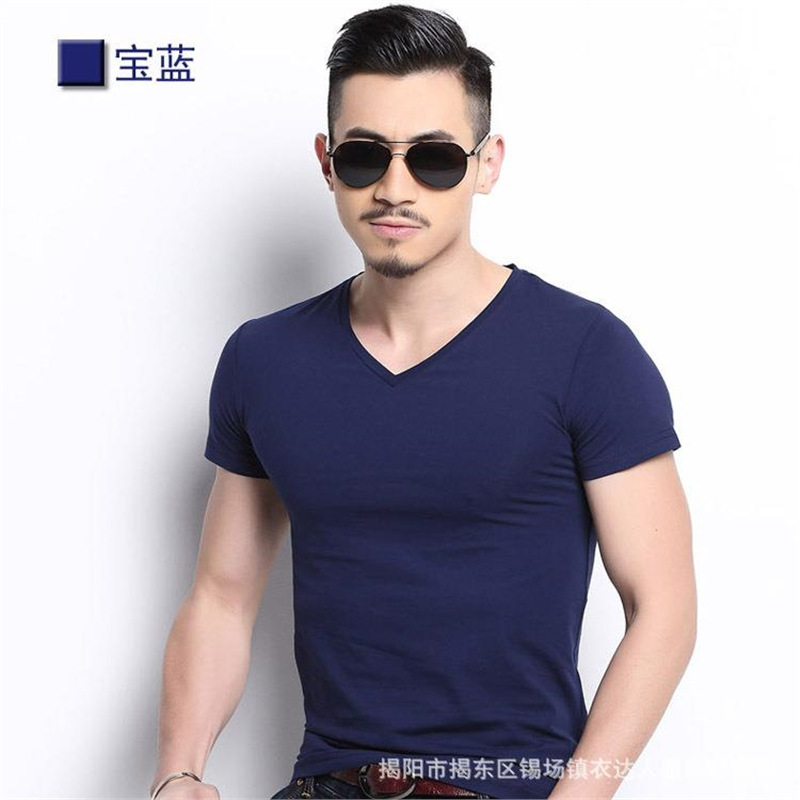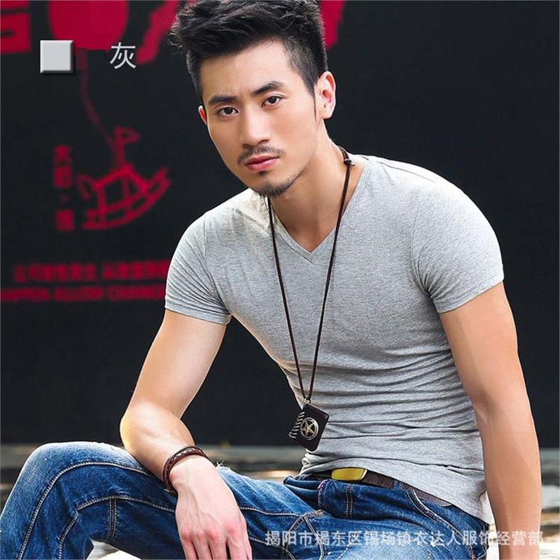 여름 남성 반팔 티셔츠 청소년 컬러 v 넥 바닥 셔츠 문화 셔츠 남성 의류 의류 작업복 도매스토어 가기