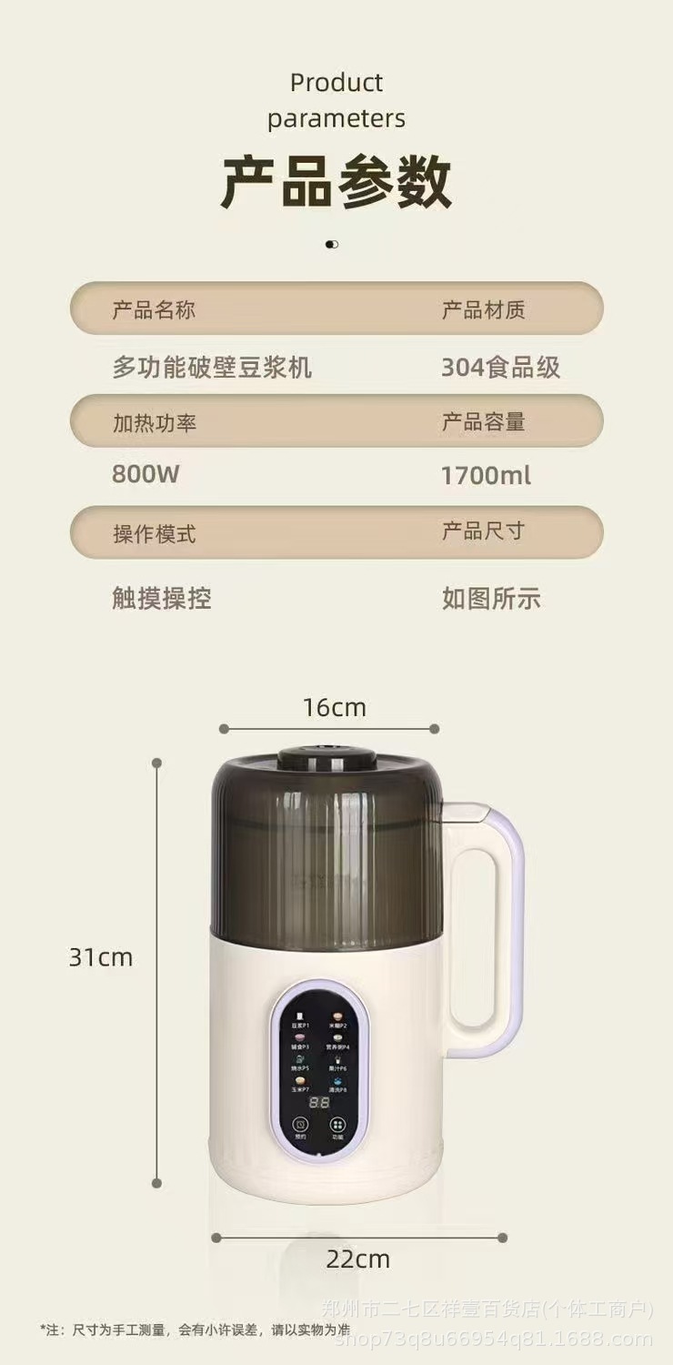 Yangzi 파괴 된 두유 기계 B-009 다기능 가정용 1200ml 요리 두유 기계 이벤트 복지 선물스토어 가기