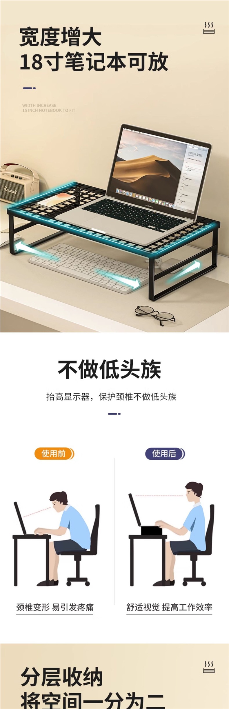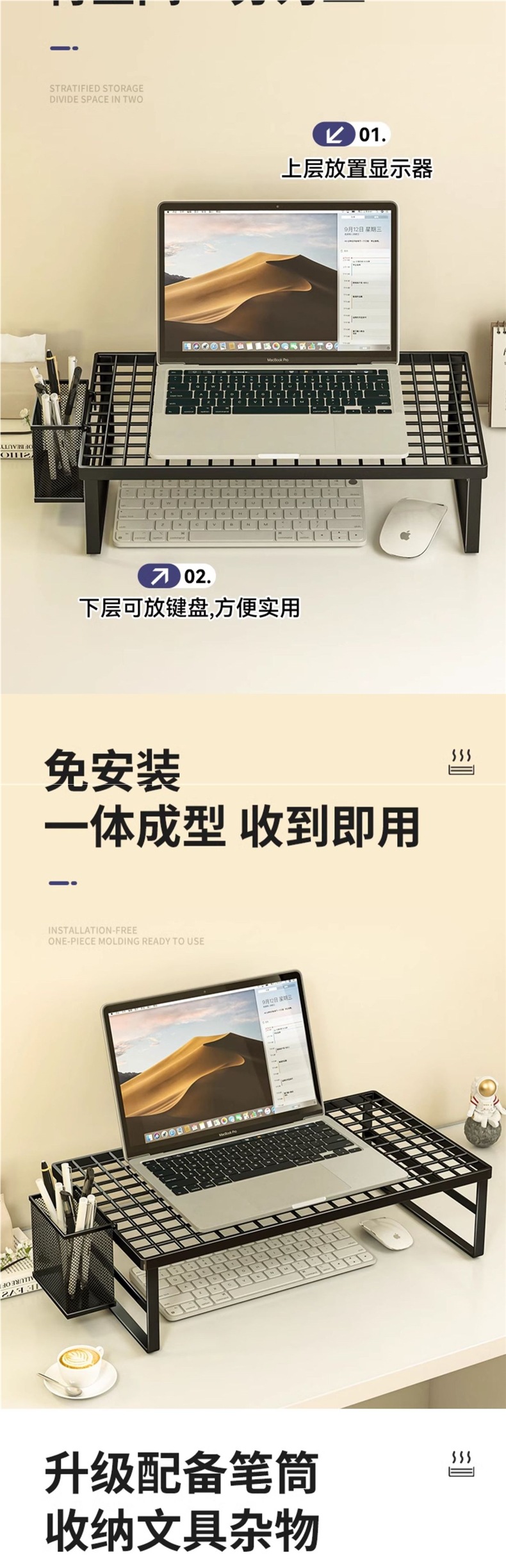컴퓨터 스탠드, 노트북 지지대, 그릴, 높이 조절 스탠드, 가정용 냉각 베이스, 데스크탑 공중 브래킷스토어 가기