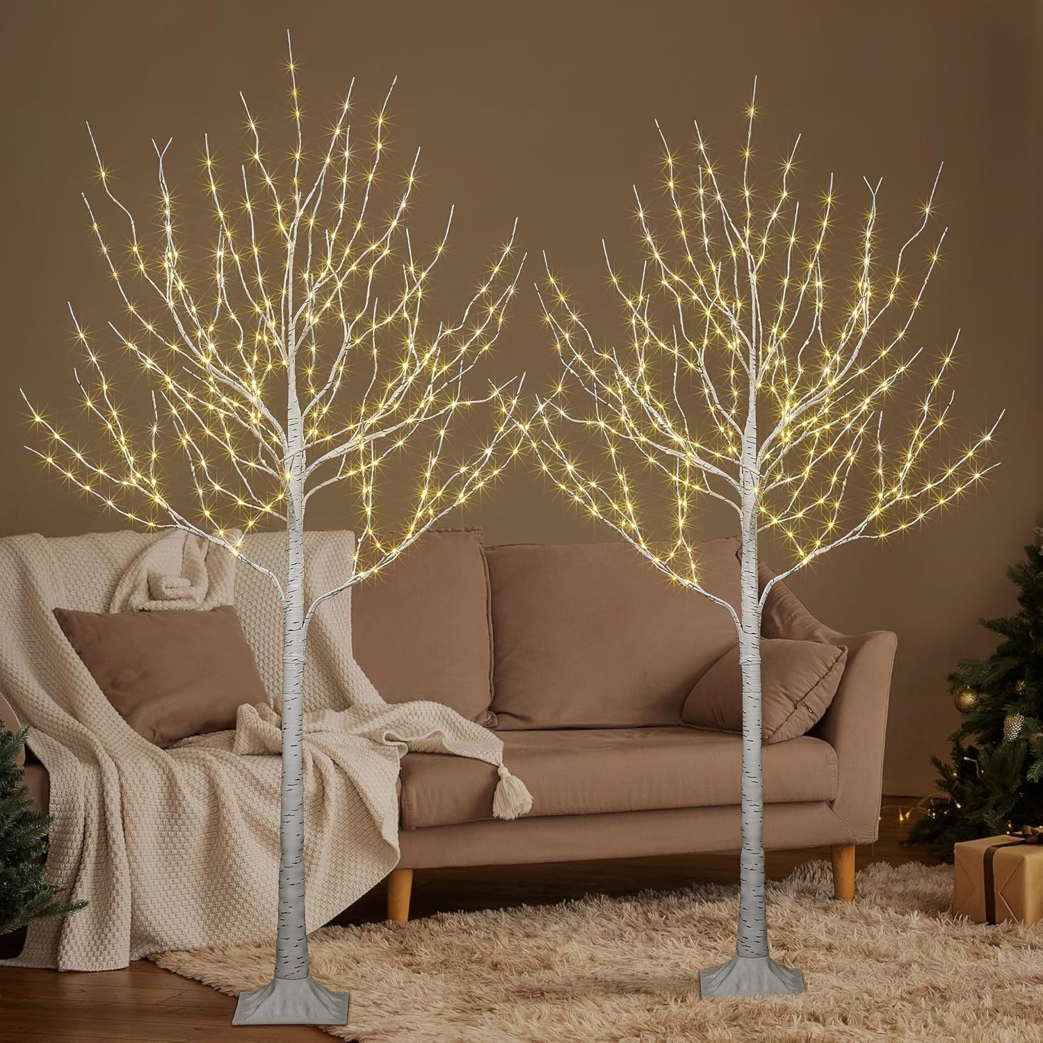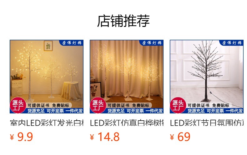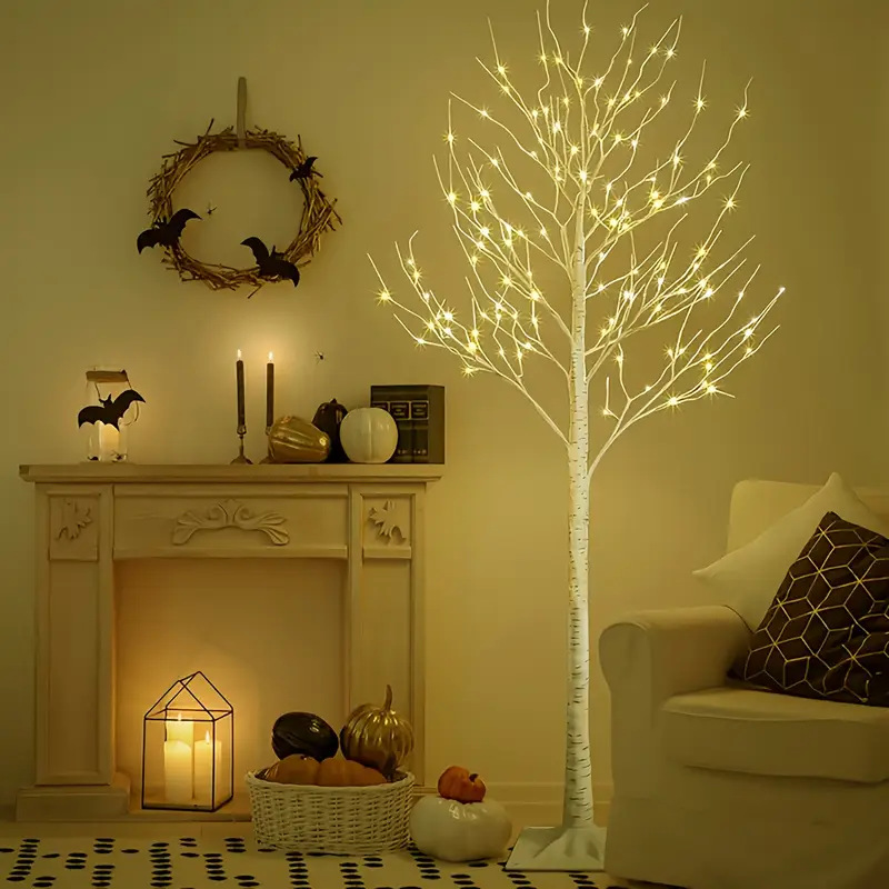 새로운 색상 조명 시뮬레이션 자작 나무 구리 와이어 빛 분위기 빛나는 나무 휴일 풍경 LED 장식 조명 크리스마스 트리 조명스토어 가기