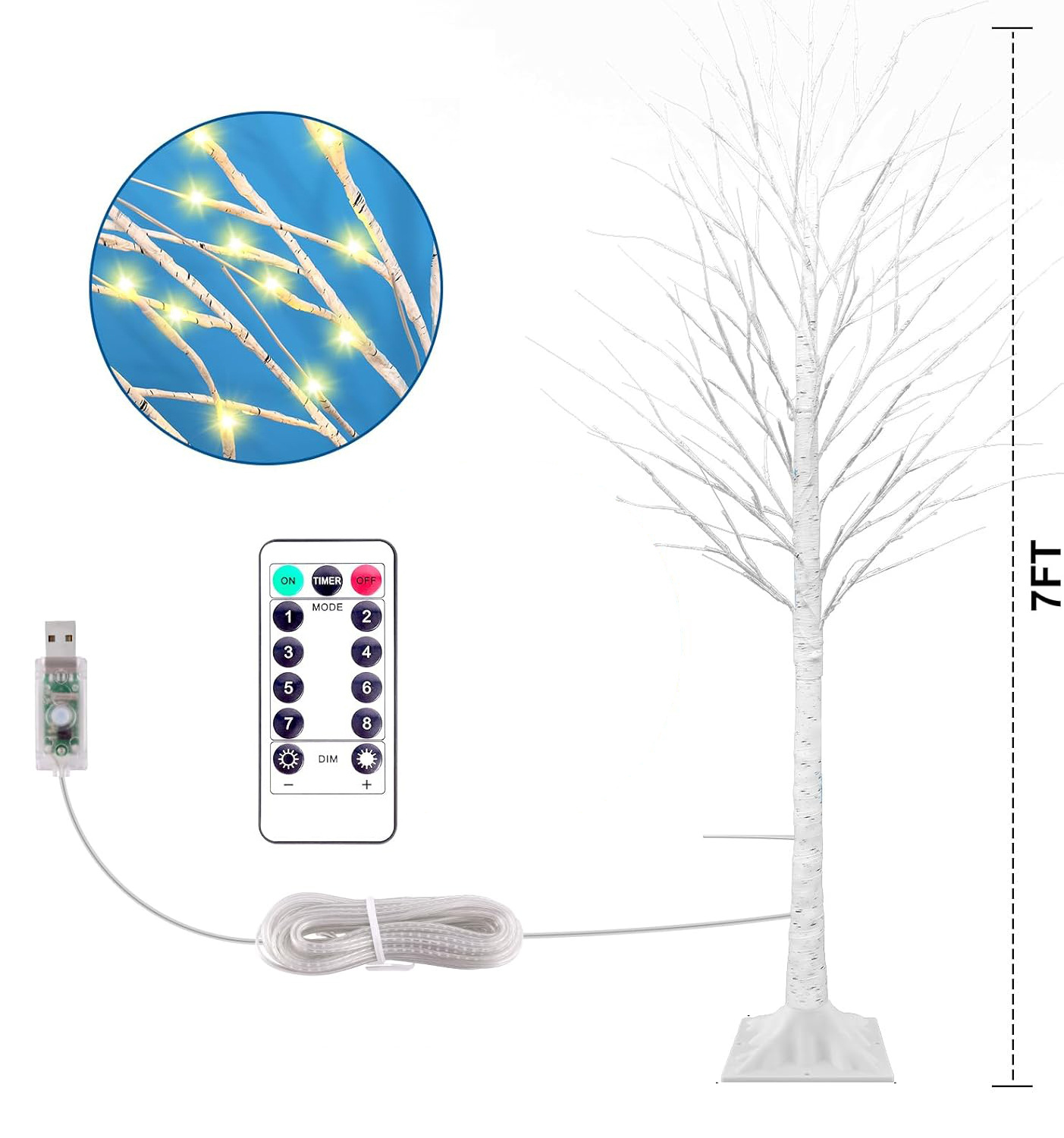 • 구리선 램프 자작나무 [8가지 기능 + 리모콘]