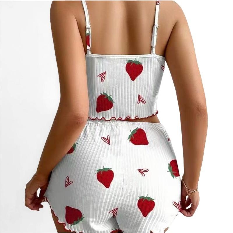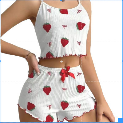여성용 해외 주문 국경 간 유럽 및 미국 잠옷, 하트 프린트, 섹시한 캐미솔 반바지, 홈웨어 투피스 슈트스토어 가기