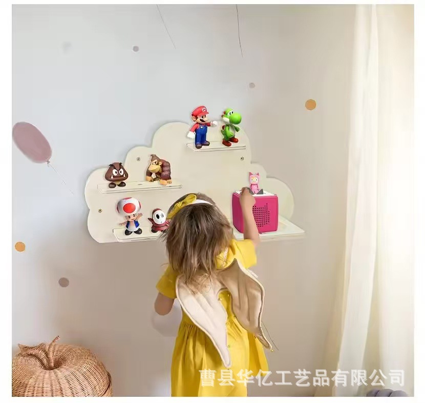 나무 어린이 방 장난감 보관 랙 DIY 벽 보관 랙 오디오 보관 랙 클라우드 보관 랙