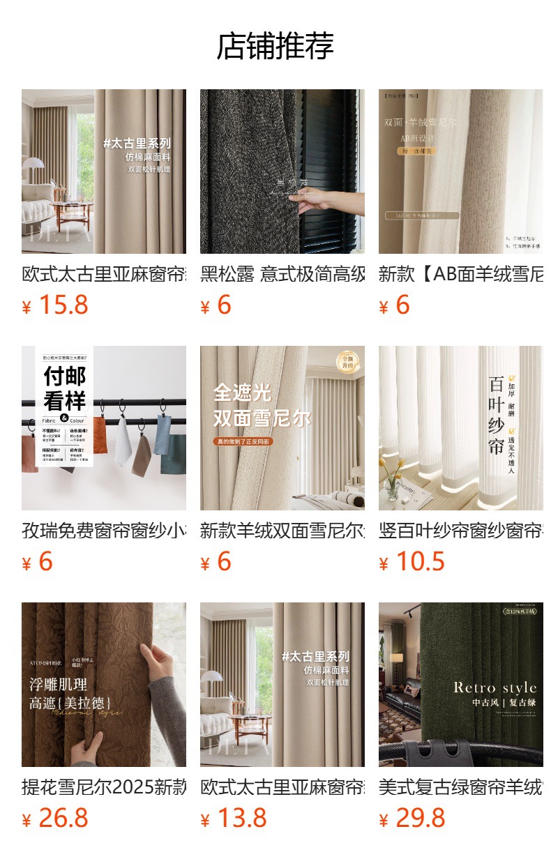 샤오홍슈 메일라드 스타일 커튼 2025 신상품 소양 코치아오 침실 거실 울 벨벳 중고 차광 커튼스토어 가기