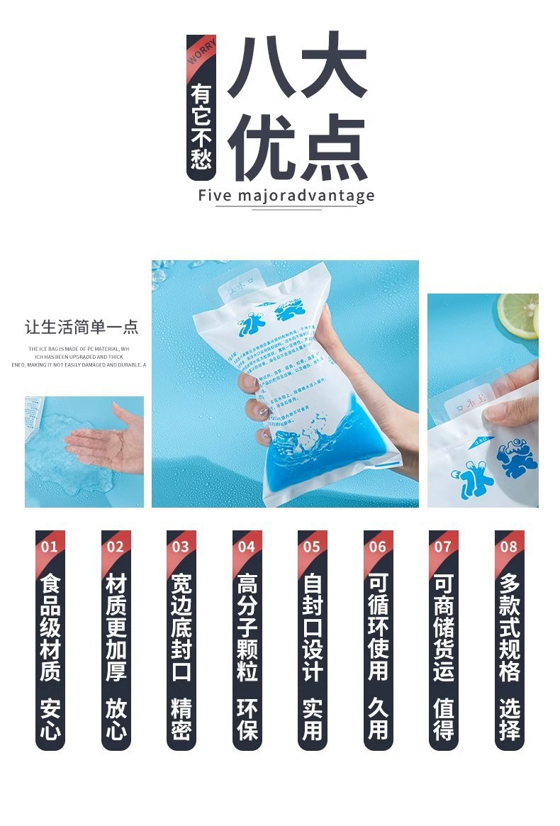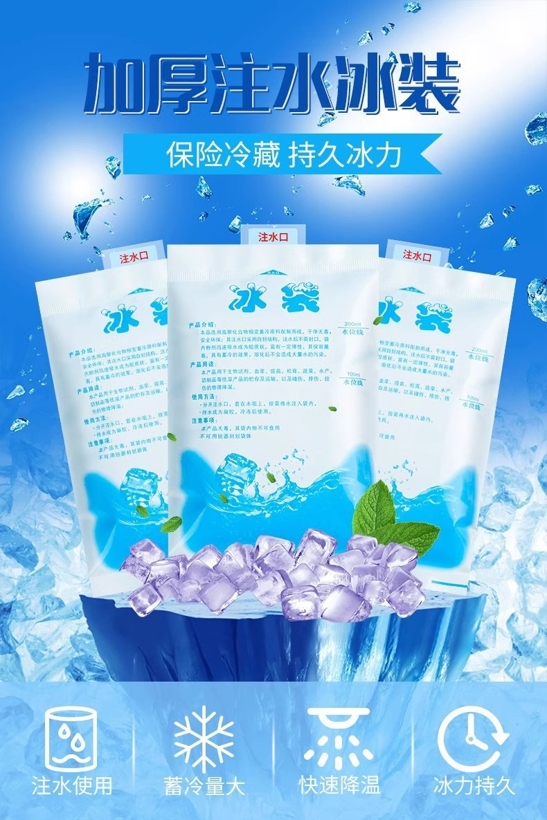 [무료 배송] 생선을 냉동 보관할 수 있는 물이 채워진 아이스백, 상업용 일회용 재사용 냉장 가방