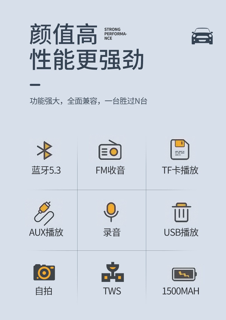 WS1955 차량용 블루투스 스피커 쉐보레 로버 차량 모델 크로스보더 오디오 무선 스피커 스마트 스피커