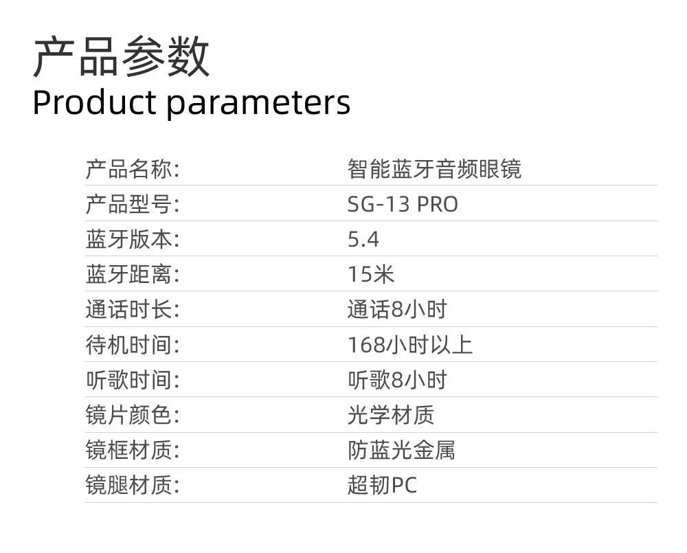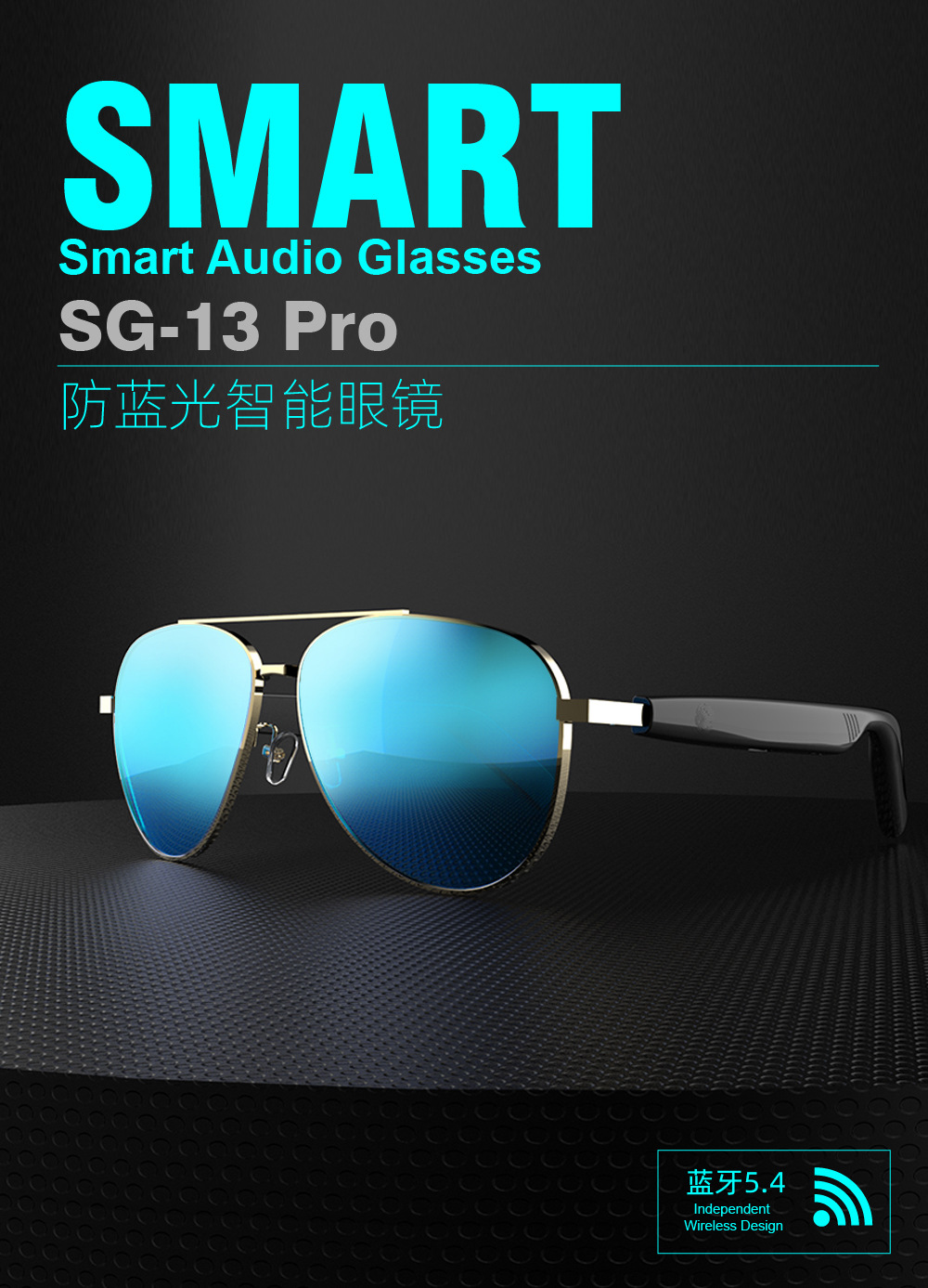 SG-13Pro 매우 긴 배터리 수명 스마트 안경 선글라스 음악 듣기 Bluetooth 오디오 남녀 공통 풀 프레임 안티 블루스토어 가기