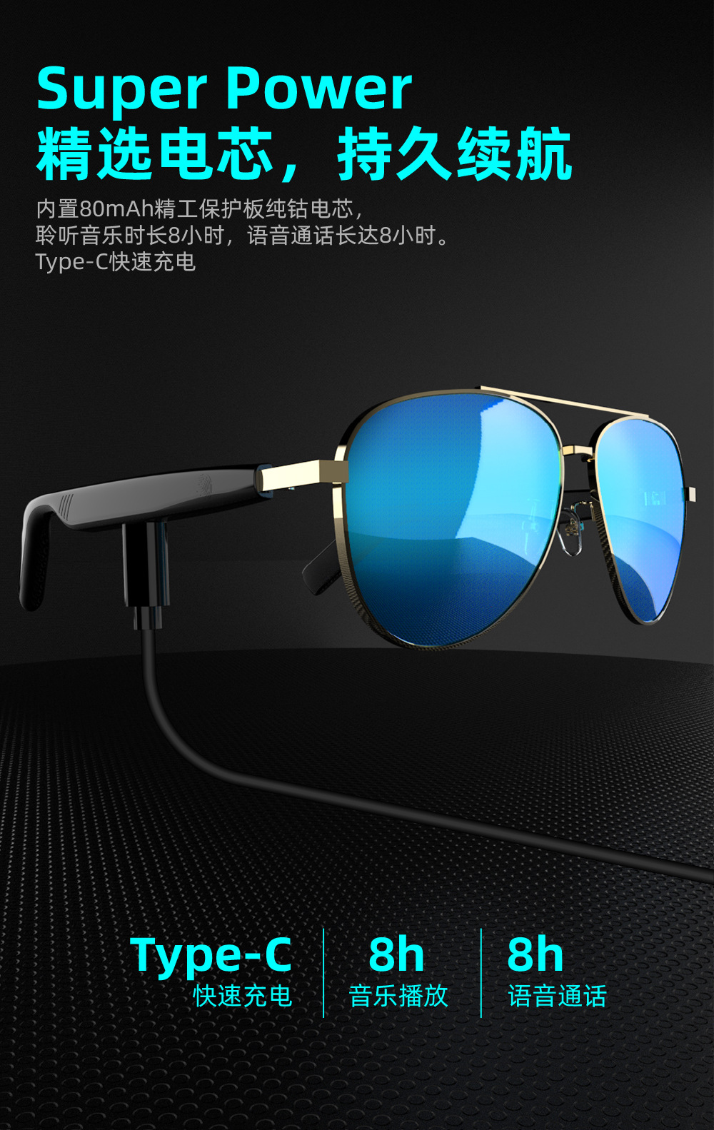 SG-13Pro 매우 긴 배터리 수명 스마트 안경 선글라스 음악 듣기 Bluetooth 오디오 남녀 공통 풀 프레임 안티 블루
