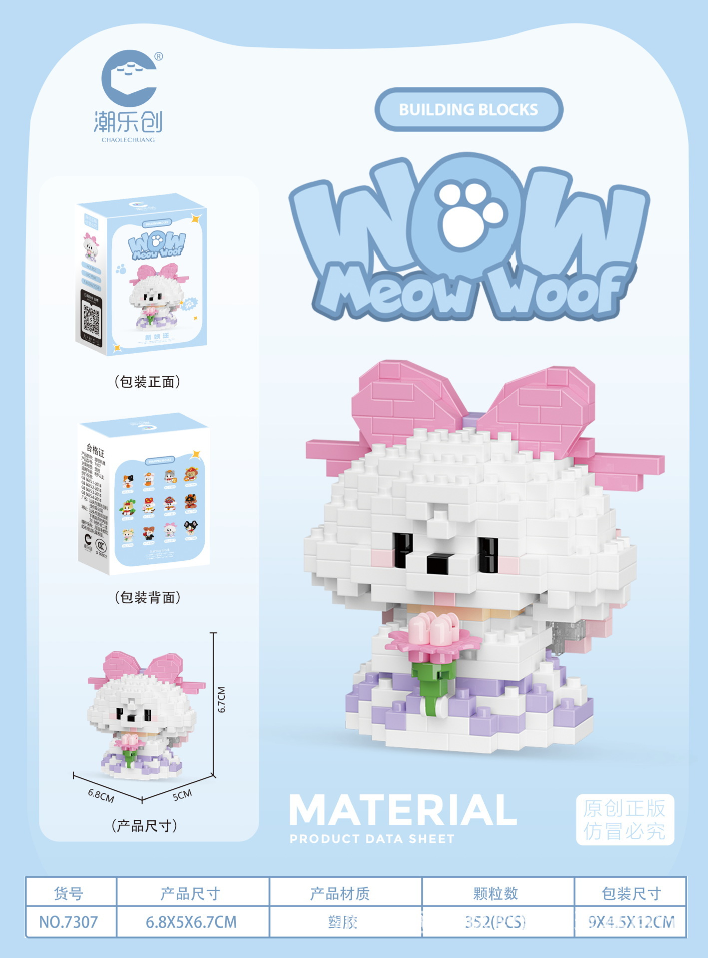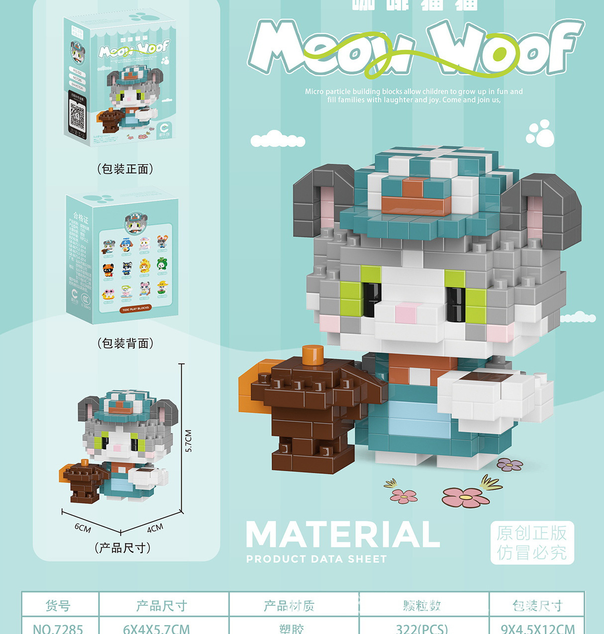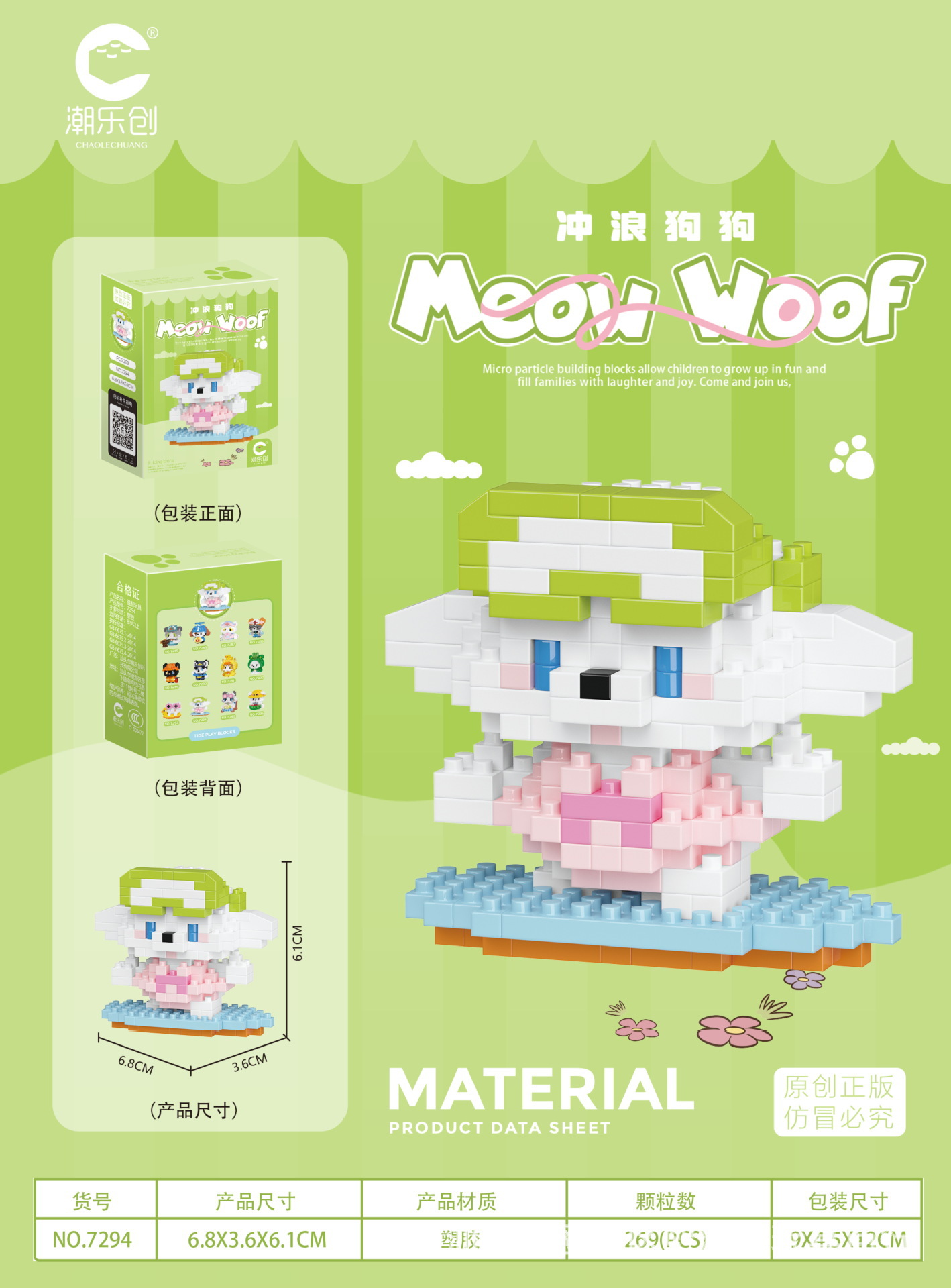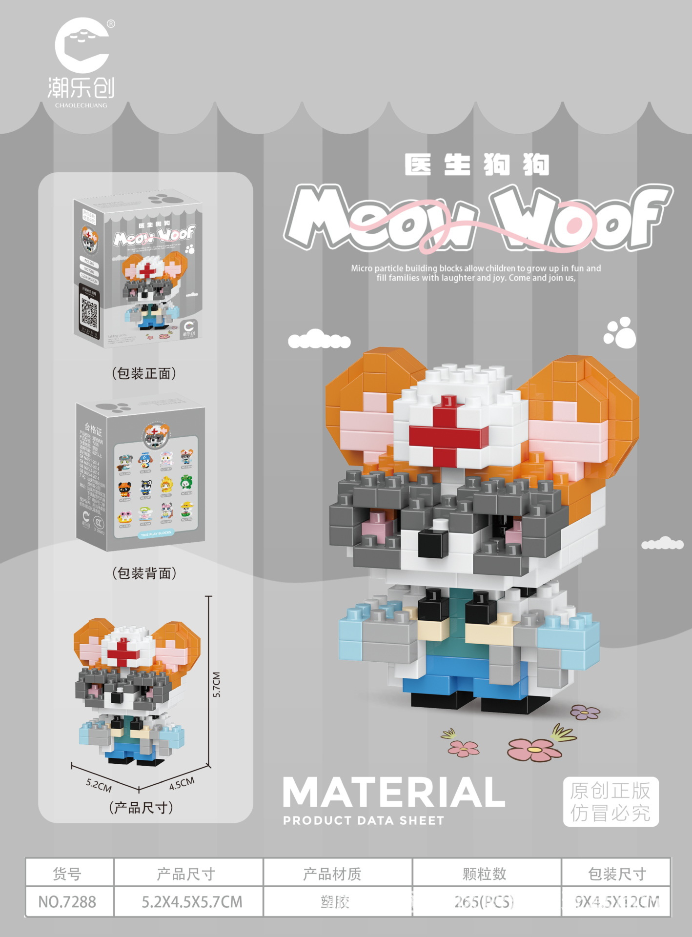 차오 르 추앙 마이크로 입자 야옹 왕 다지 인형 어린이 교육 조립 건물 블록 장난감 강아지 고양이 데스크탑 장식품스토어 가기