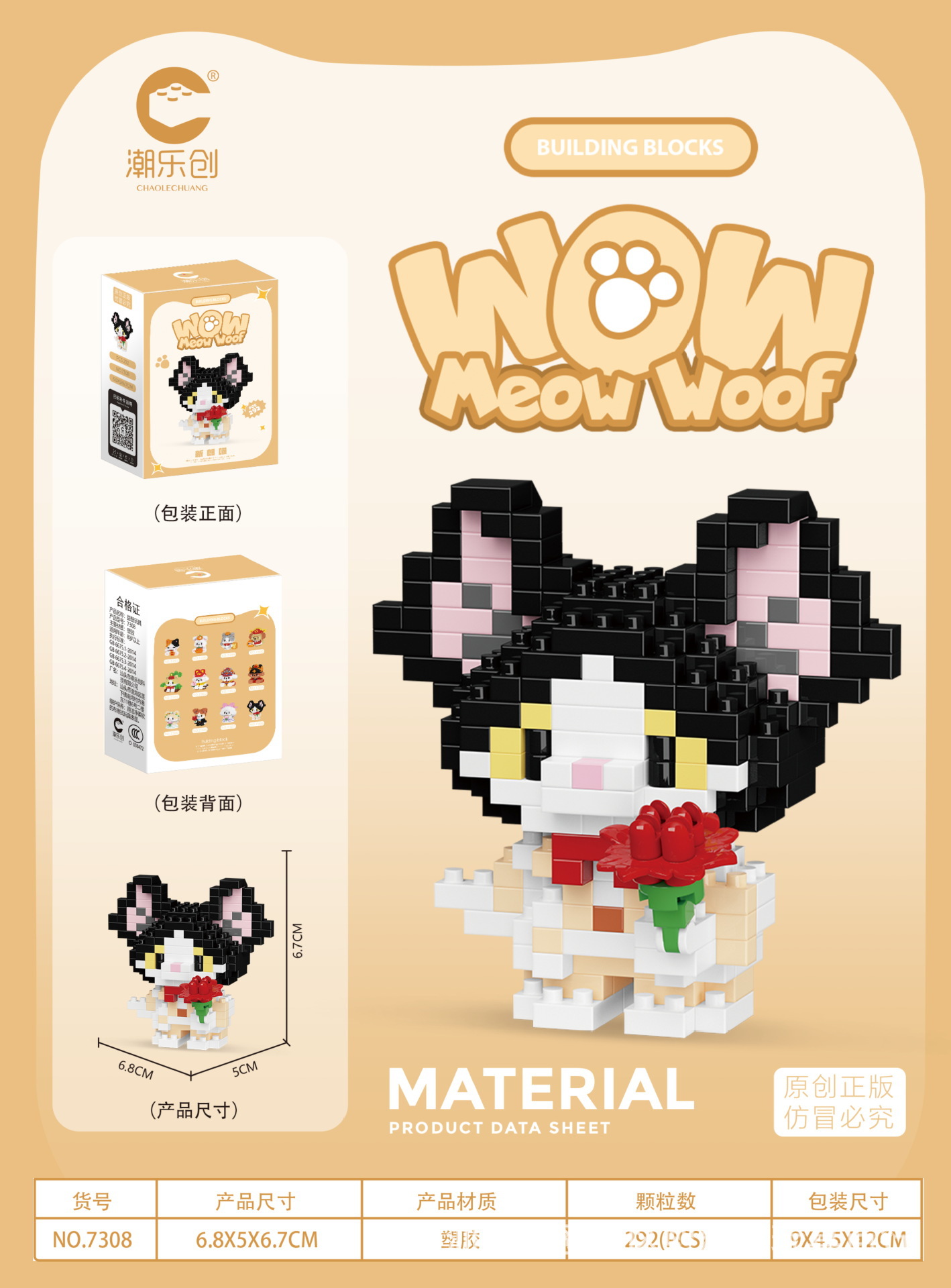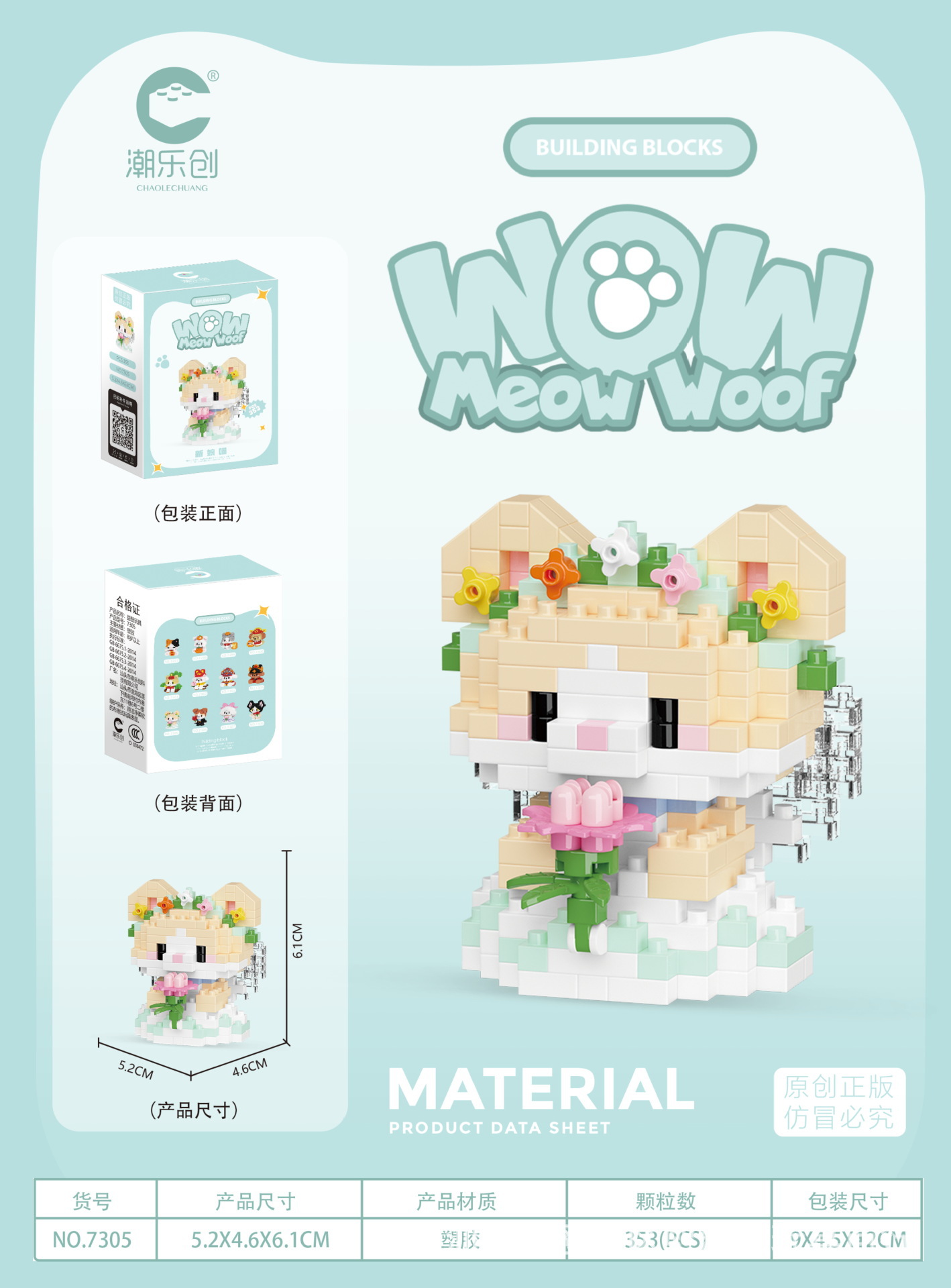 차오 르 추앙 마이크로 입자 야옹 왕 다지 인형 어린이 교육 조립 건물 블록 장난감 강아지 고양이 데스크탑 장식품