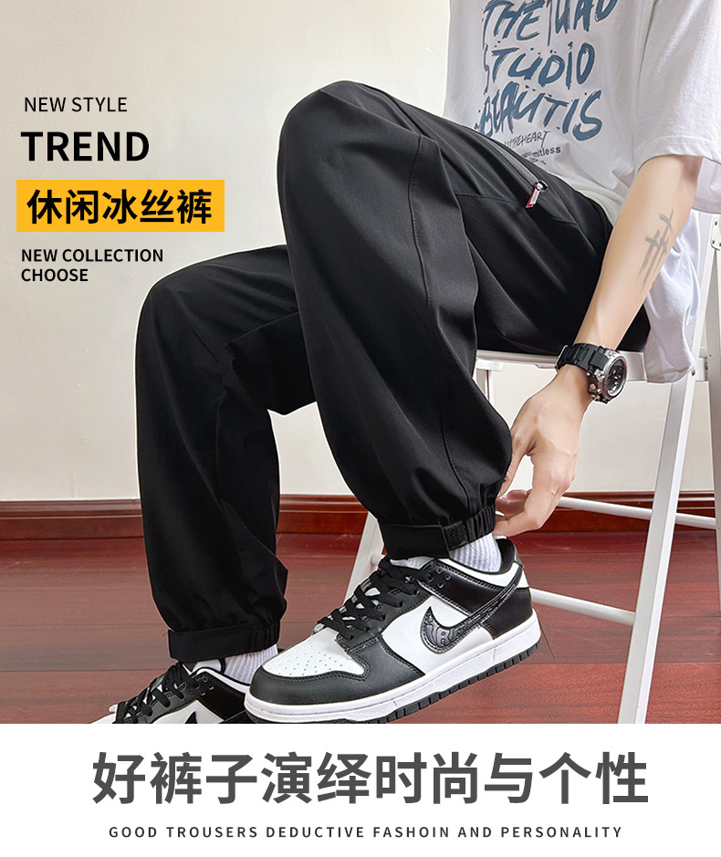 아이스 실크 바지 남성 여름 방수 트렌디 브랜드 남성 얇은 다용도 반팔 티셔츠 캐주얼 바지 남성 충전 바지 트렌디
