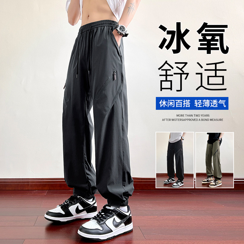 아이스 실크 바지 남성 여름 방수 트렌디 브랜드 남성 얇은 다용도 반팔 티셔츠 캐주얼 바지 남성 충전 바지 트렌디스토어 가기