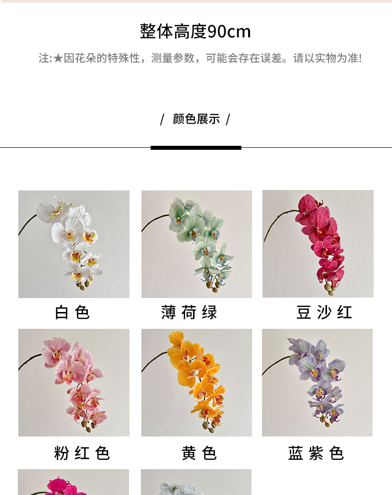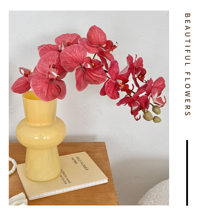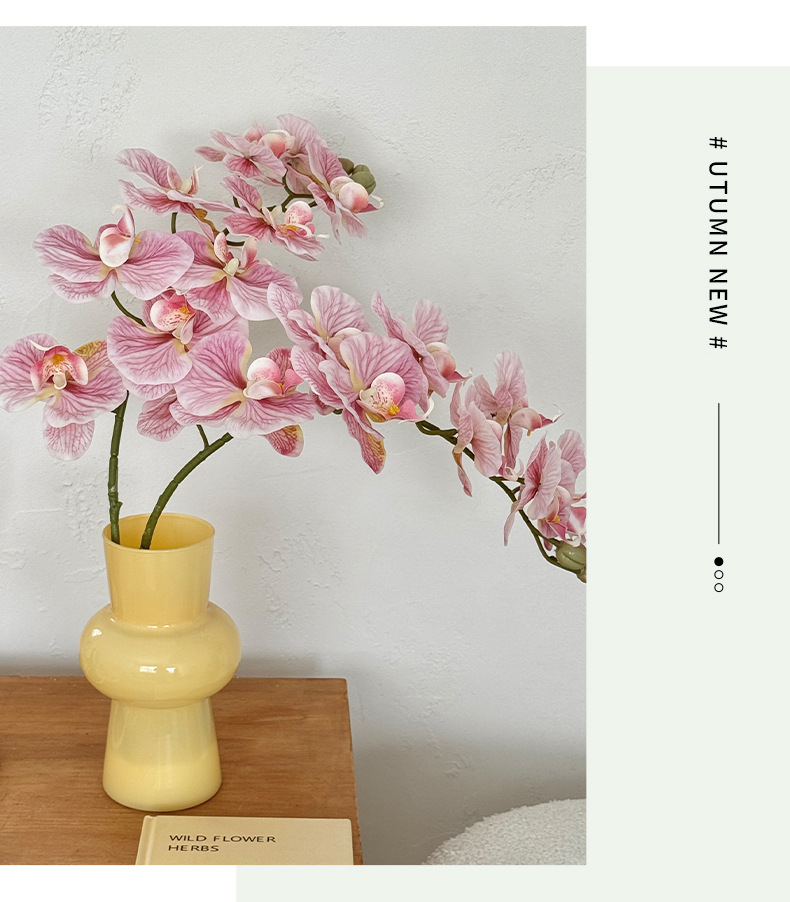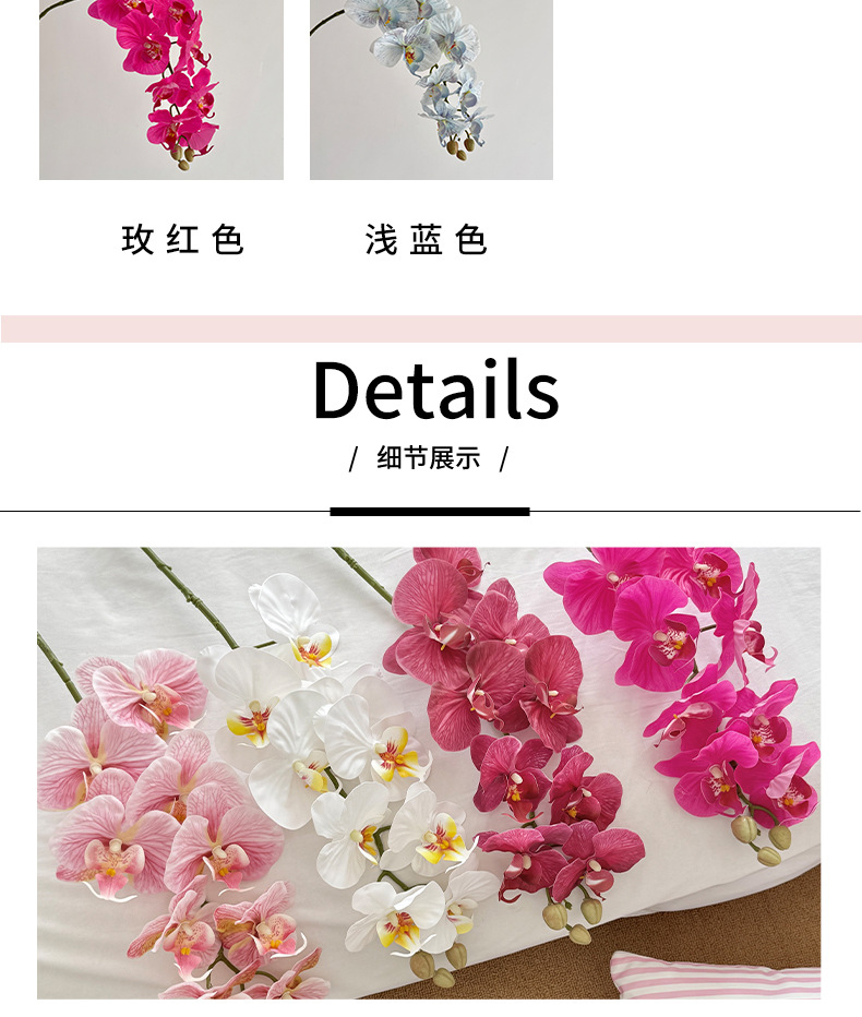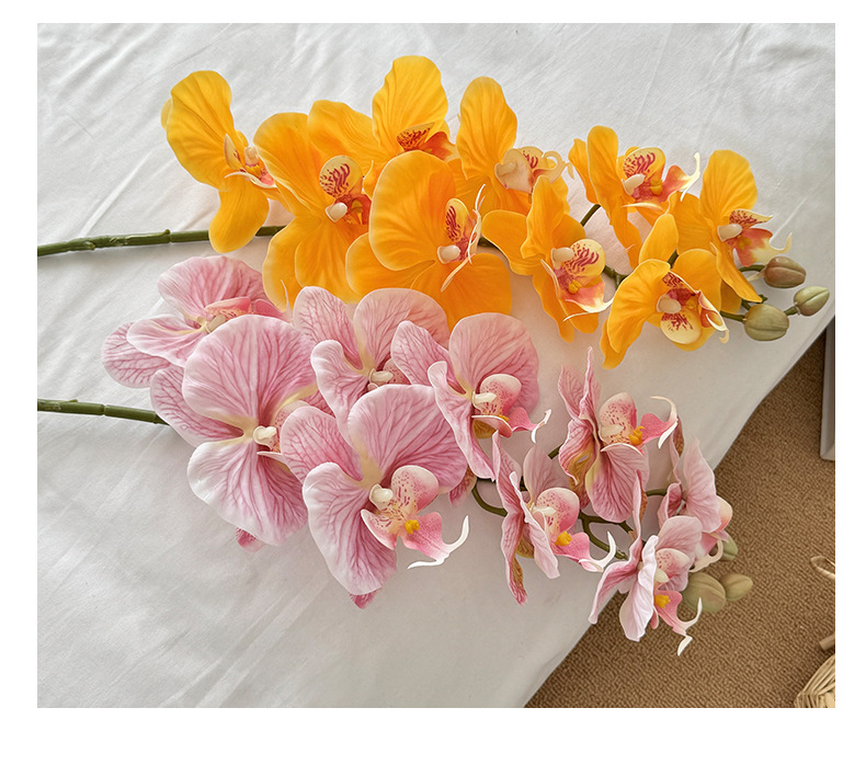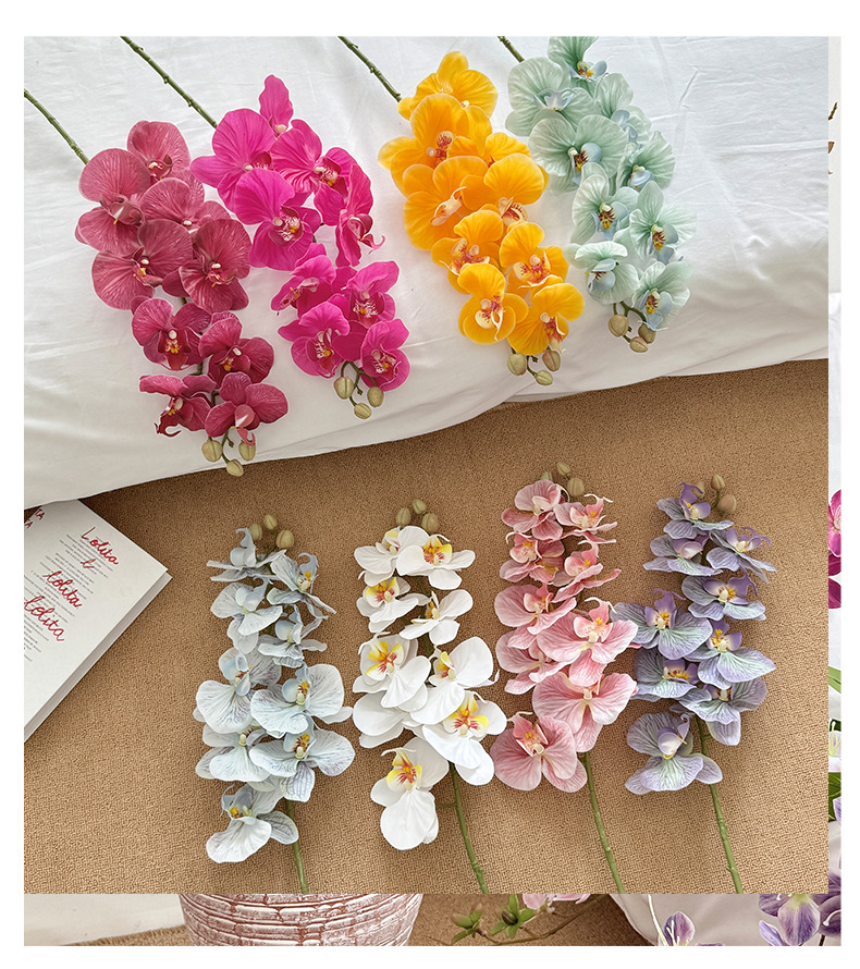 높은 시뮬레이션 접착제 핸들 9 헤드 Phalaenopsis 시뮬레이션 꽃 가짜 꽃 장식 홈 침실 TV 캐비닛 장식스토어 가기