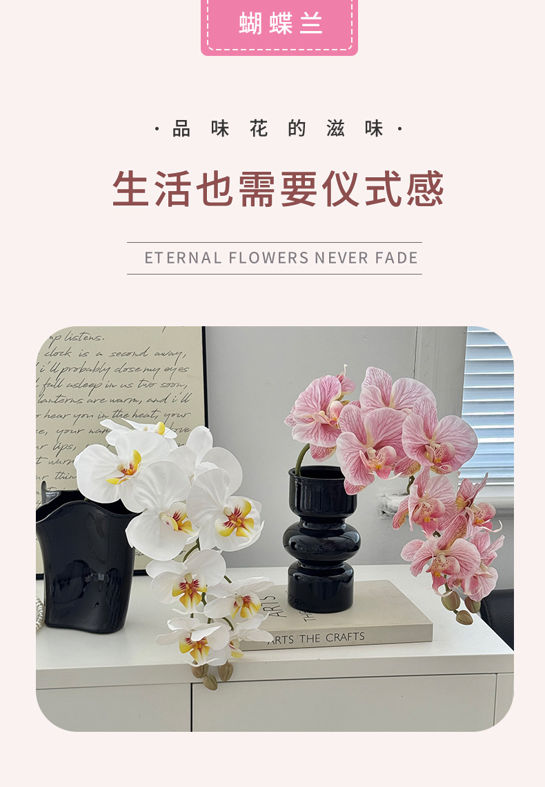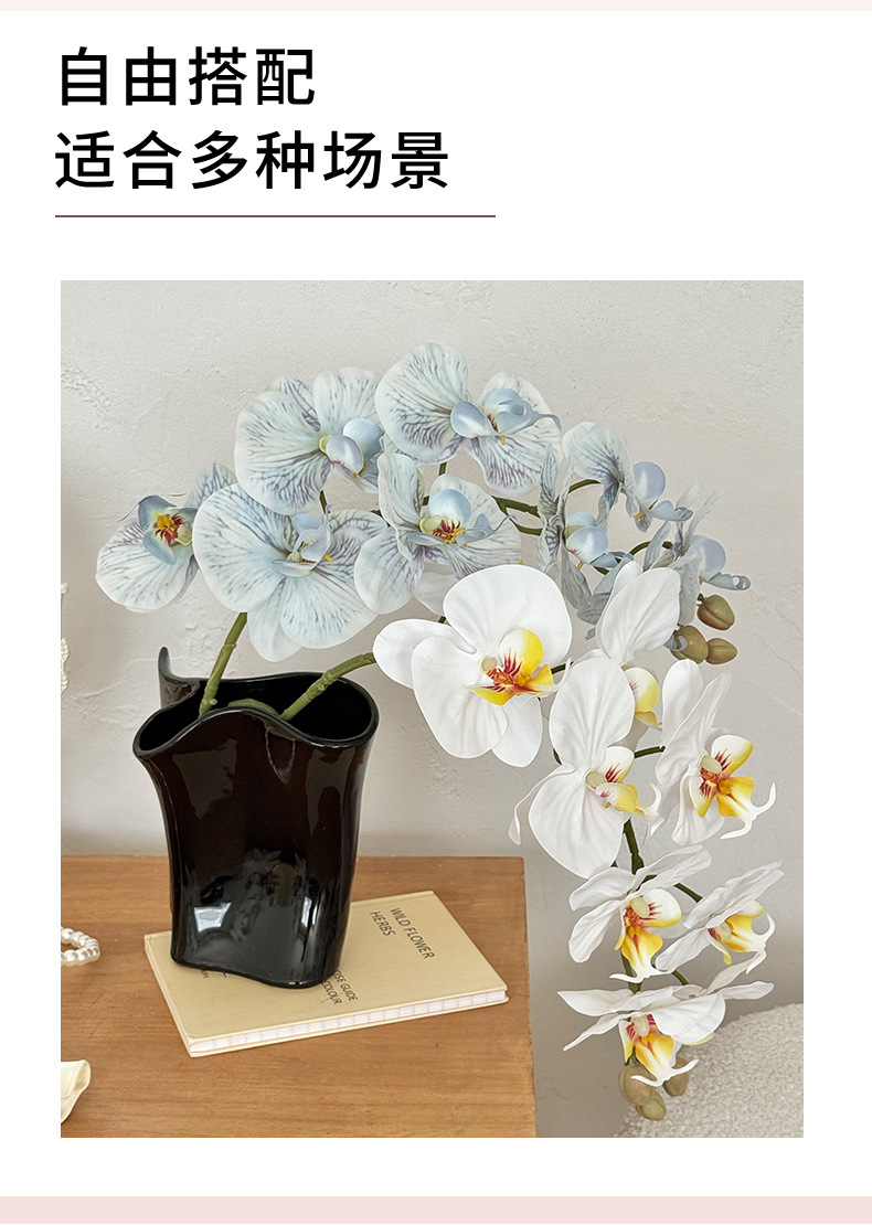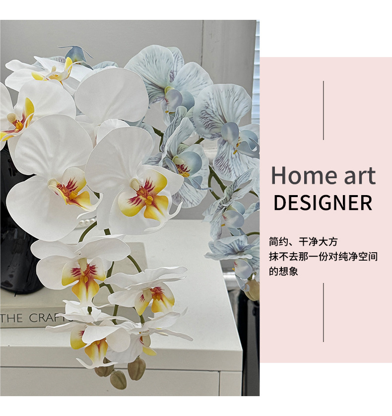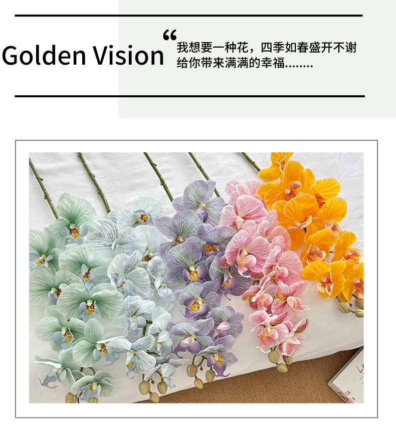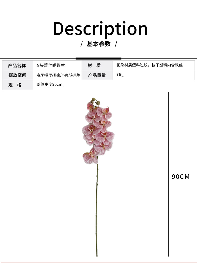 높은 시뮬레이션 접착제 핸들 9 헤드 Phalaenopsis 시뮬레이션 꽃 가짜 꽃 장식 홈 침실 TV 캐비닛 장식스토어 가기