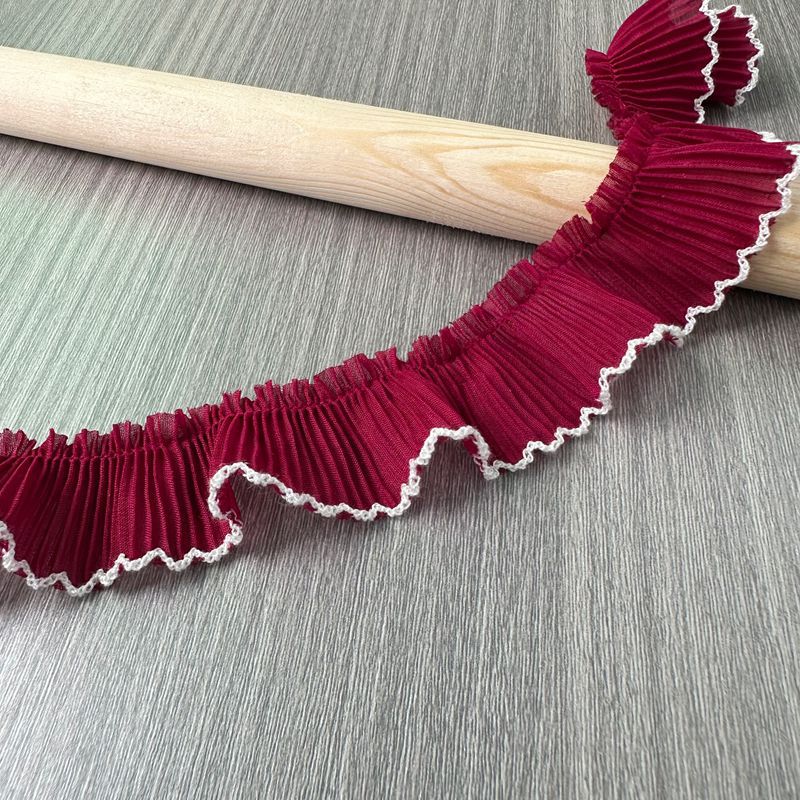 3cm 버건디 핑크 그레이 쉬폰 주름 장식 레이스 트림 의류 장식품 인형 드레스 밑단 애완동물 의류 장식