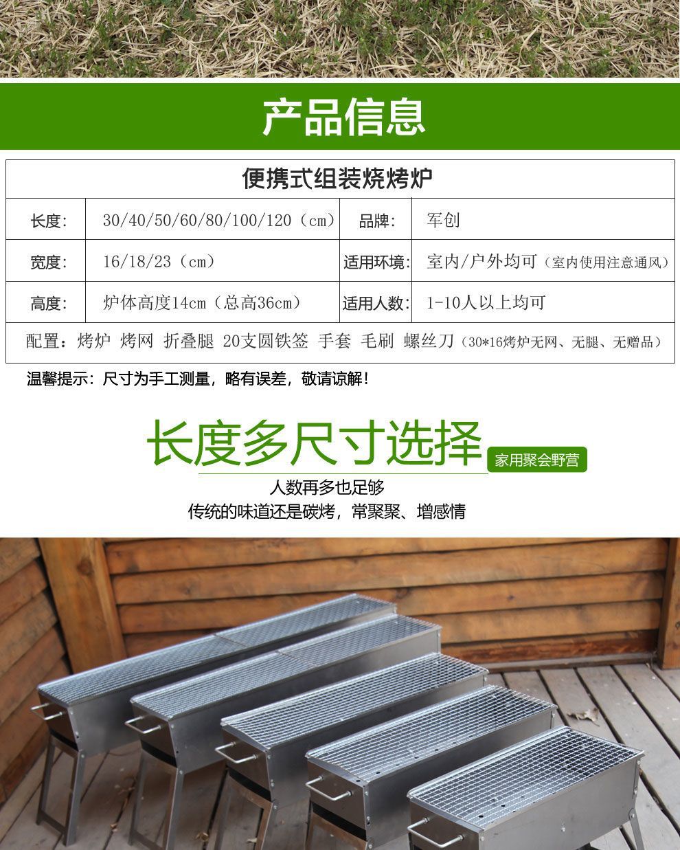 • 길이 80*너비 18 두꺼운 바베큐 그릴 패키지 5 ♢