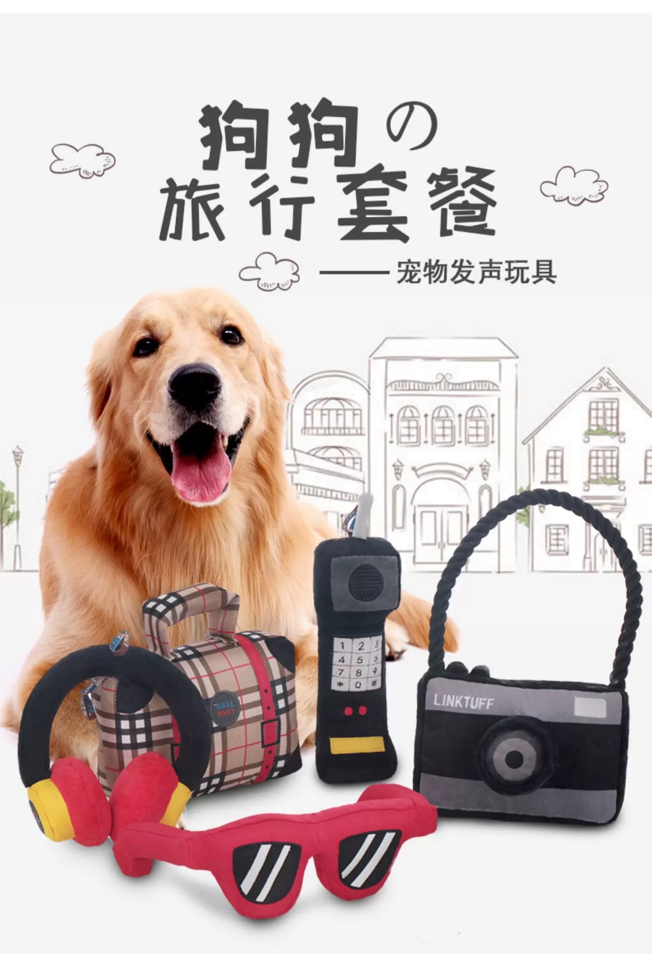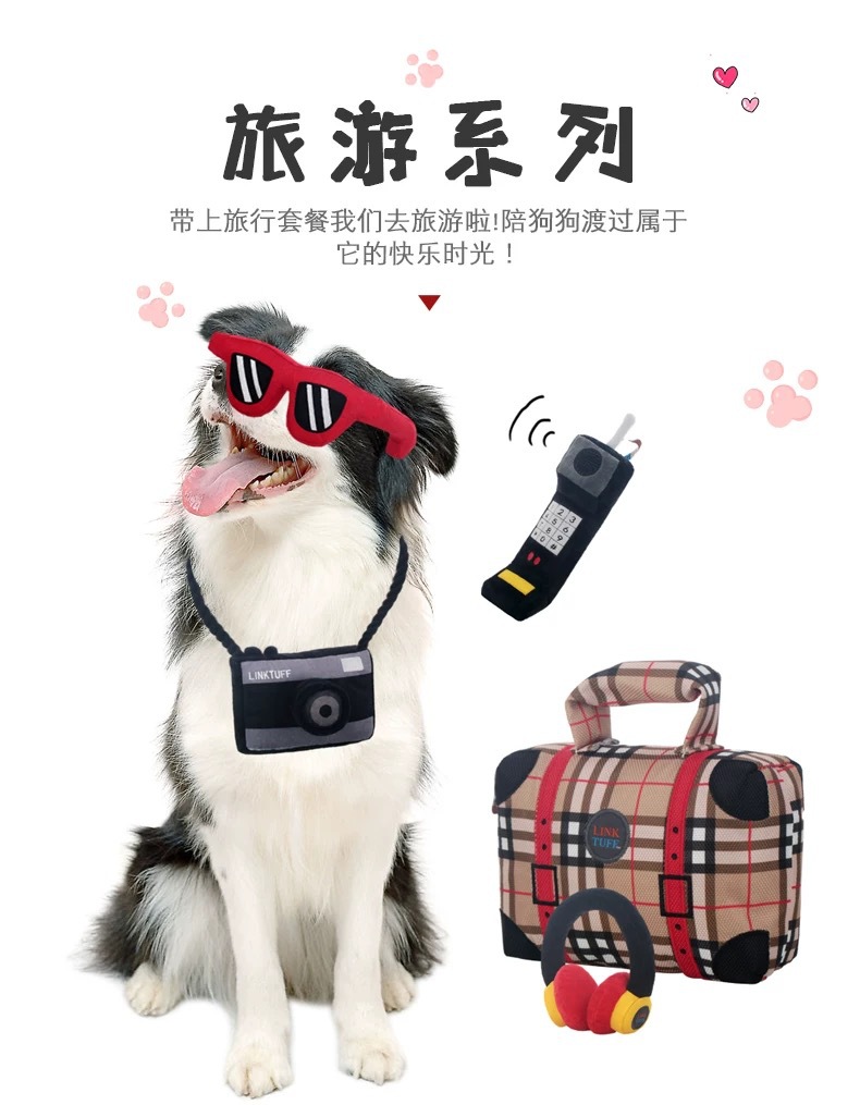 Qimin 애완견 플러시 장난감 물림 방지 및 사운드 여행 패키지 카메라 장난감 강아지는 지루함과 치아를 완화합니다.스토어 가기