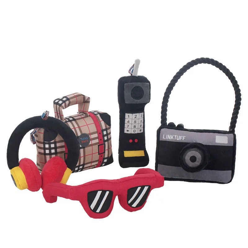 Qimin 애완견 플러시 장난감 물림 방지 및 사운드 여행 패키지 카메라 장난감 강아지는 지루함과 치아를 완화합니다.
