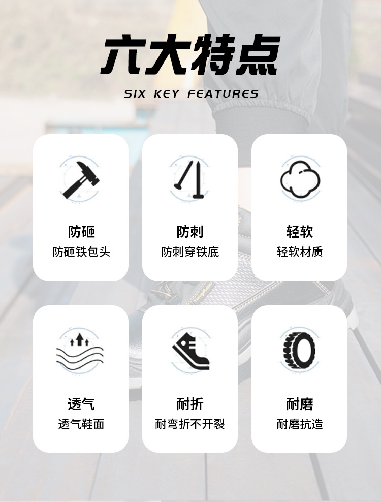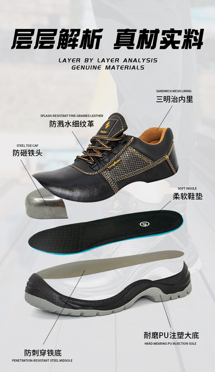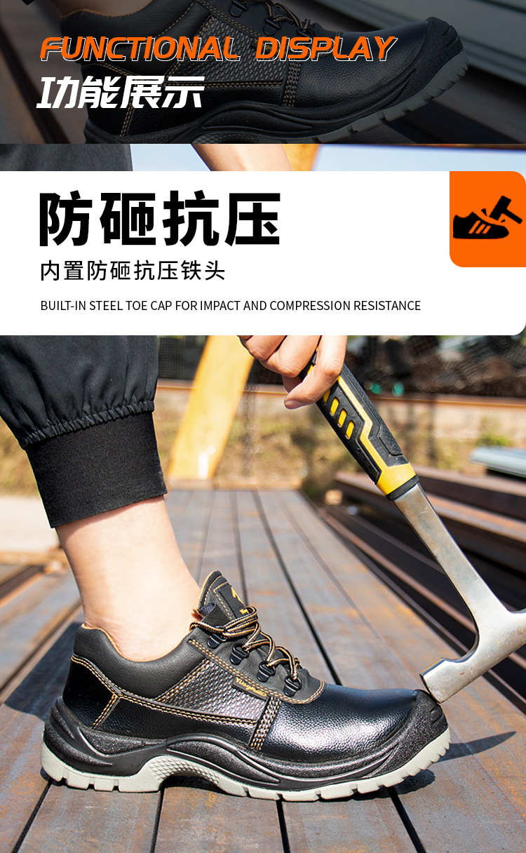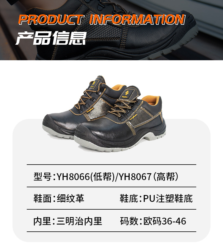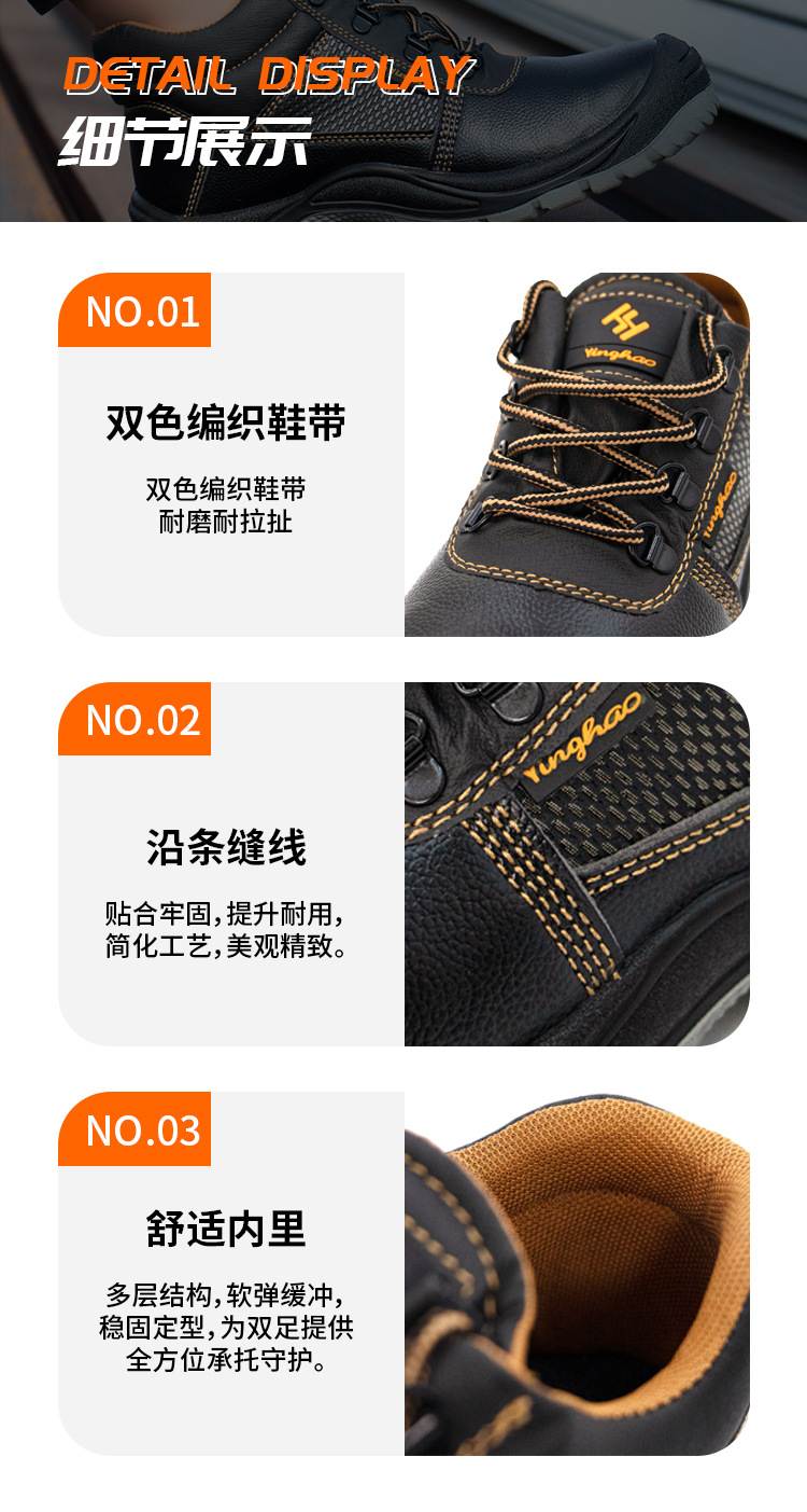 Yinghao 남성용 새로운 노동 보호 신발, 견고한 바닥, 스매싱 방지 및 펑크 방지 건설 현장 내마모성 신발, 안전 보호 작업 신발 도매