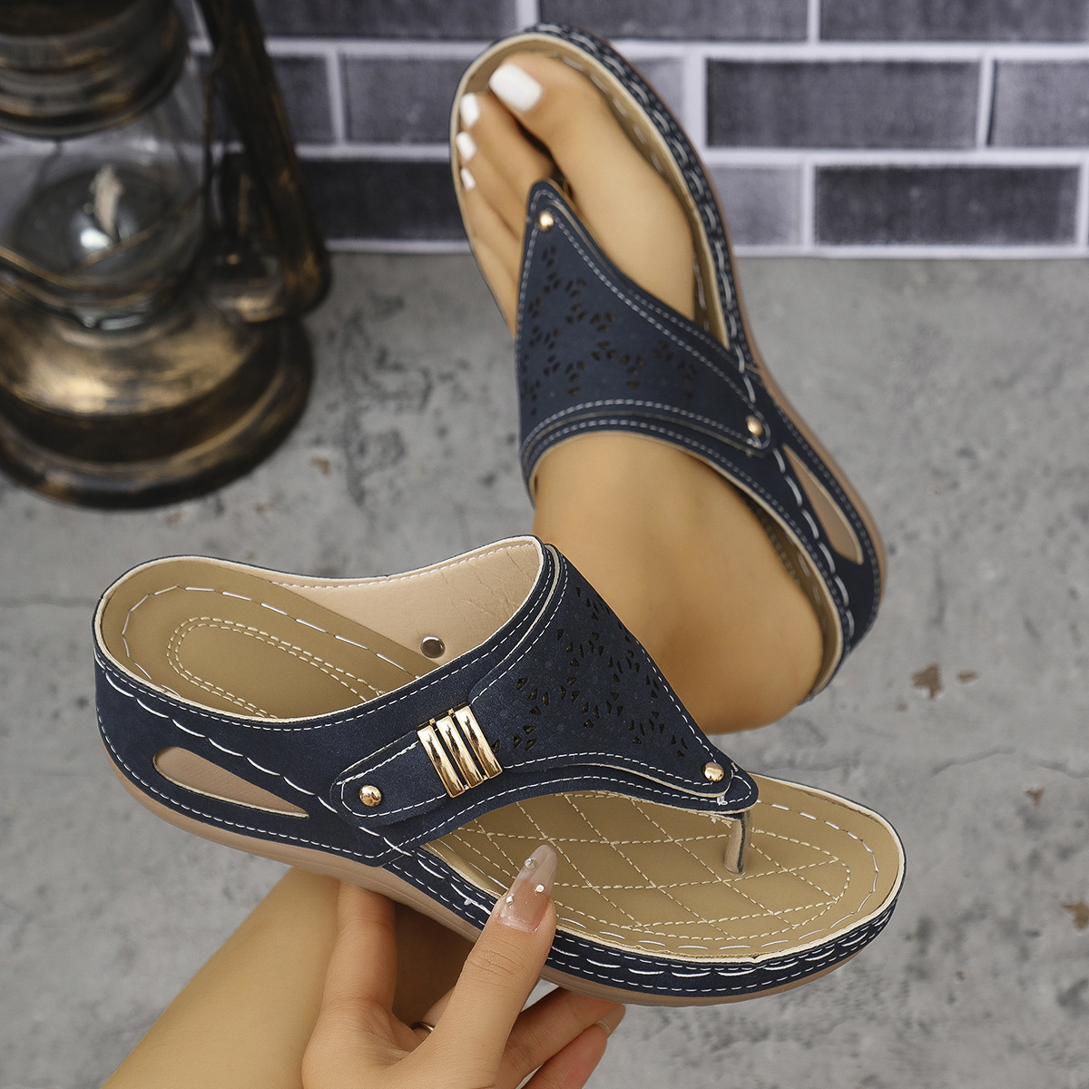 2025外贸新款夏季女士厚底夹趾拖鞋跨境大码休闲坡跟厚底夹趾拖