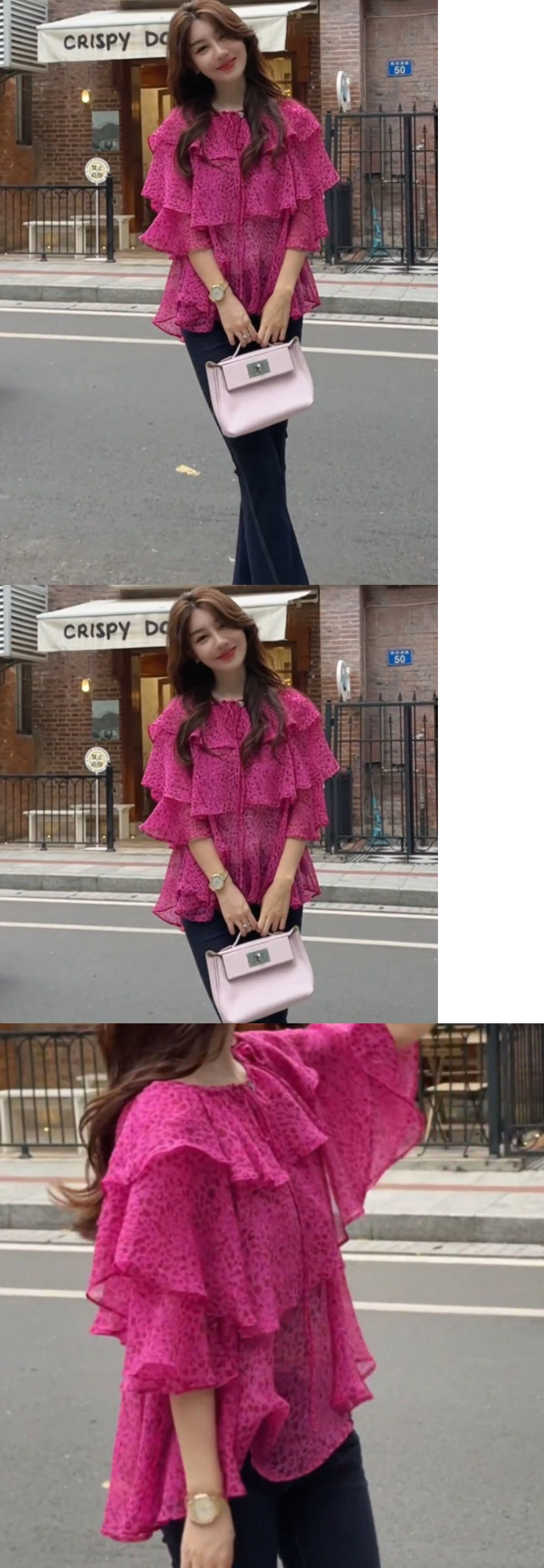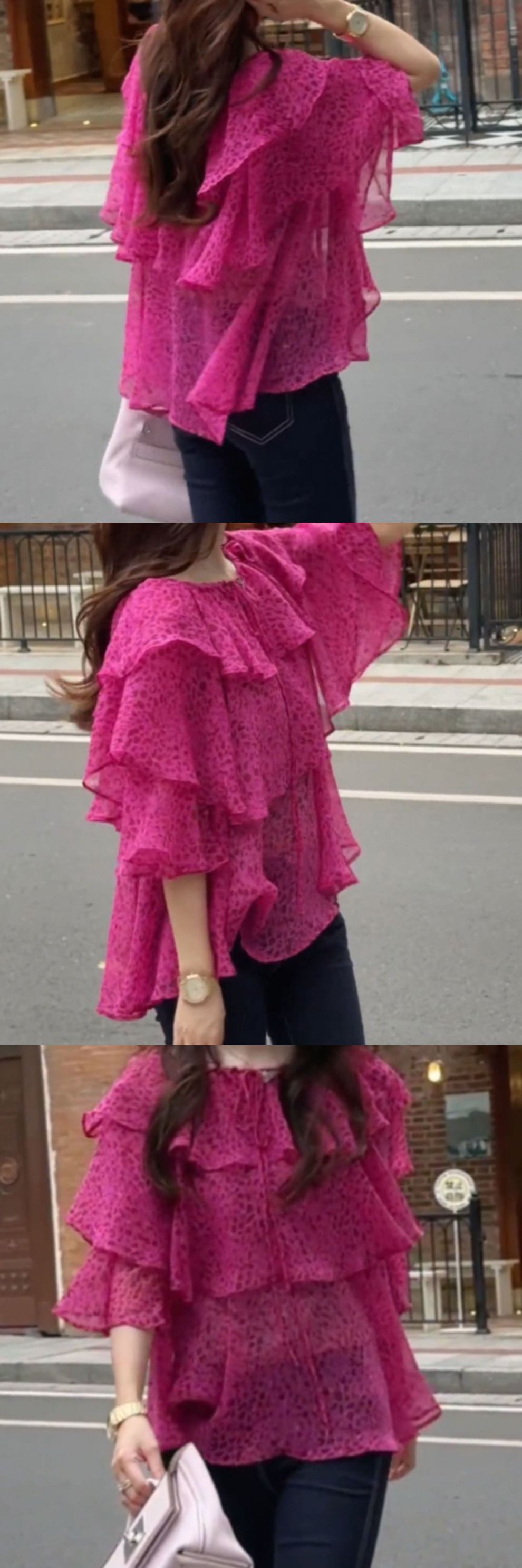 도파민 러플 쉬폰 셔츠 탑 슈퍼 요정 달콤한 여름 새로운 패션 스플 라이스 기질 여성용 반팔 셔츠스토어 가기