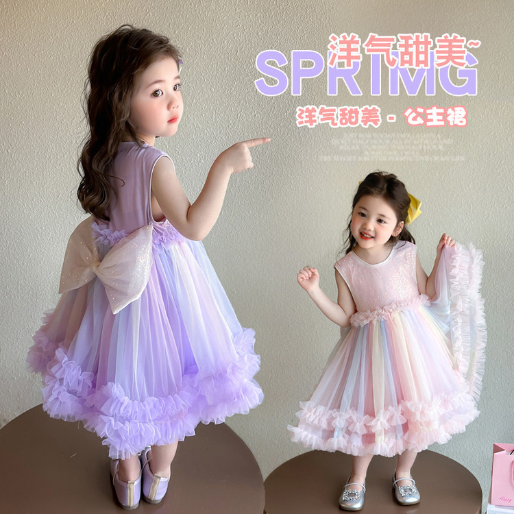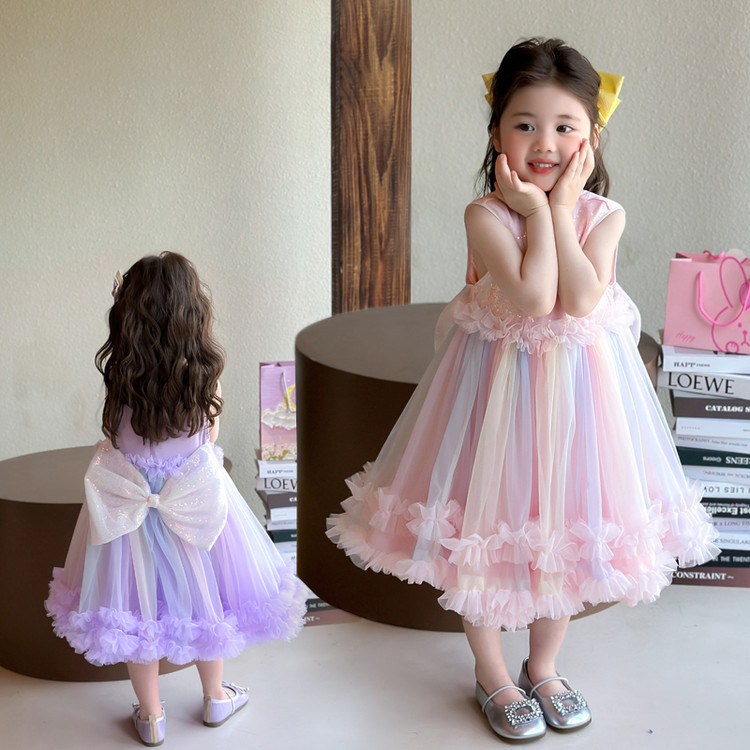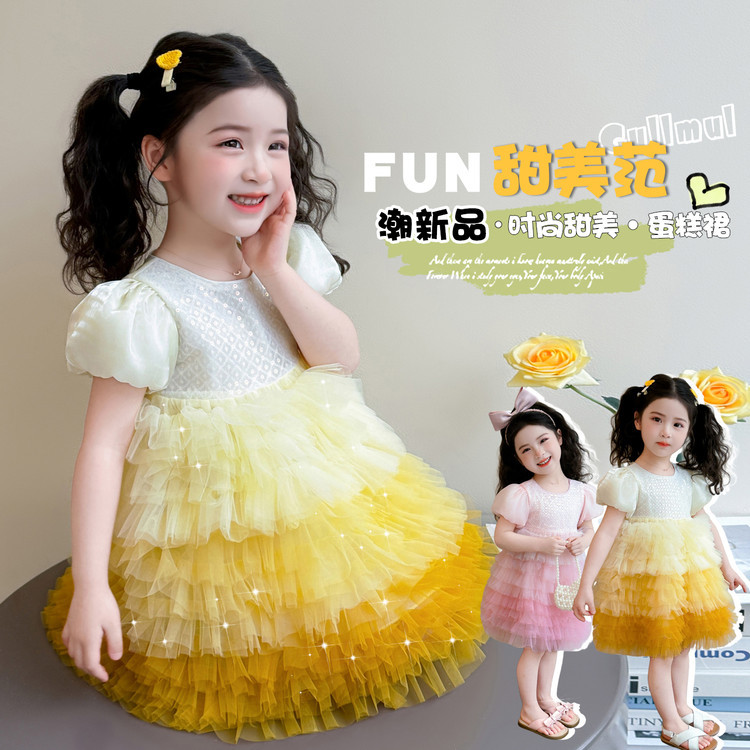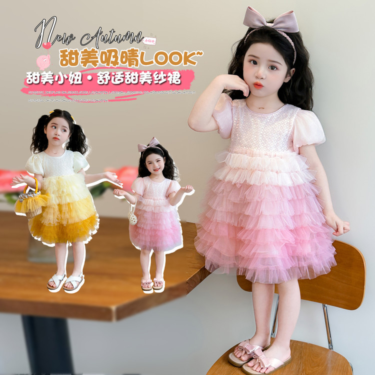 여아 여름 드레스 2026 신상 아동 나비 날개 퍼프 메쉬 공주 드레스 공연 의상 케이크 드레스스토어 가기