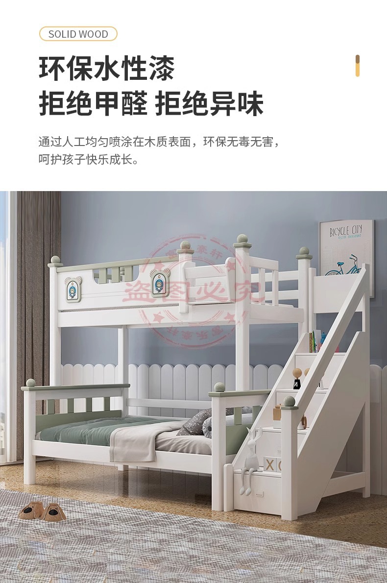 XMF919 어린이 침대, 소년 소녀용 이층 침대, 사다리 캐비닛이 있는 원목, 심플하고 모던한 어린이 침대스토어 가기