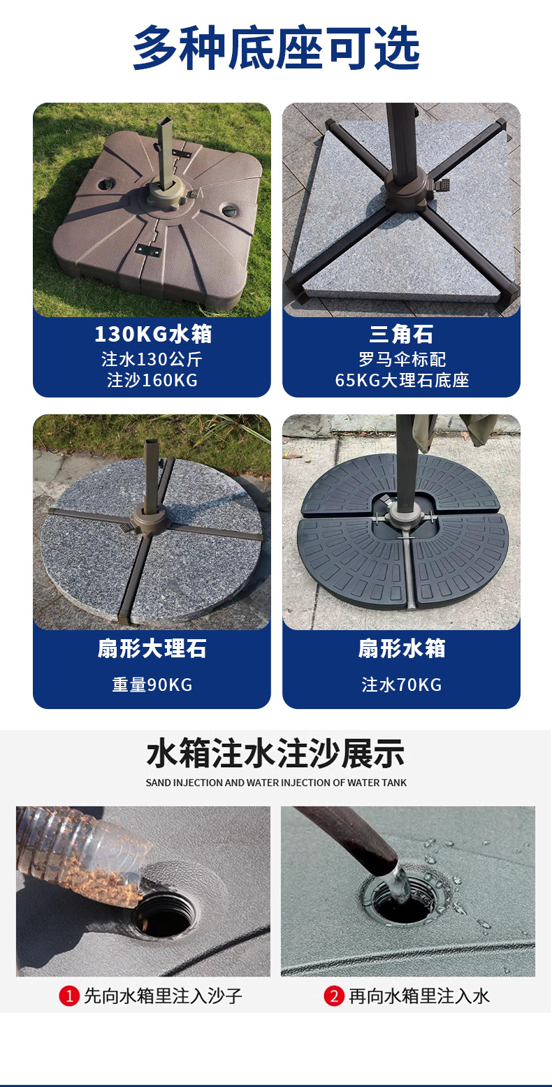 • 2.5m 무한한 사각 더블탑 로마우산 + 65KG 대리석