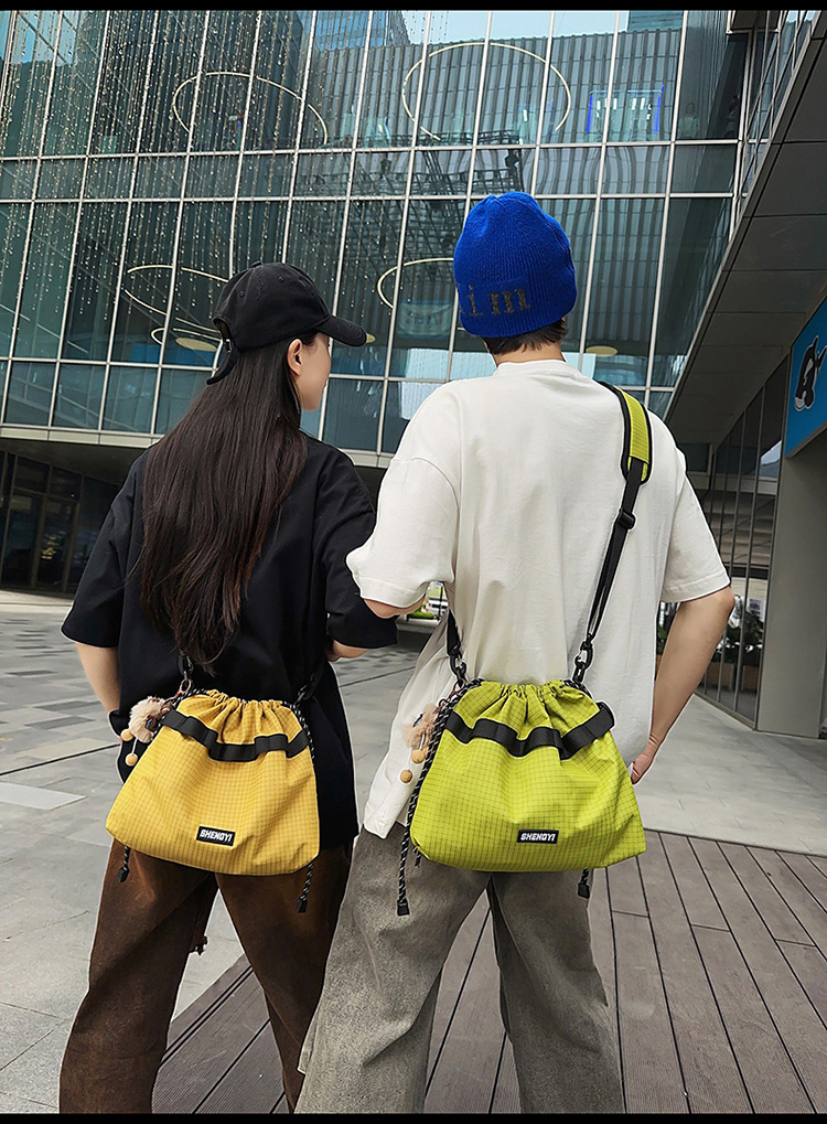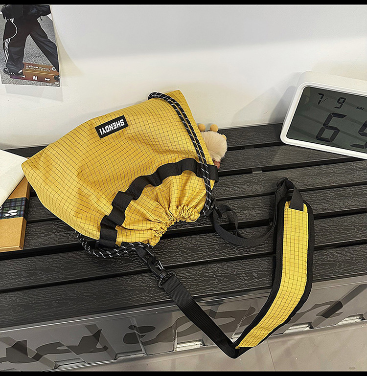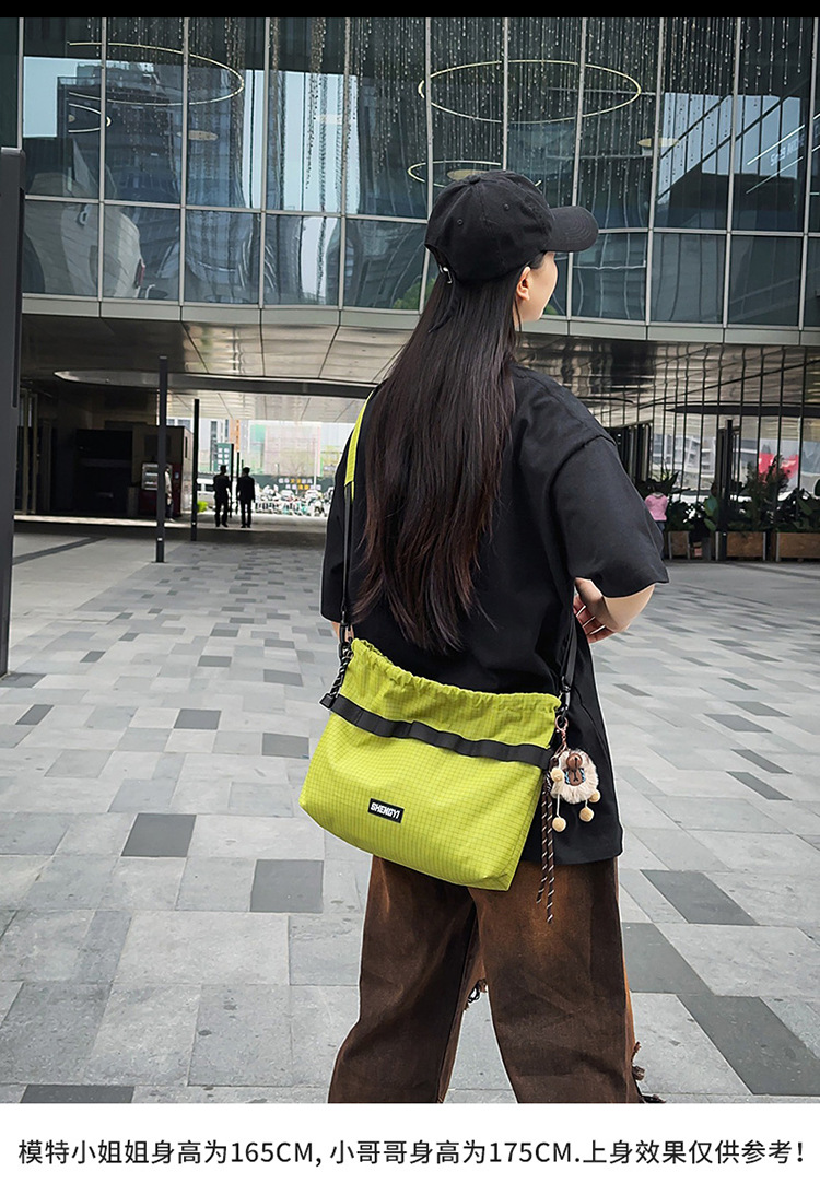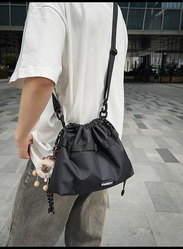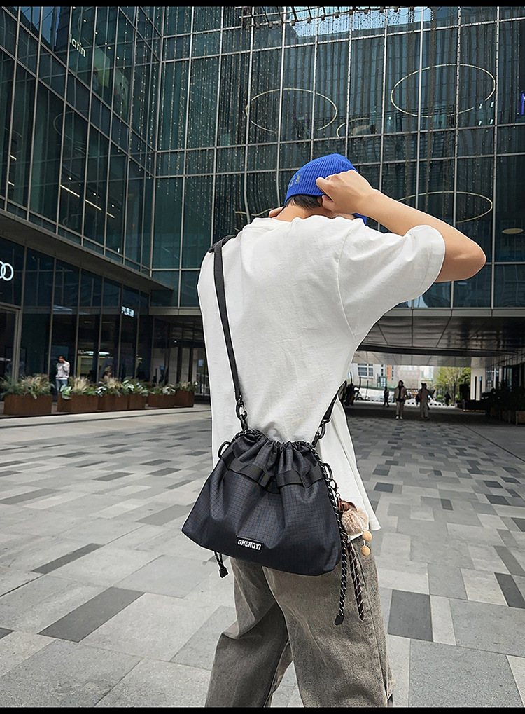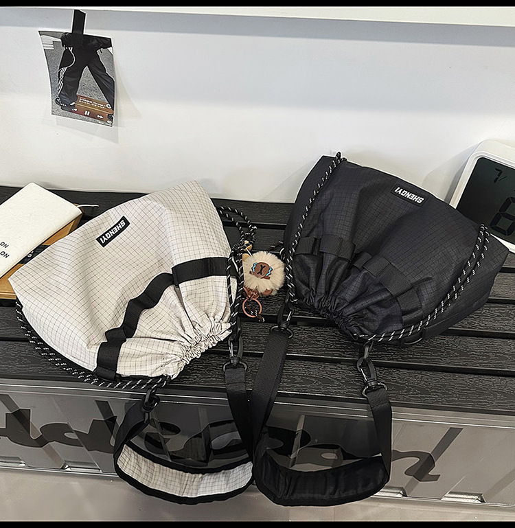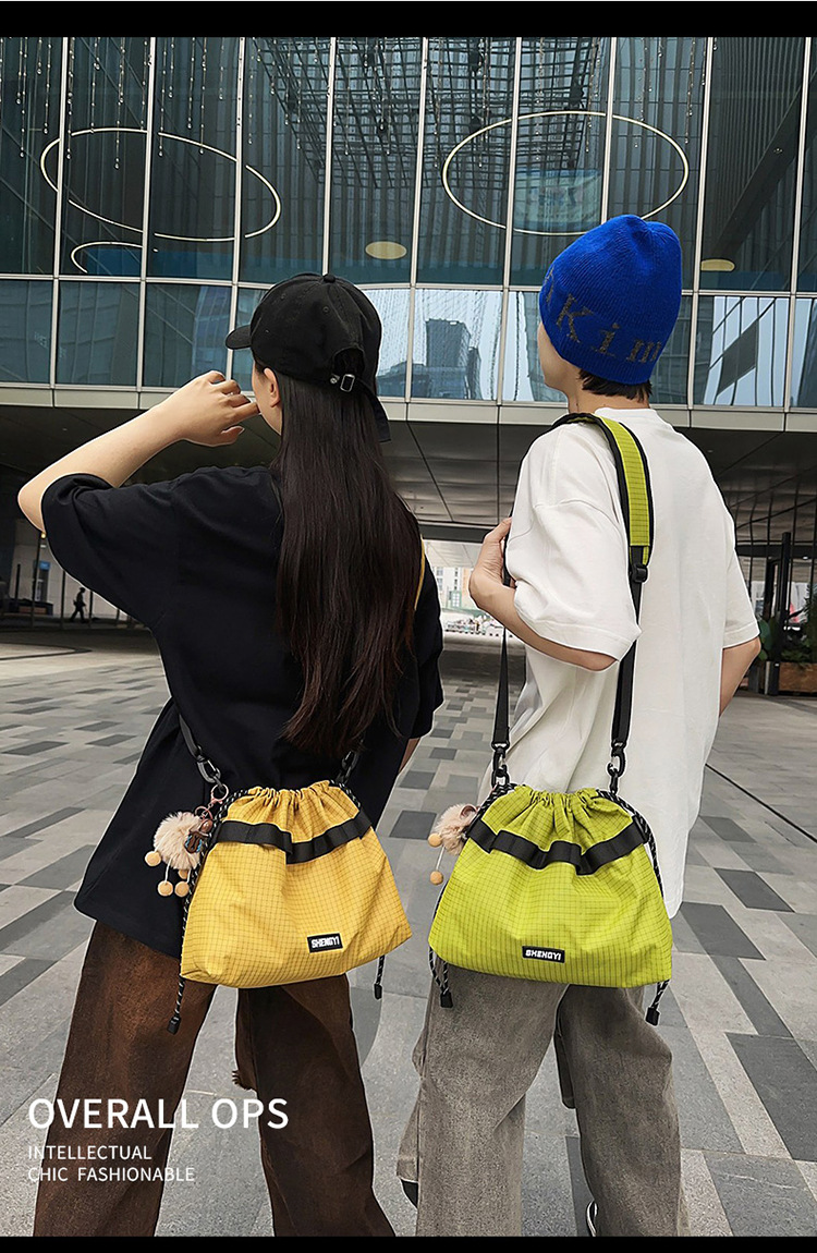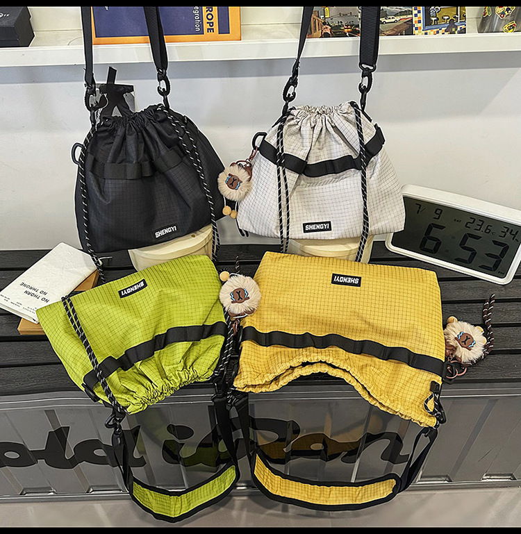 여름 drawstring nylon 가방 2025 새로운 남성과 여성의 unisex 야외 어깨 가방 크로스 바디 가방 사이클링 버킷 가방스토어 가기