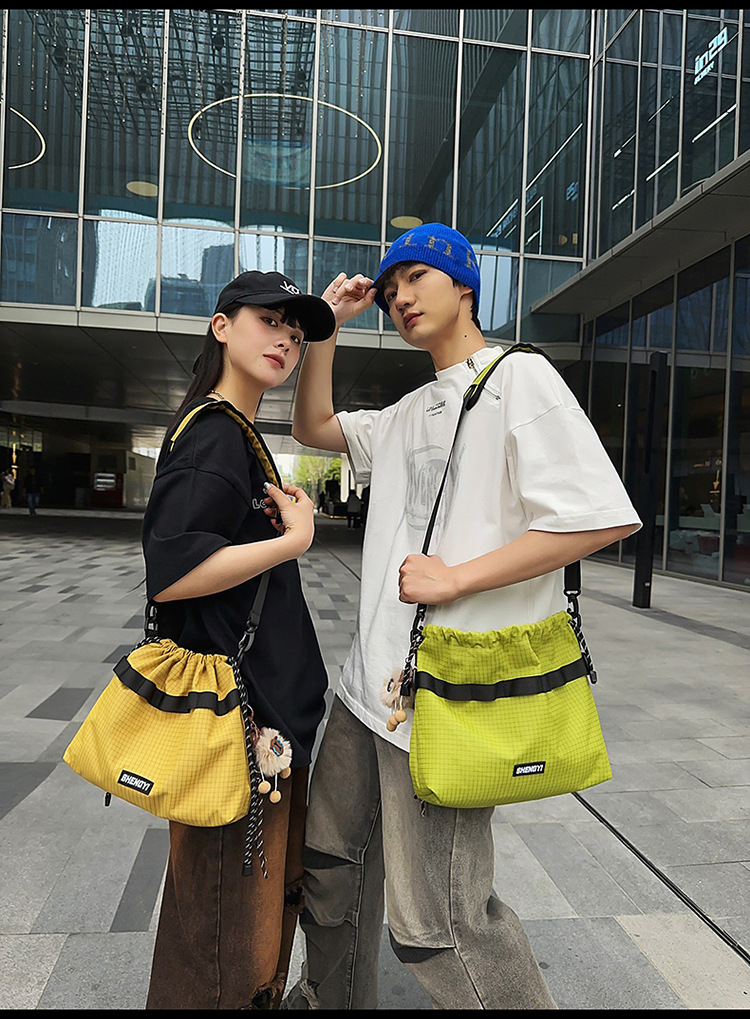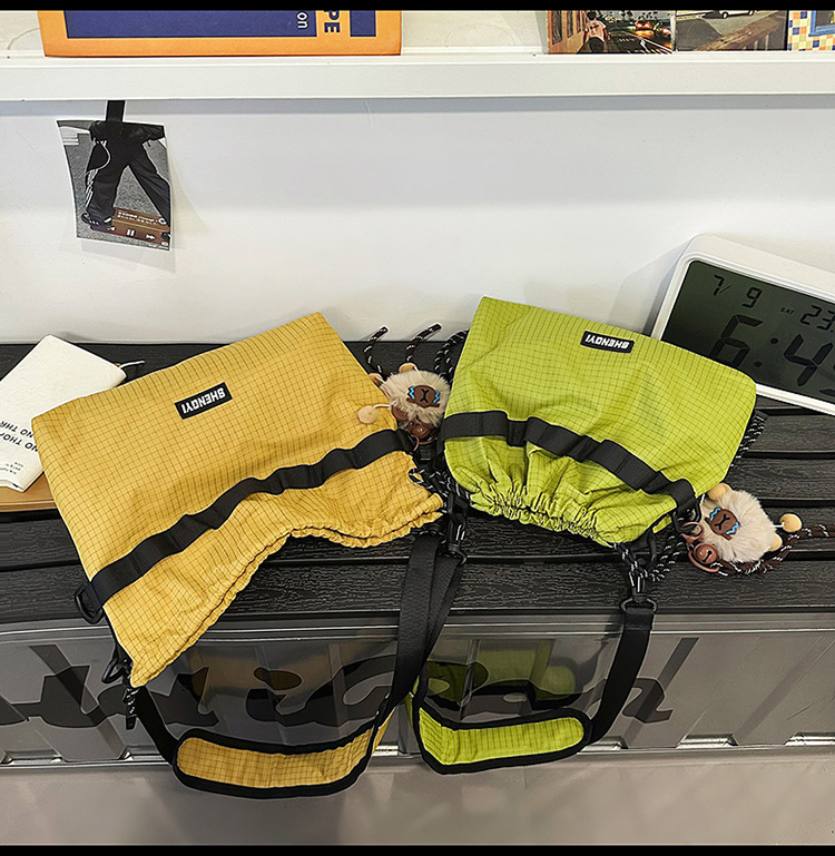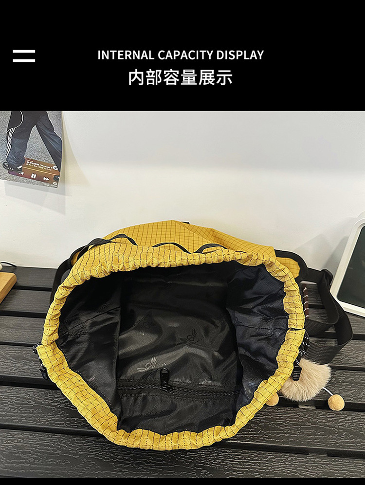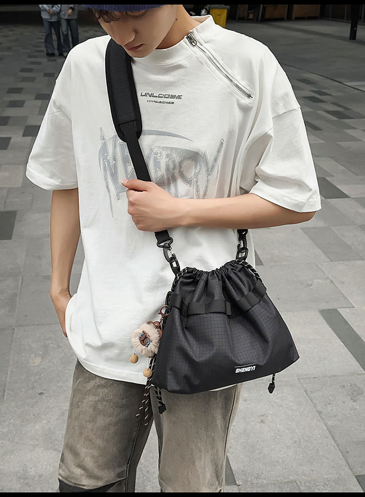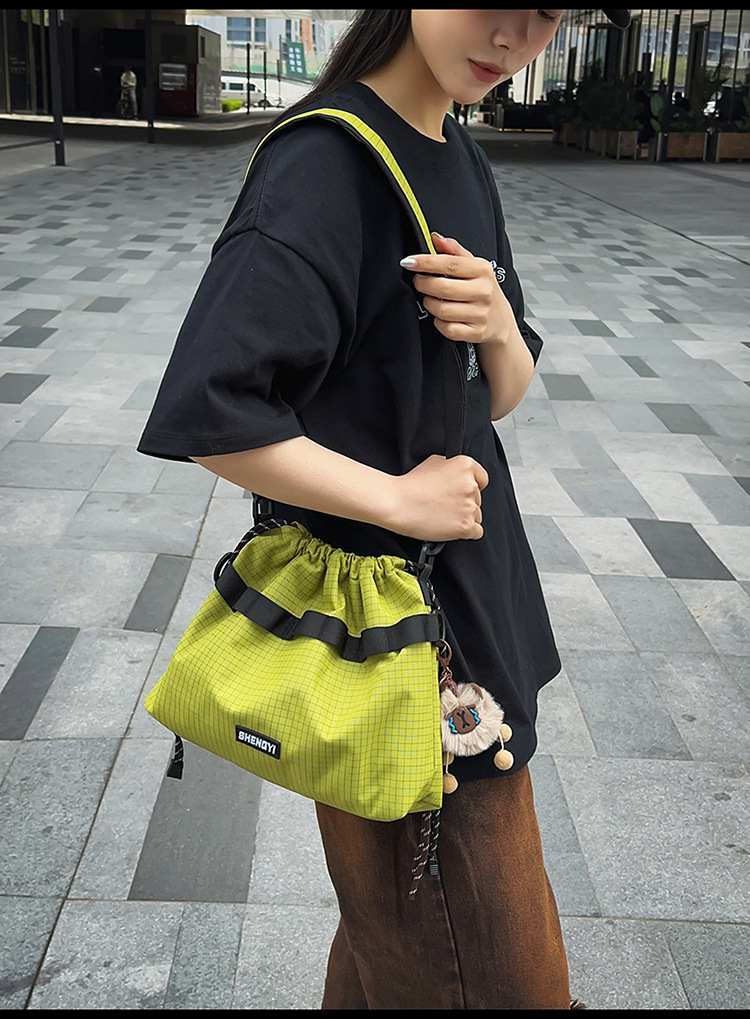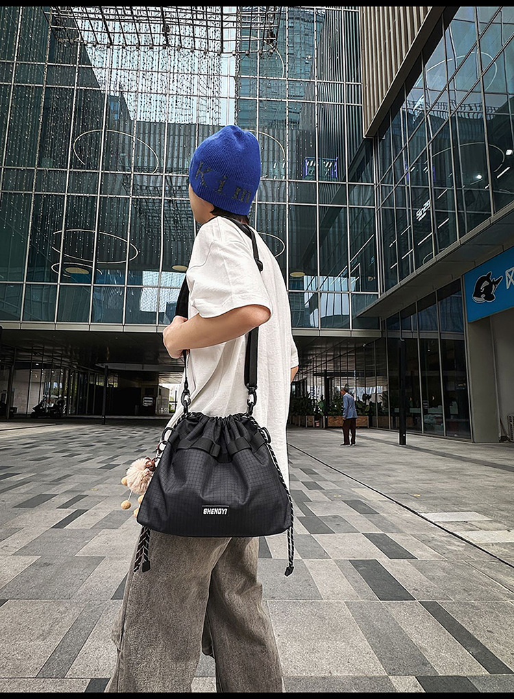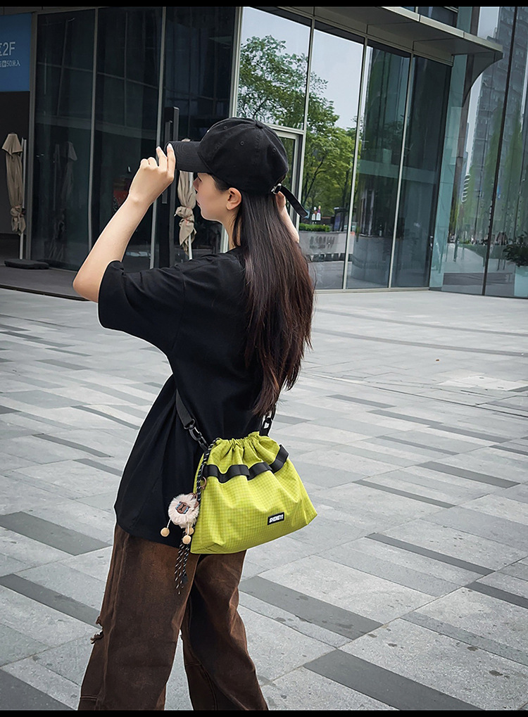 여름 drawstring nylon 가방 2025 새로운 남성과 여성의 unisex 야외 어깨 가방 크로스 바디 가방 사이클링 버킷 가방스토어 가기