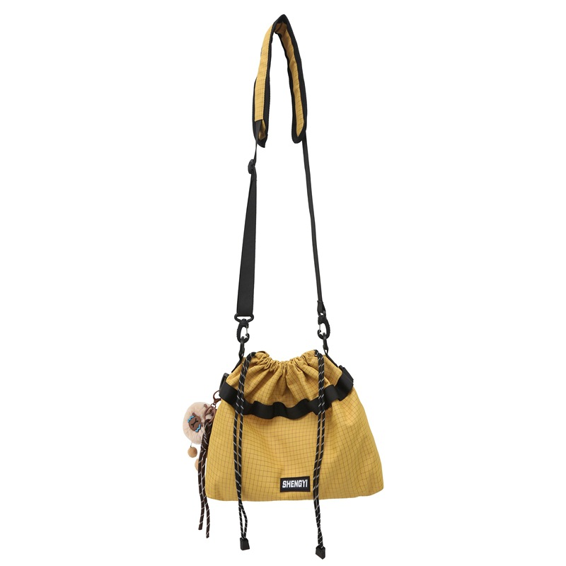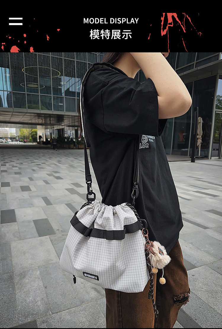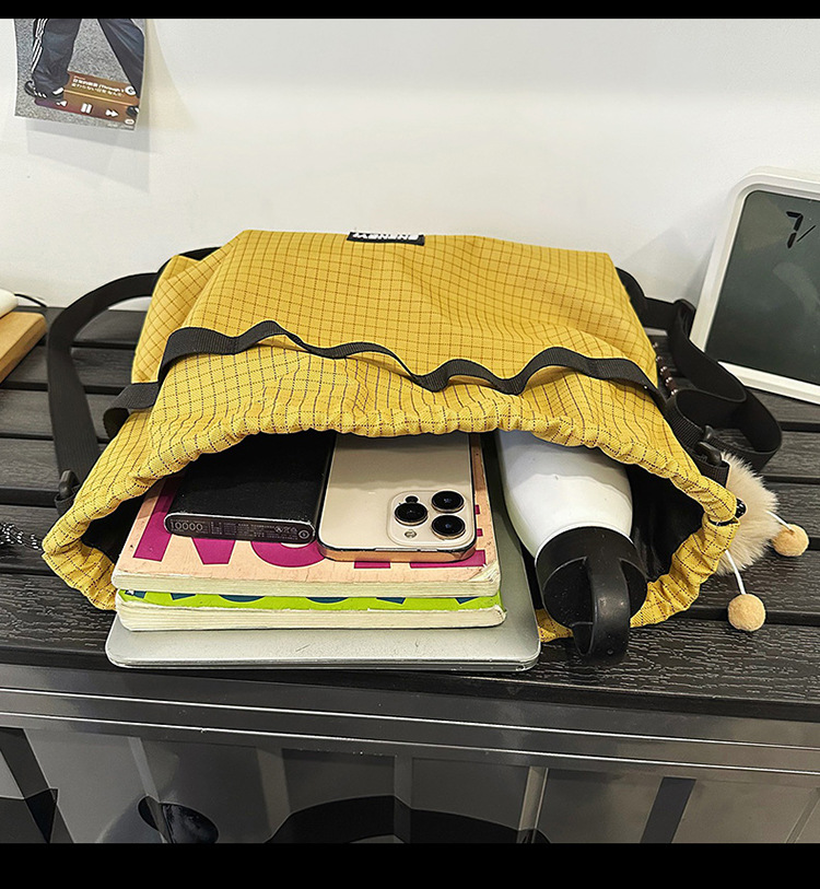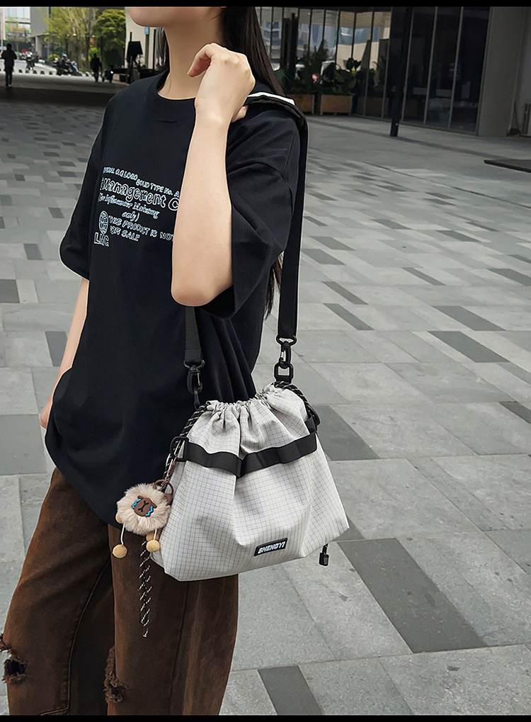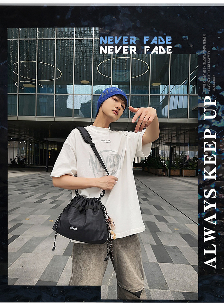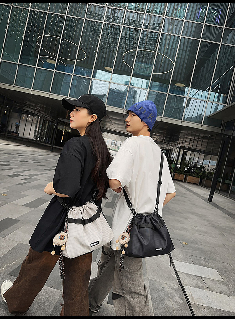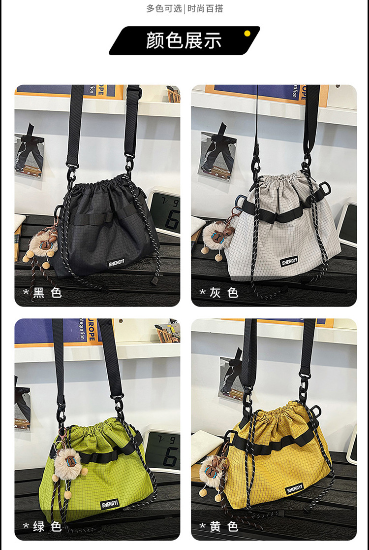 여름 drawstring nylon 가방 2025 새로운 남성과 여성의 unisex 야외 어깨 가방 크로스 바디 가방 사이클링 버킷 가방스토어 가기