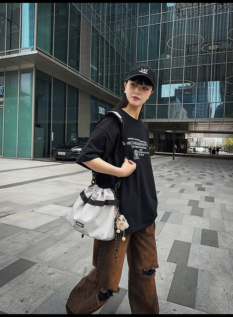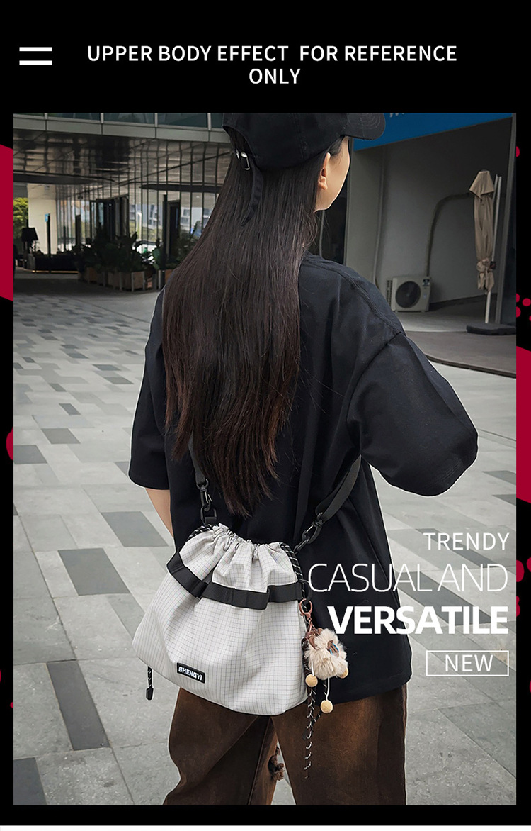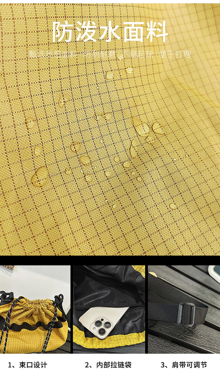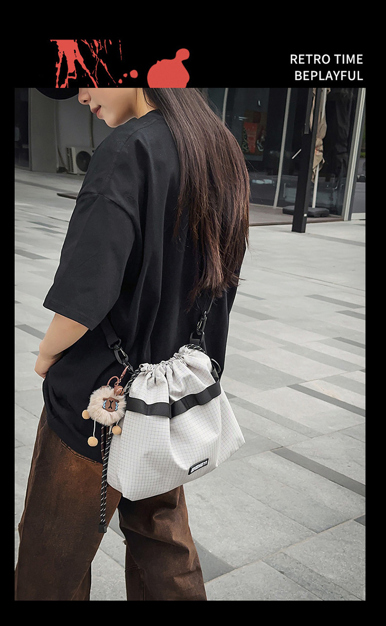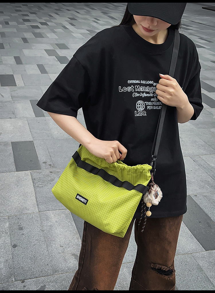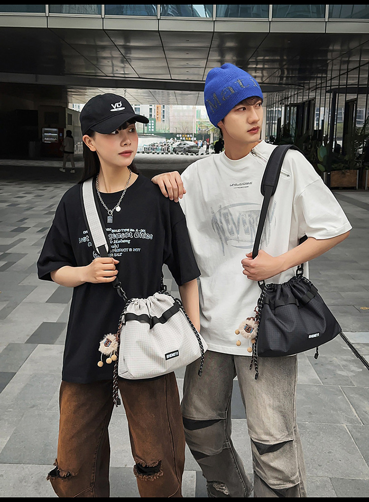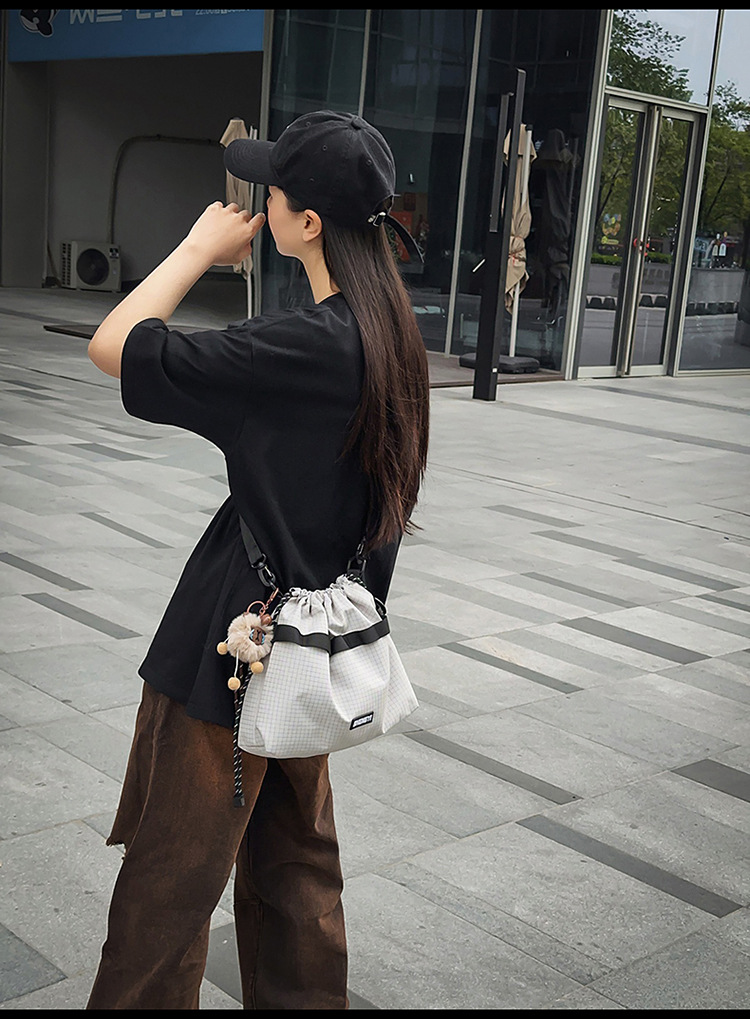 여름 drawstring nylon 가방 2025 새로운 남성과 여성의 unisex 야외 어깨 가방 크로스 바디 가방 사이클링 버킷 가방스토어 가기