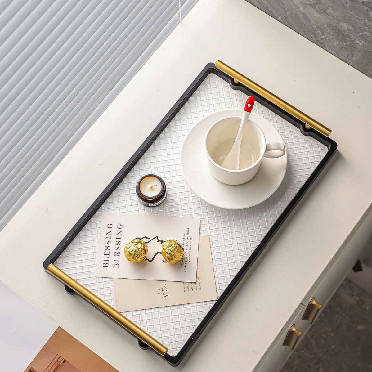 • 우븐 밀크 화이트 트레이 + 골드 손잡이