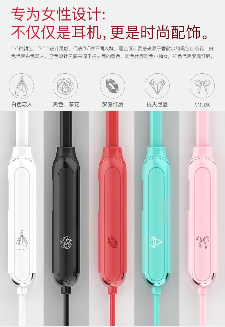 BN18 휴대용 무선 블루투스 이어폰, 컴팩트한 디자인, 여성용, 넥밴드형, 스포티한 스타일