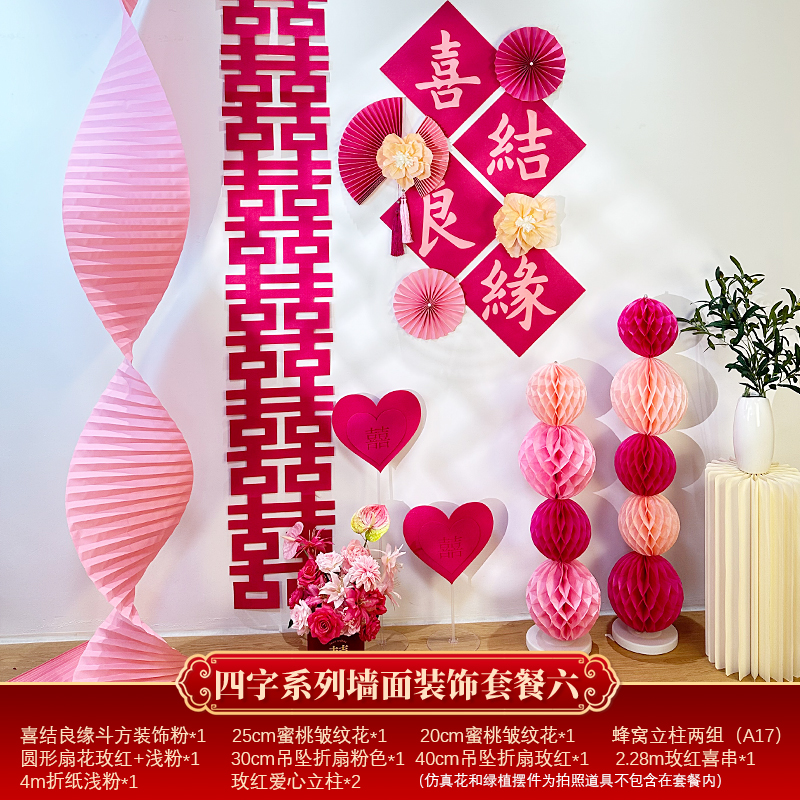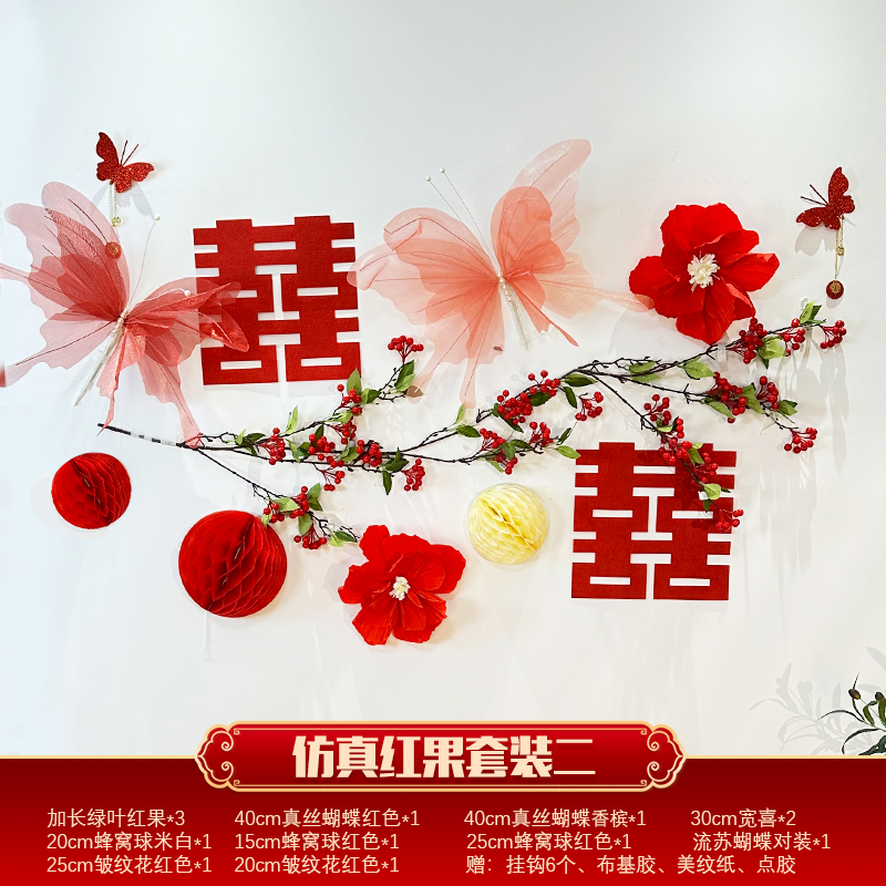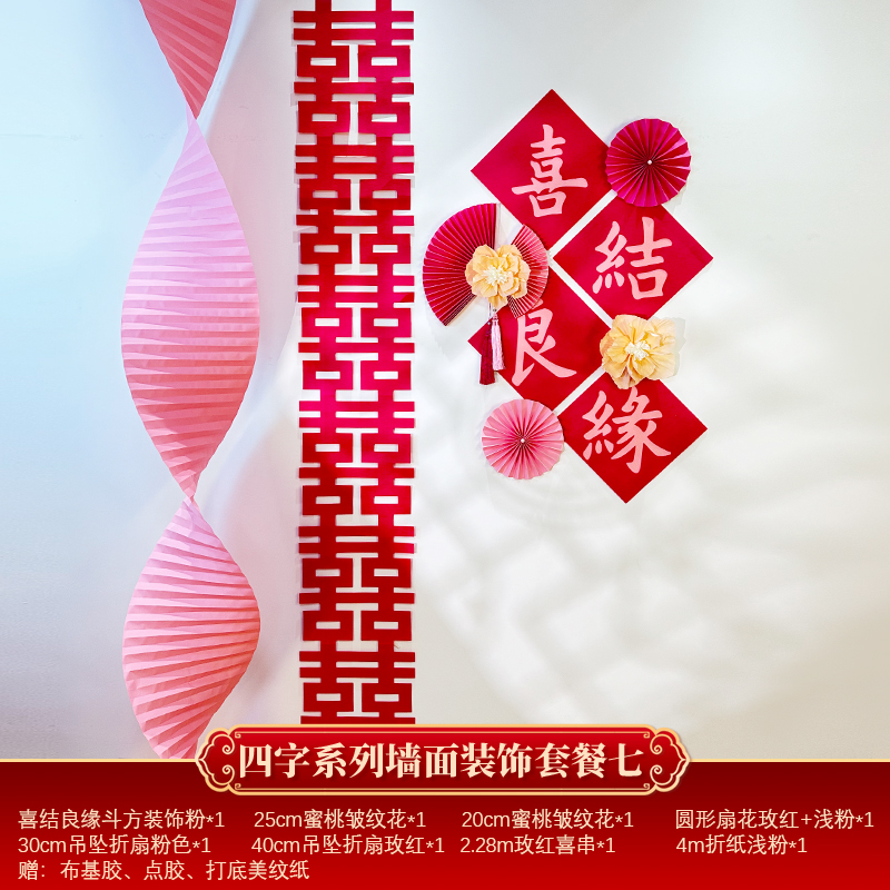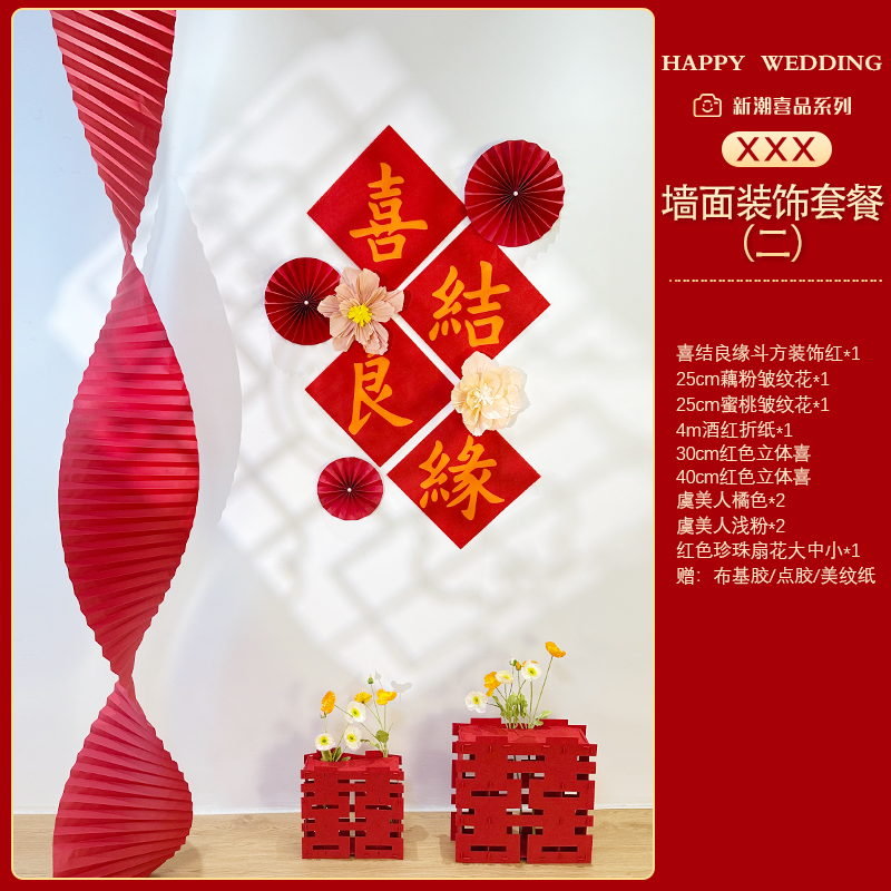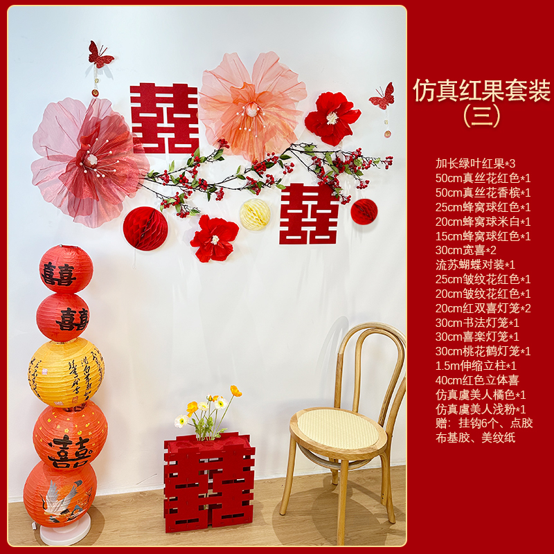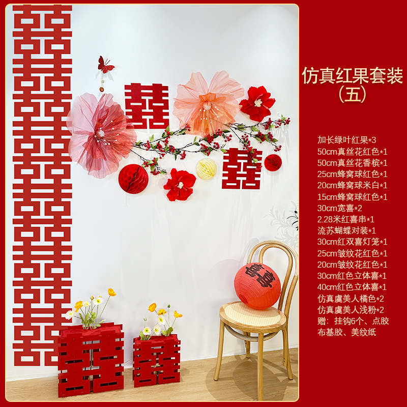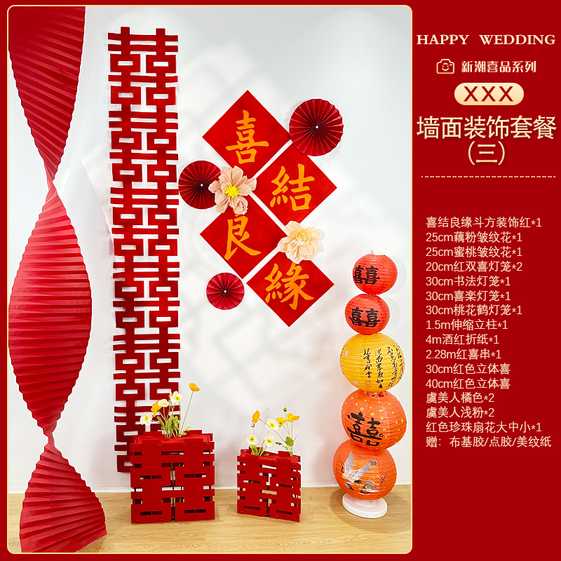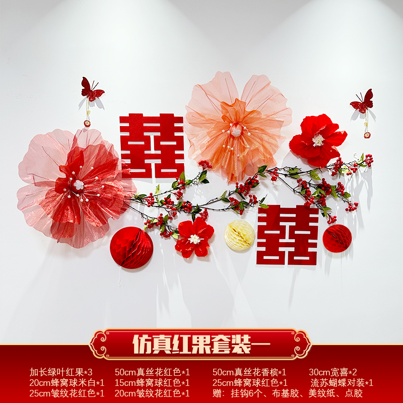 Mengyuan Xipu 웨딩 룸 레이아웃 침대 옆 꽃 배경 벽 웨딩 장식 남자의 새 집 거실 소파 행복한 단어 스티커스토어 가기