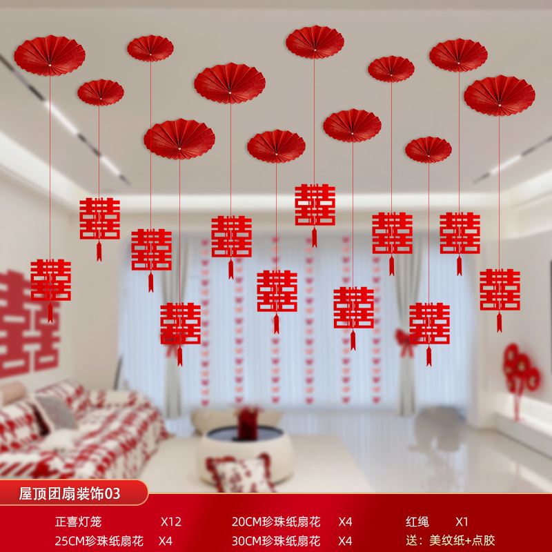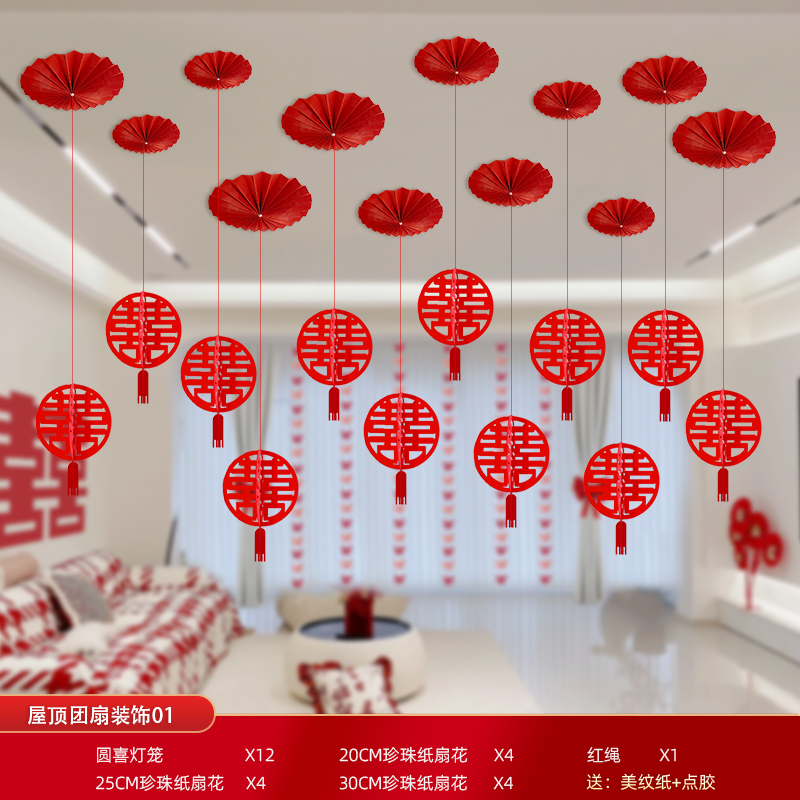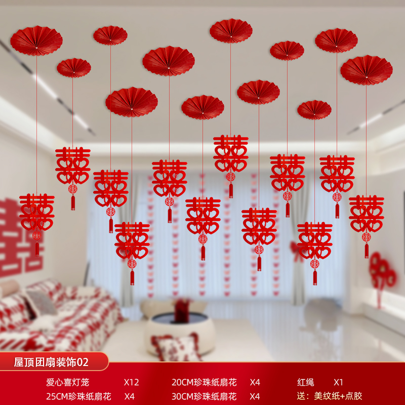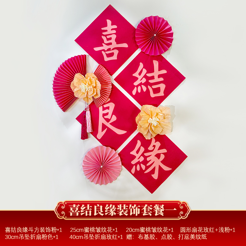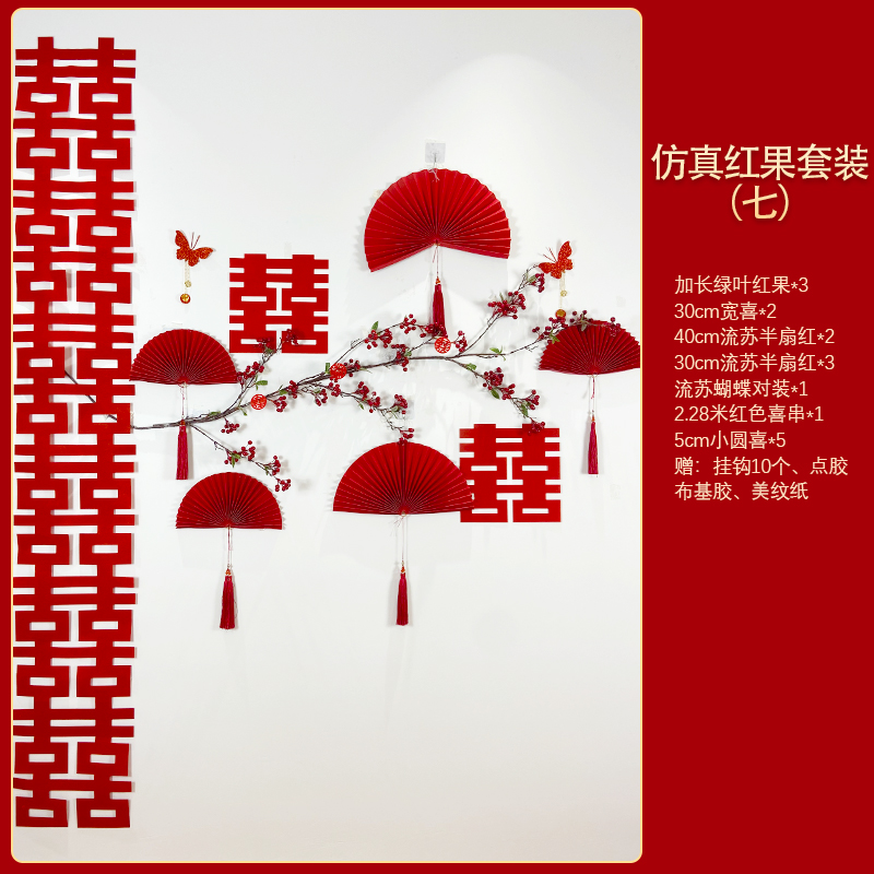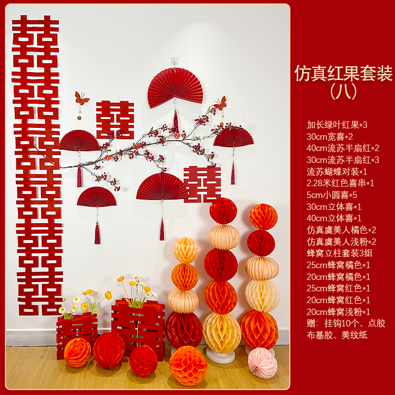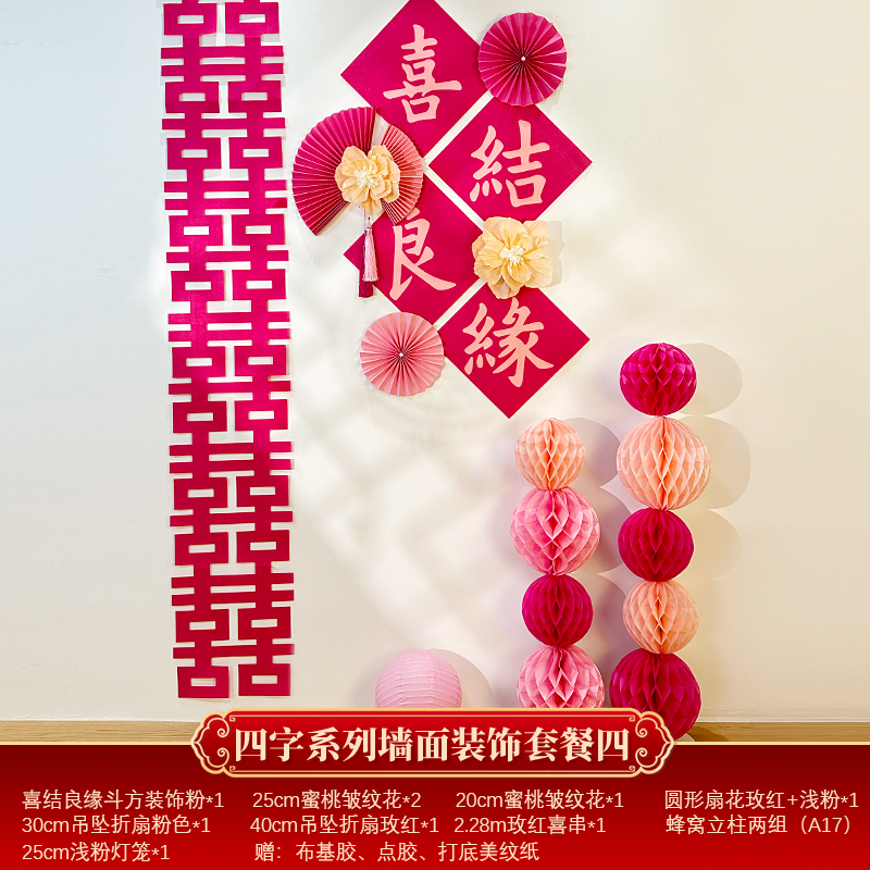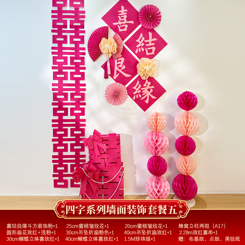 Mengyuan Xipu 웨딩 룸 레이아웃 침대 옆 꽃 배경 벽 웨딩 장식 남자의 새 집 거실 소파 행복한 단어 스티커스토어 가기