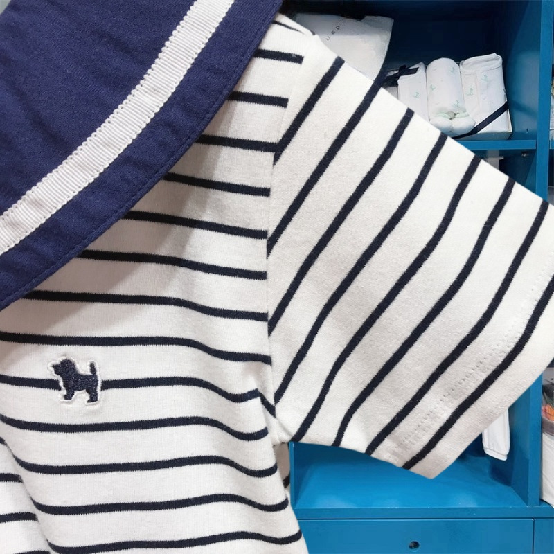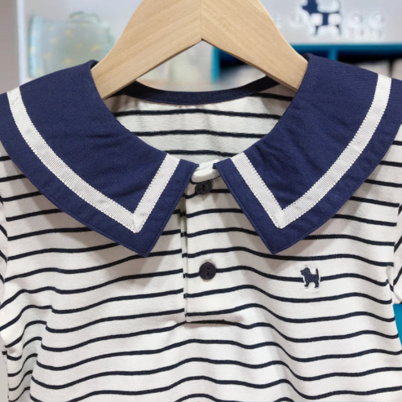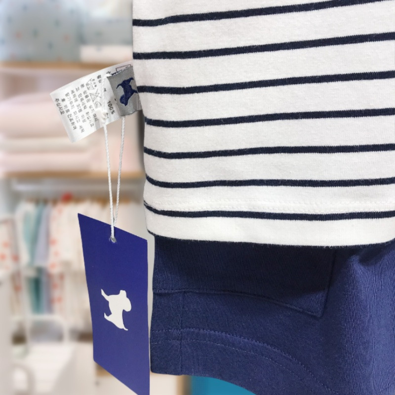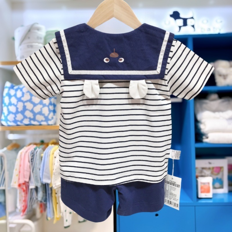 한국식 아동복 여름 새 남녀 아기 줄무늬 반팔 티셔츠 반바지 투피스 세트 네이비 스타일 MS550503스토어 가기