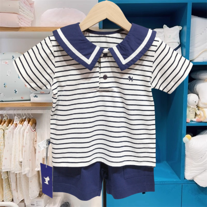 한국식 아동복 여름 새 남녀 아기 줄무늬 반팔 티셔츠 반바지 투피스 세트 네이비 스타일 MS550503