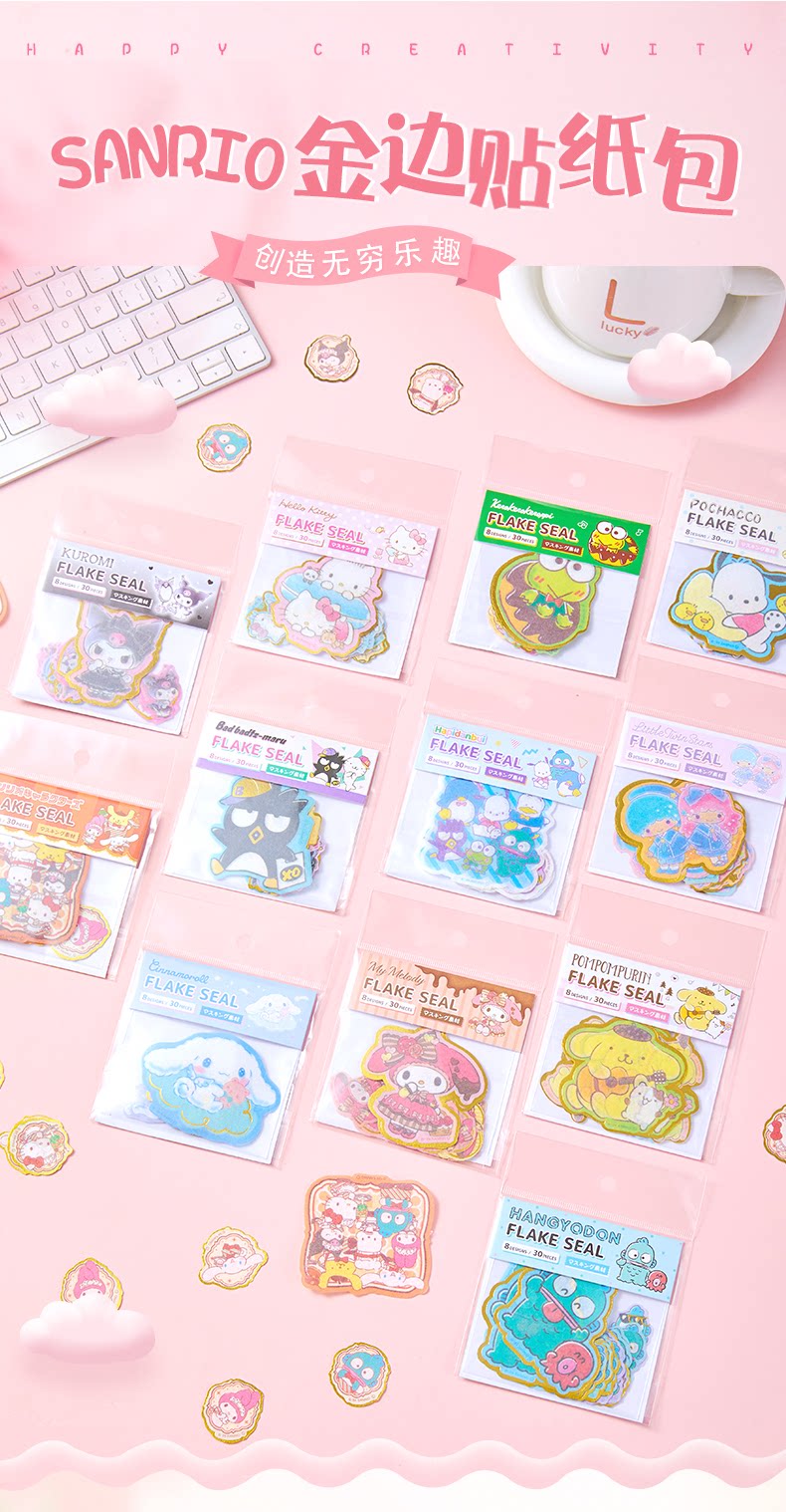 일본 만화 멜로디 골드 에지 스티커 팩 스티커 핸드북 diy Guka 일기 방수 컵 장식 스티커 12 스타일스토어 가기