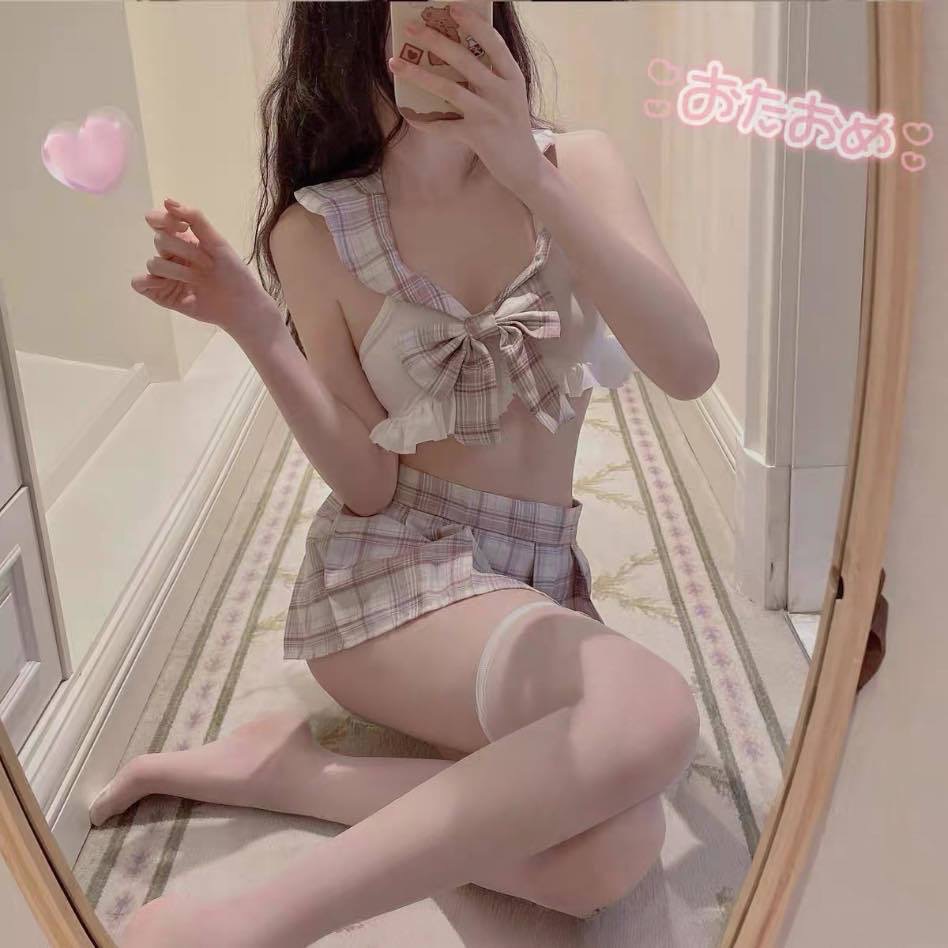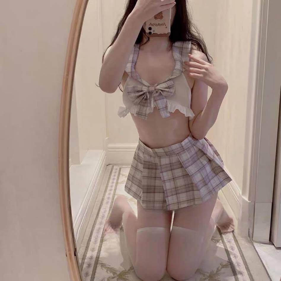 뚱뚱한 여자 플러스 사이즈 100kg 달콤하고 귀여운 학생 유니폼 JK 미니 스커트 섹시한 란제리 코스프레 세트스토어 가기