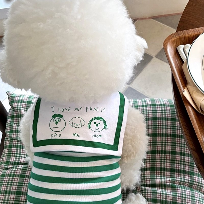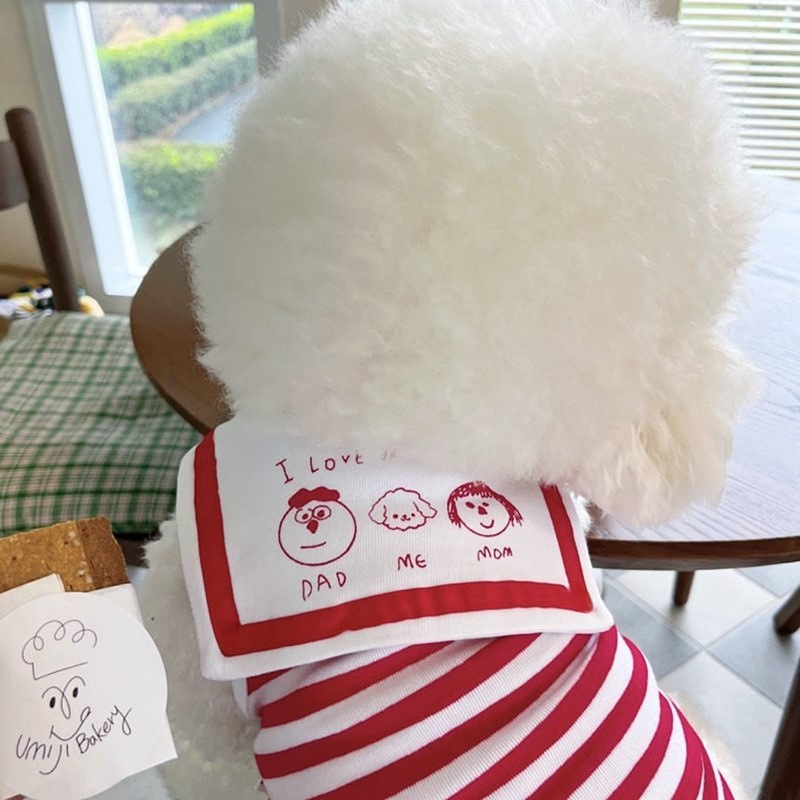 봄 여름 애완동물 네이비 칼라 조끼 스트라이프 만화 프린트 중소형견 및 고양이 옷 강아지 옷