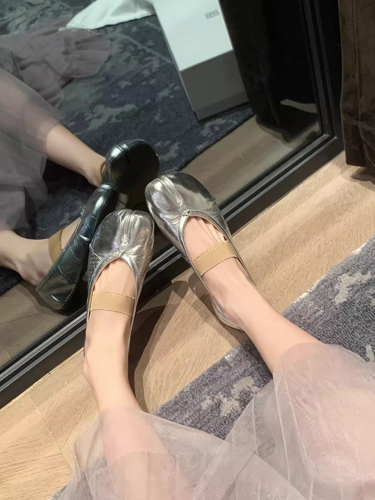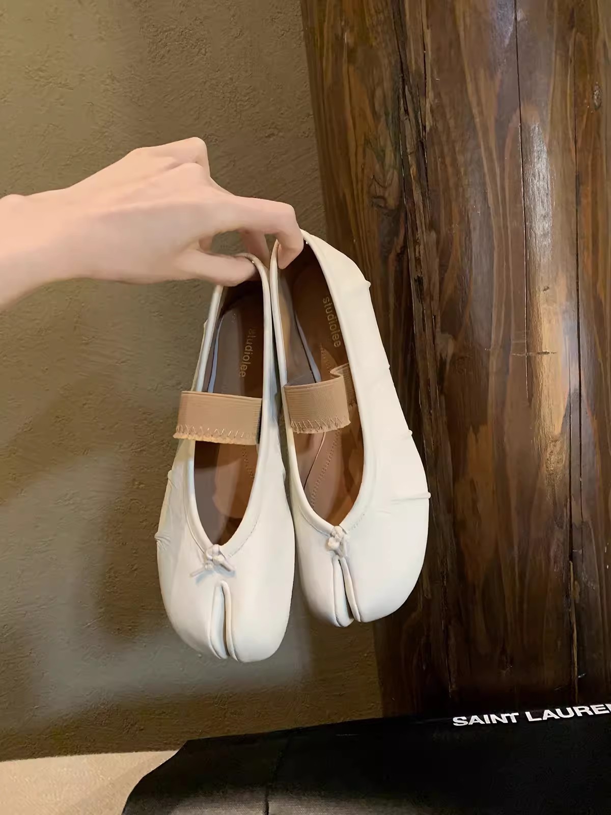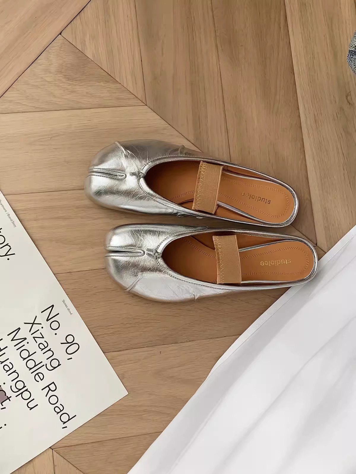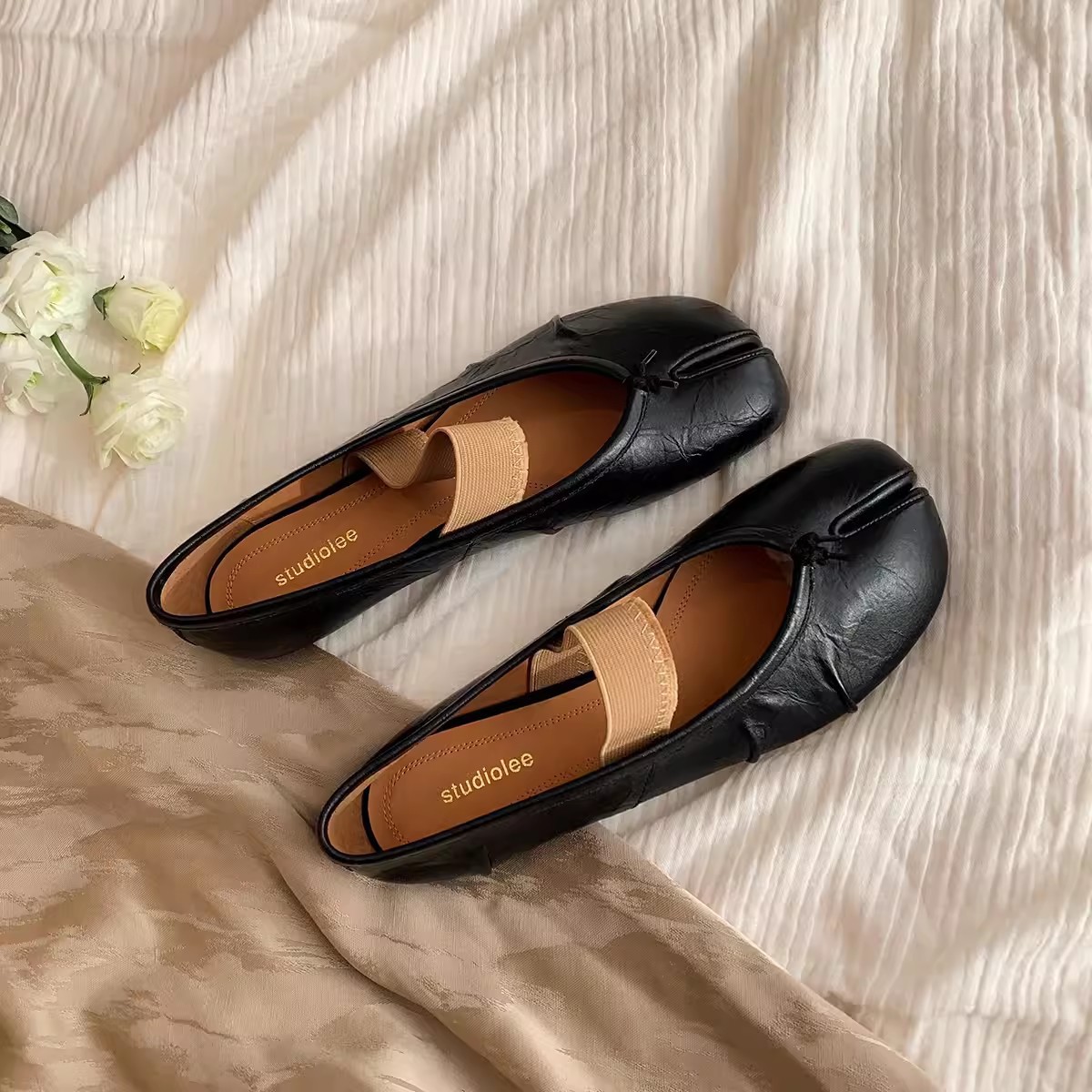 스팟 양가죽 버전~포도엄마의 얕은 입구와 부드러운 밑창의 천연가죽 플랫바닥과 스커트가 어울리는 여성용 돼지발톱 스플릿토 슈즈스토어 가기