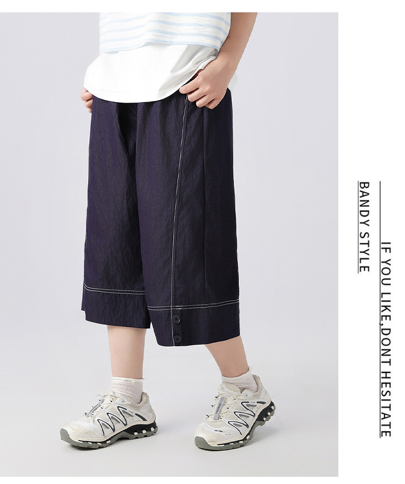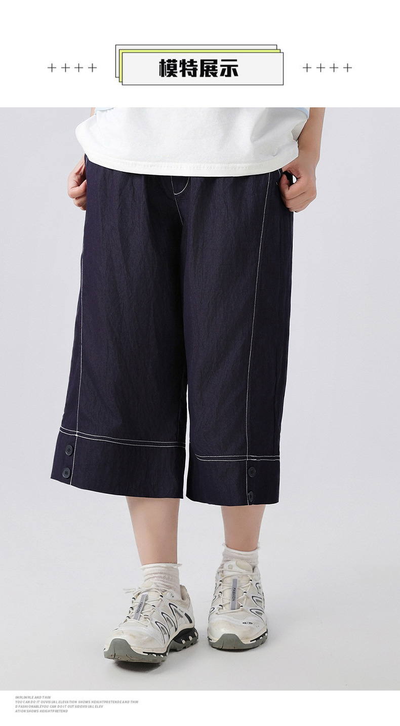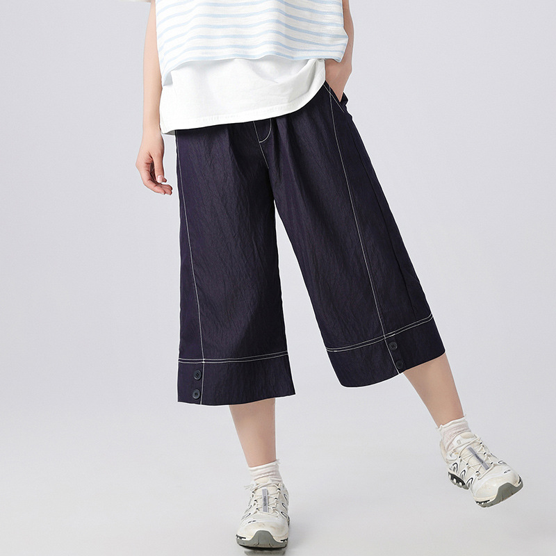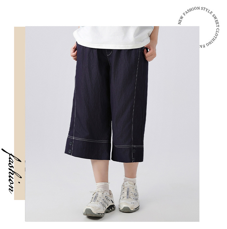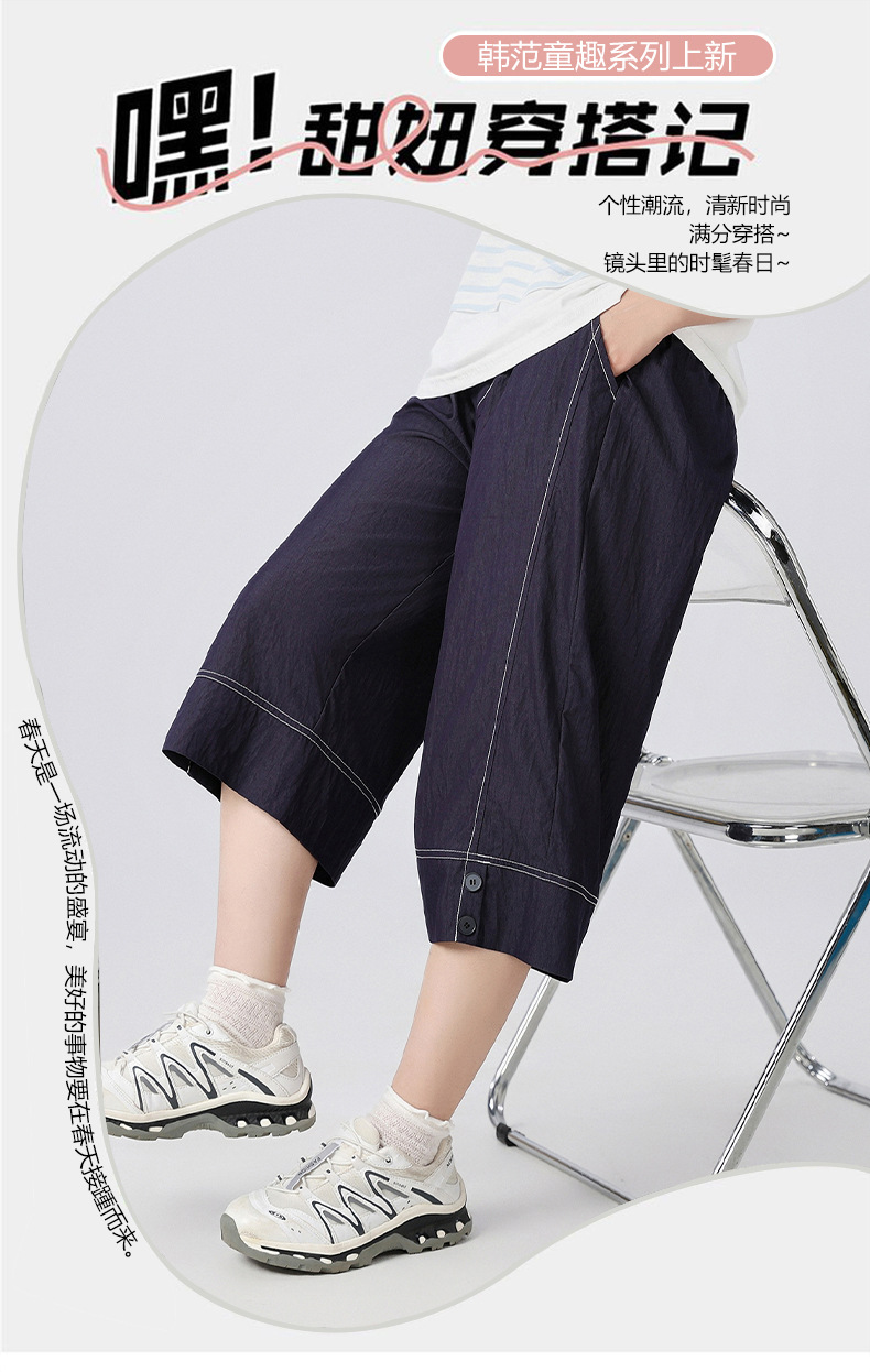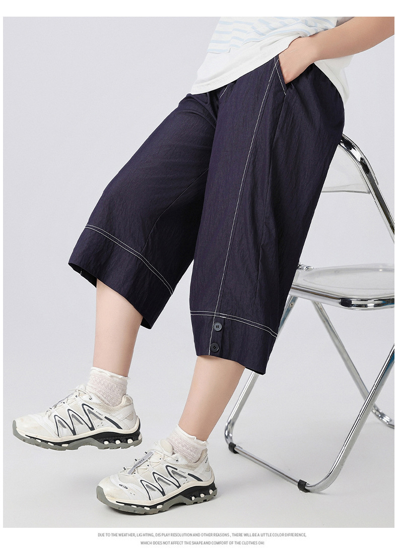 중학생 여학생 여름 얇은 텐셀 데님 카프리 바지 큰 어린이 플러스 사이즈 느슨한 넓은 다리 바지 캐주얼 청소년스토어 가기