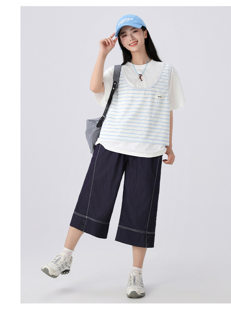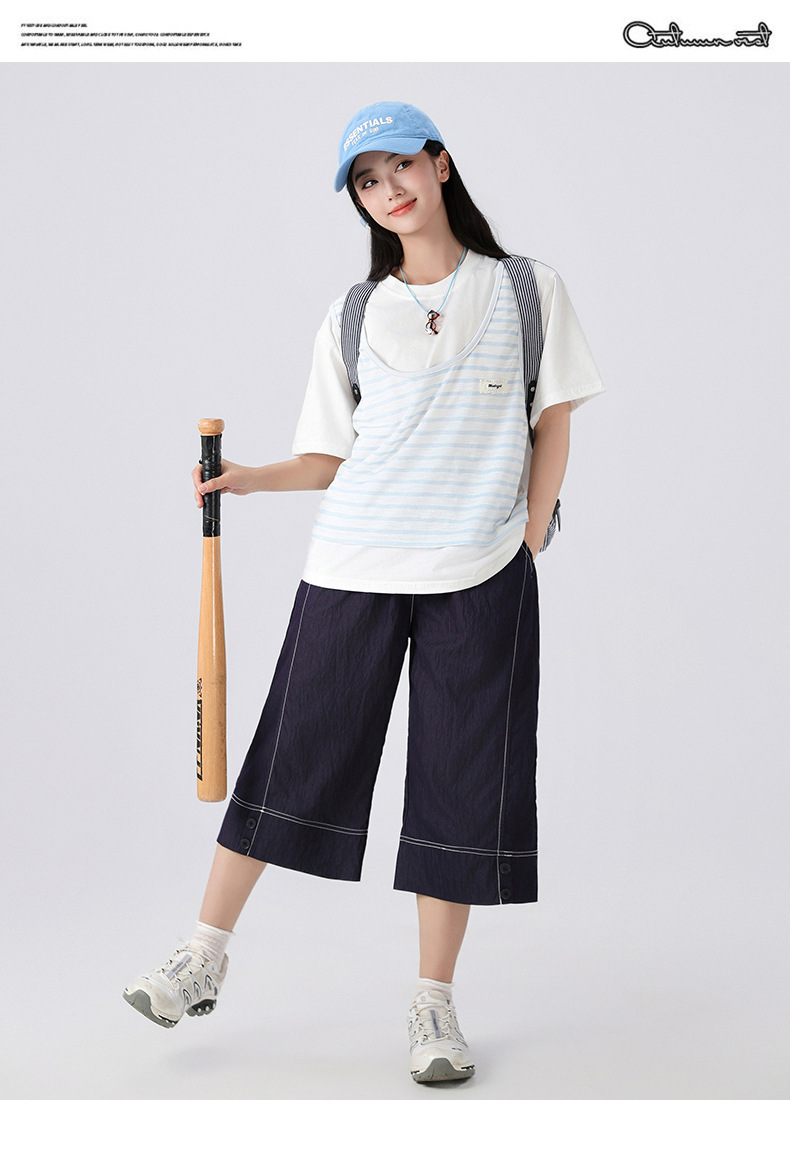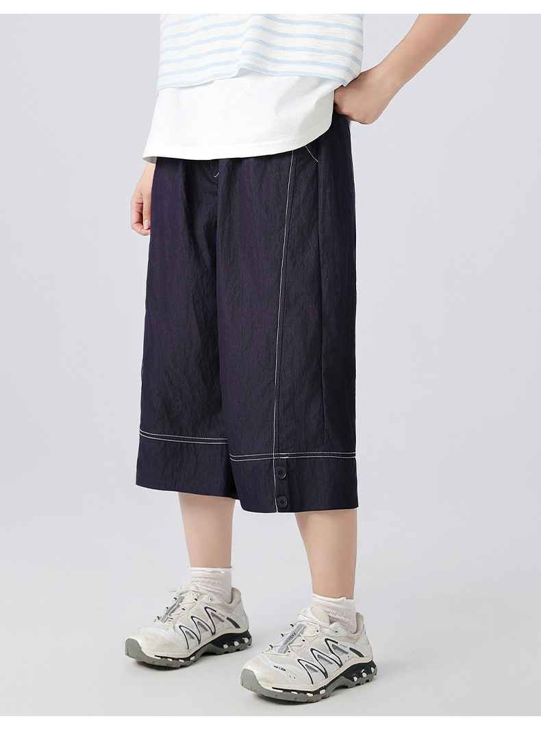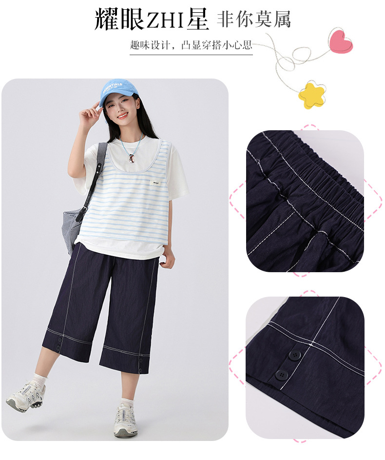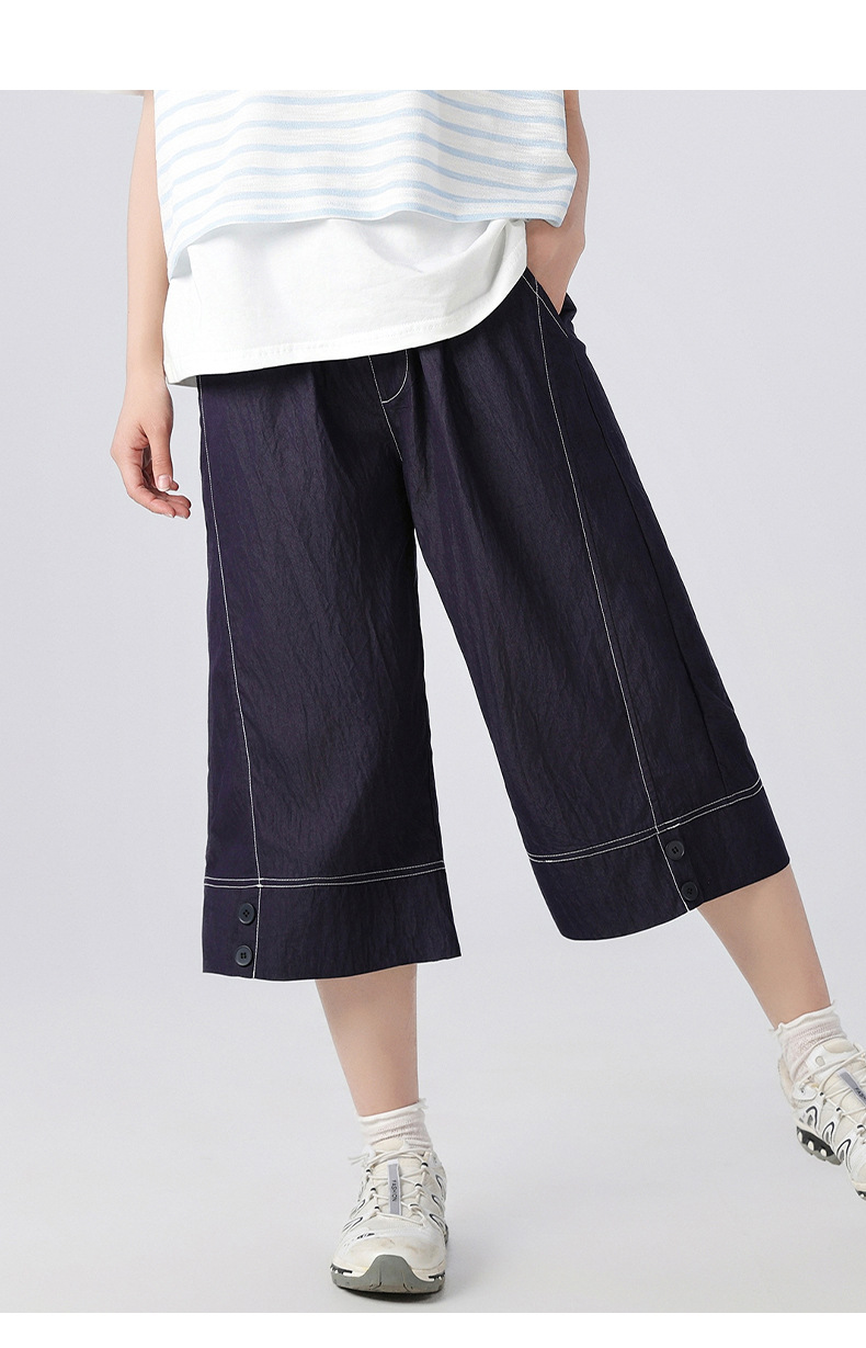 중학생 여학생 여름 얇은 텐셀 데님 카프리 바지 큰 어린이 플러스 사이즈 느슨한 넓은 다리 바지 캐주얼 청소년스토어 가기