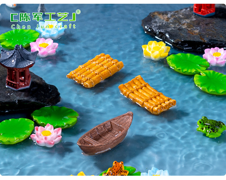마이크로 풍경 크리 에이 티브 부동 나무 보트 대나무 뗏목 수조 수족관 DIY 장식 액세서리 미니 미니어처 장식품
