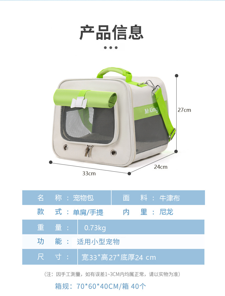 외출시 편리한 고양이 가방, 휴대 및 휴대 가능, 애완동물 외출용 백팩, 발수성 옥스포드 천, 편안하고 넓은 공간