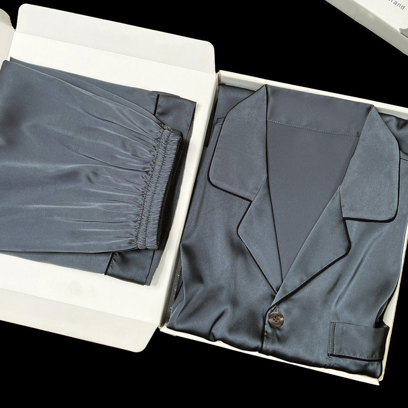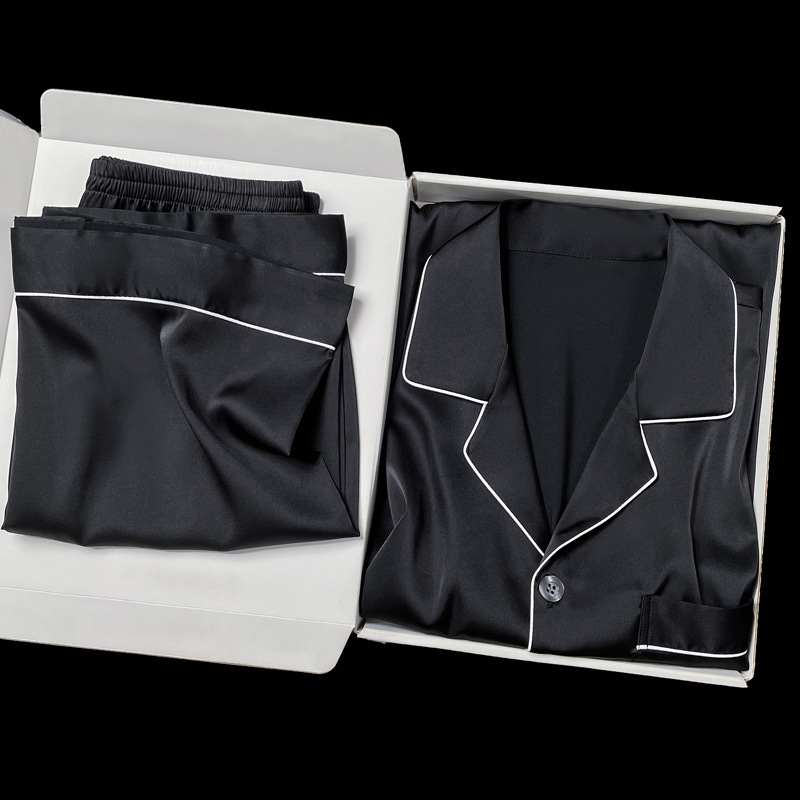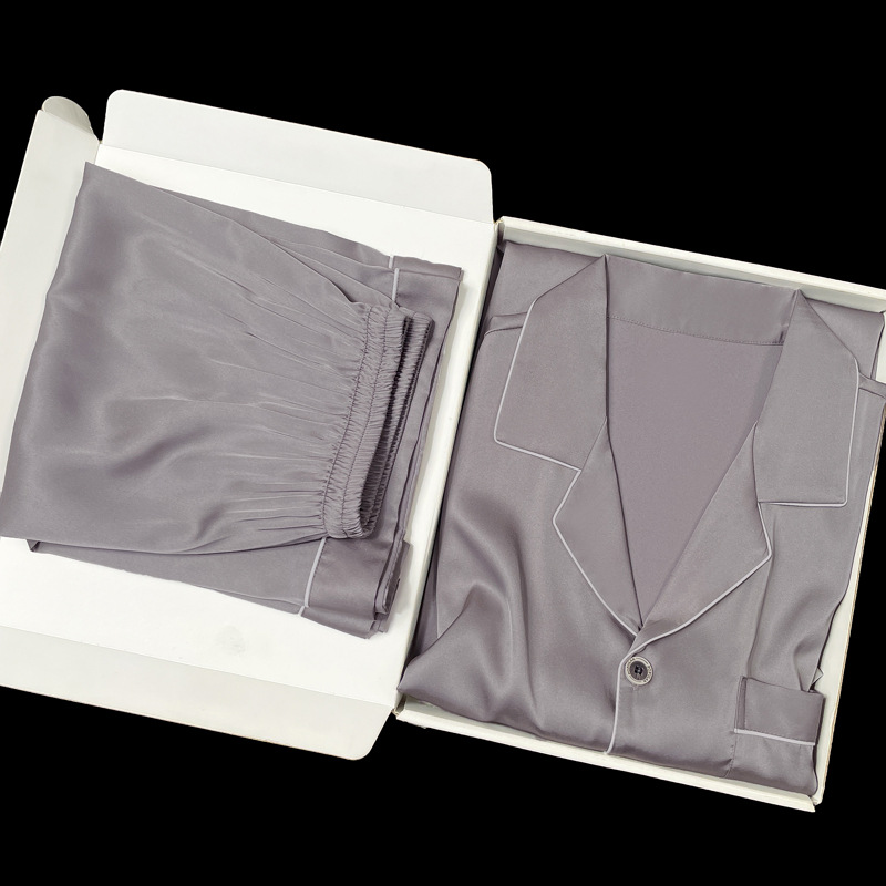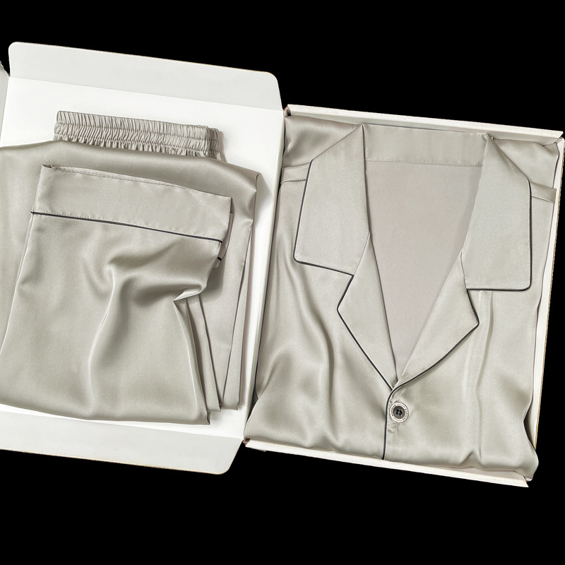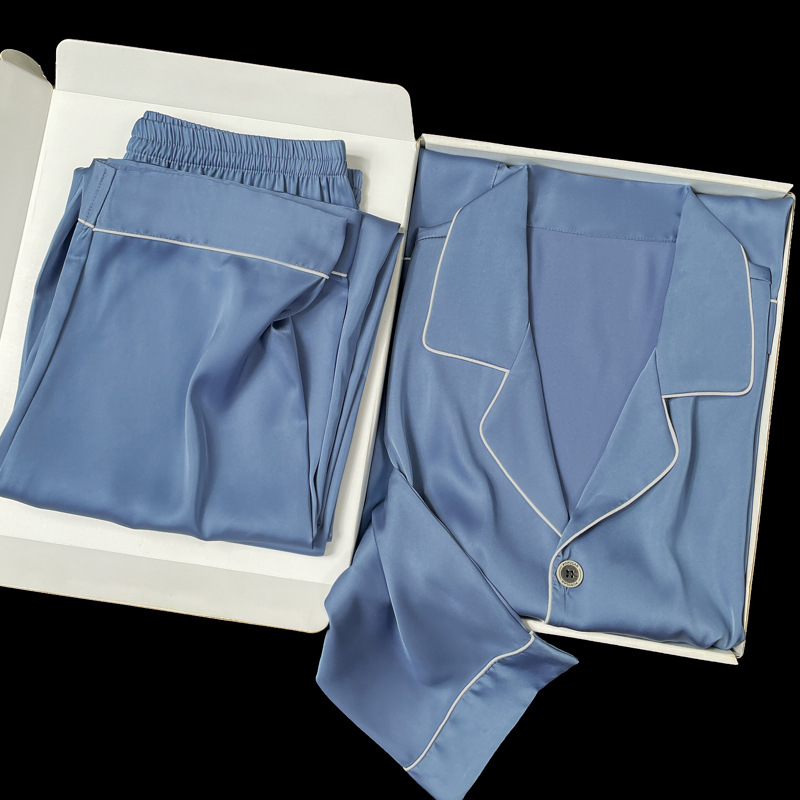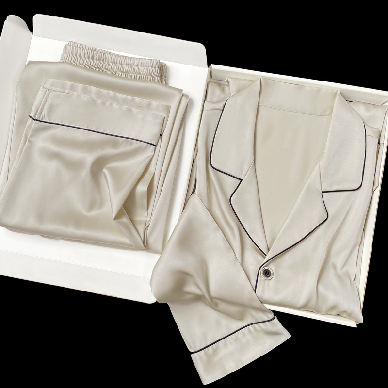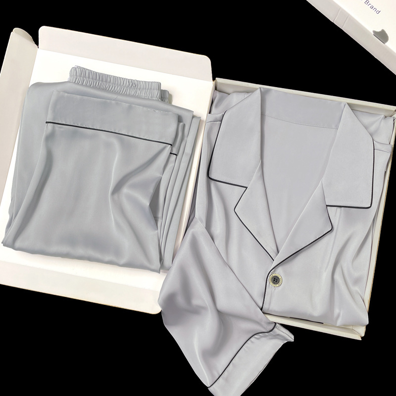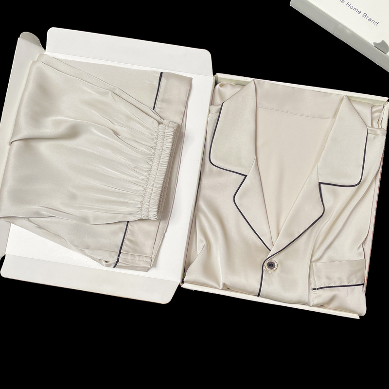 아이스 실크 잠옷 남성용 반팔 반바지 여름 얇은 얼음과 얼음 실크 살구 컬러 프론트 버튼 새틴 시뮬레이션 실크 대형 홈스토어 가기